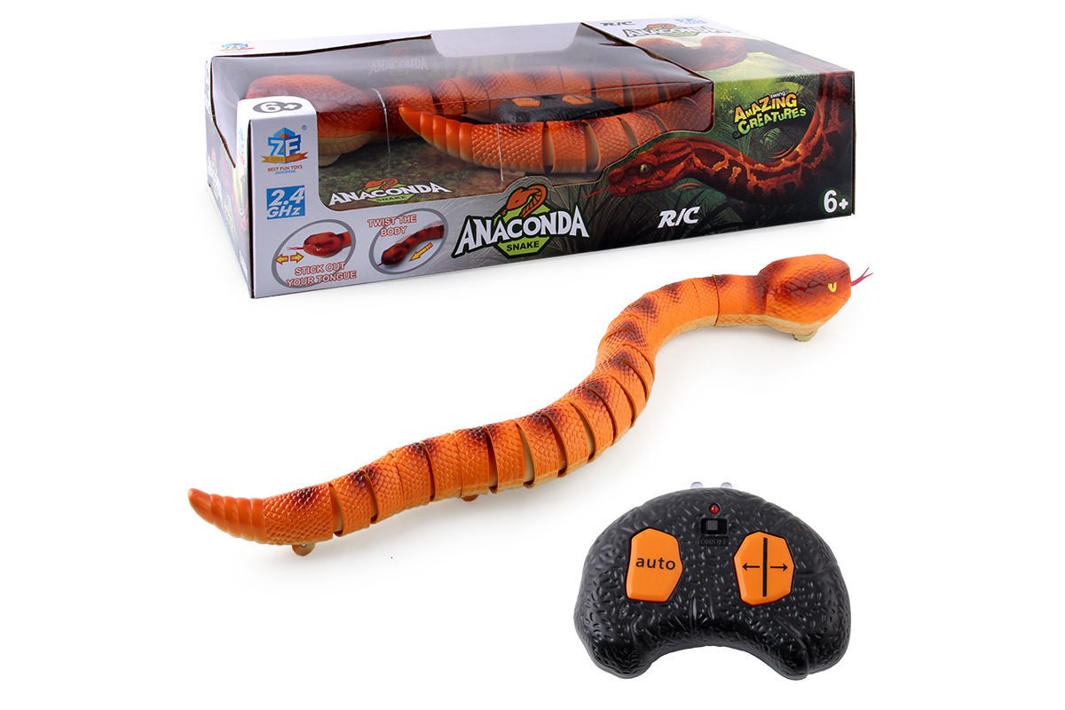 Радиоуправляемый робот ZF змея Анаконда - 7707 - это радиоуправляемая змея, которая имеет длину 77 см и в точности повторяет движения настоящей змеи. Игрушка проста в управлении, с помощью пульта может двигаться вперед и по дуге влево и вправо. У змеи извивается хвост и двигается язык вперед-назад, что добавляет игрушке схожесть с этим пресмыкающимся.