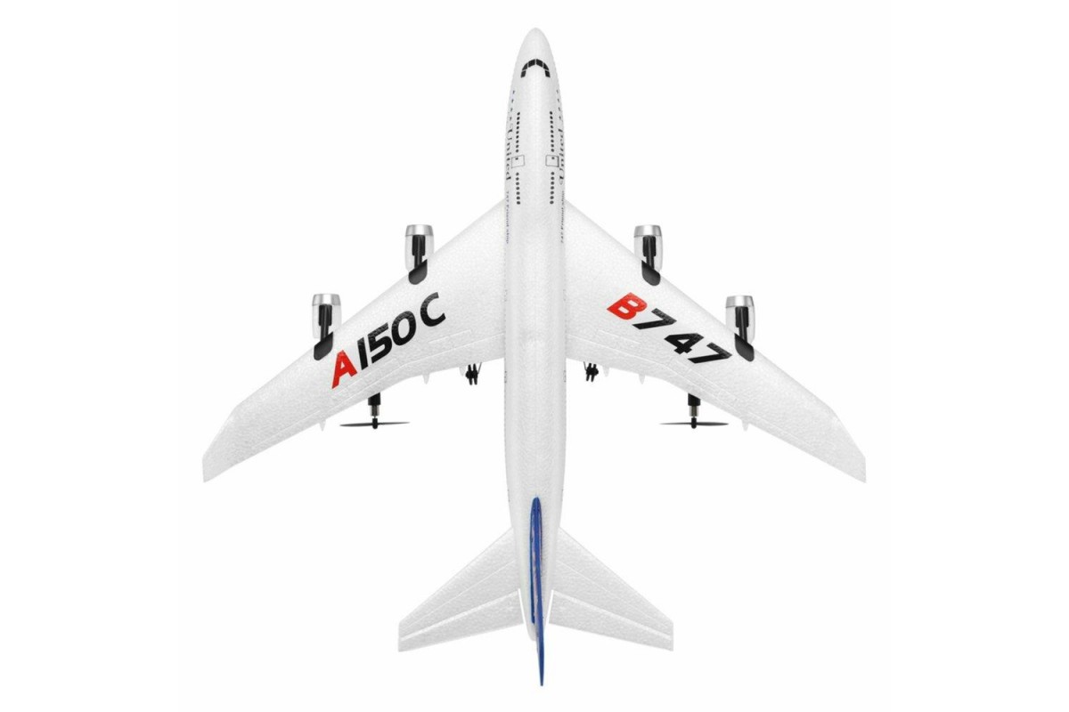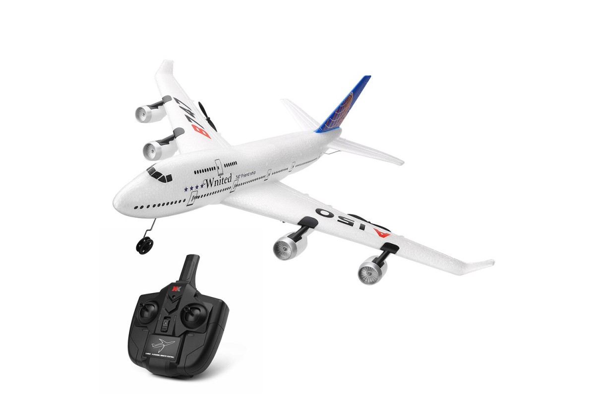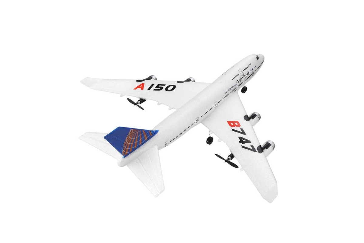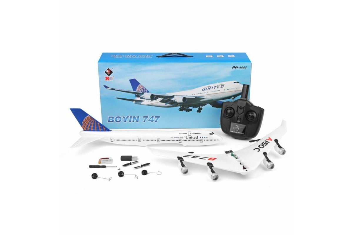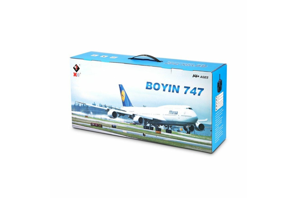 Радиоуправляемый самолет B747 XK A150 2.4G RTF - A150-B747 - это самолет на радиоуправлении от компании XK Innovation A150, который является высоко детализированной копией легендарного Боинга B747. Каждый человек, который хоть раз летал, без сомнений хотел бы попробовать управлять настоящим Боингом и данная модель сможет удовлетворить это желание с лихвой. Простой в своей сборке, очень прочный и легкий. Дистанция управления более 200 метров, при этом полетом наслаждаться вы будете около 10 минут. Управляется с пульта 3-х канального дистанционного управления 2,4 ГГц. Самолет имеет такие немаловажные функции как: flip360, что позволяет делать переворот на 360 градусов в воздухе, а так же ускорение и замедление. Длина – 500 мм, размах крыльев 490 мм. Самолет оснащен литий-полимерным аккумулятором, емкостью 300 мАч, а также двумя бесколекторными двигателями.