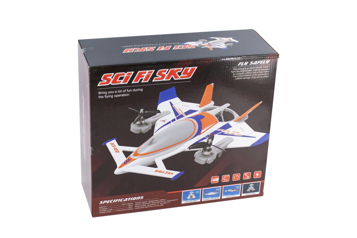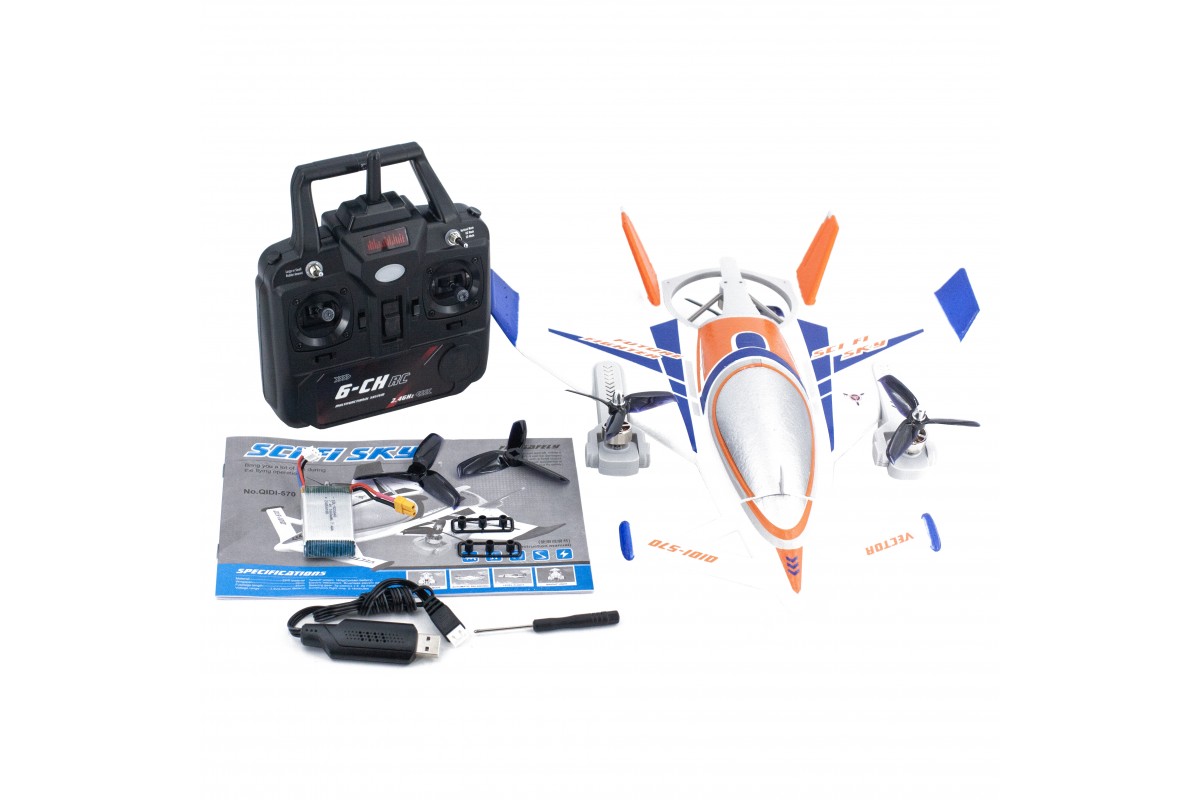 Радиоуправляемый самолет дрон SCI Fi Sky VTOL 3D6G 8ch - QIDI-570-BLUE - это иновационный RC-самолет с 3 режимами полета: вертикальный полет/горизонтальный полет самолета 6G/ 3D полет для профессиональных пользователей.