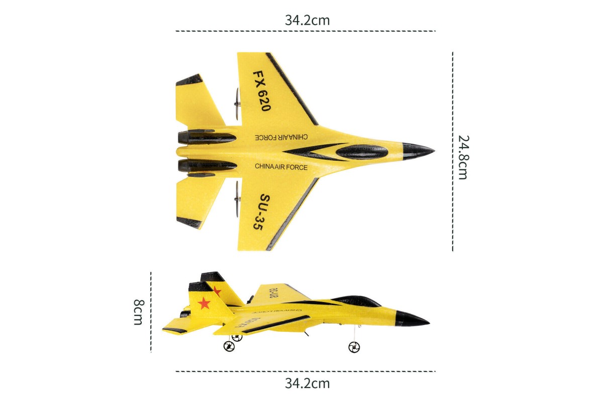 Радиоуправляемый самолет Fei Xiong SU-35 2.4G - FX620-YELLOW - это модель-копия популярного SU-35. Изготовленный из высокопрочного материала EPP, самолет прослужит вам долгое время. Благодаря необычайной легкости модель обладает прекрасными летными способностями. Это один из лучших вариантов для тех, кто начинает осваивать воздушное пространство. Светодиодная подсветка позволит покорять небо в темное время суток. Чтобы не повредить детали самолета, запускайте игрушку на территориях с большим свободным пространством. На улице должна быть спокойная, безветренная погода, тогда истребитель покажет все, на что способен.