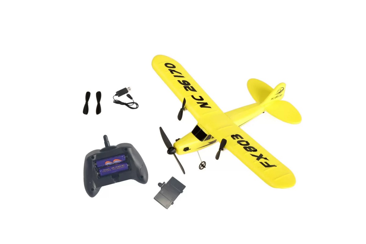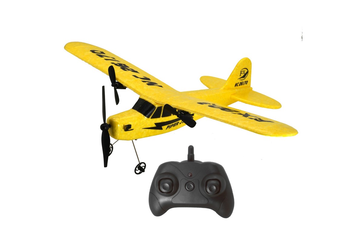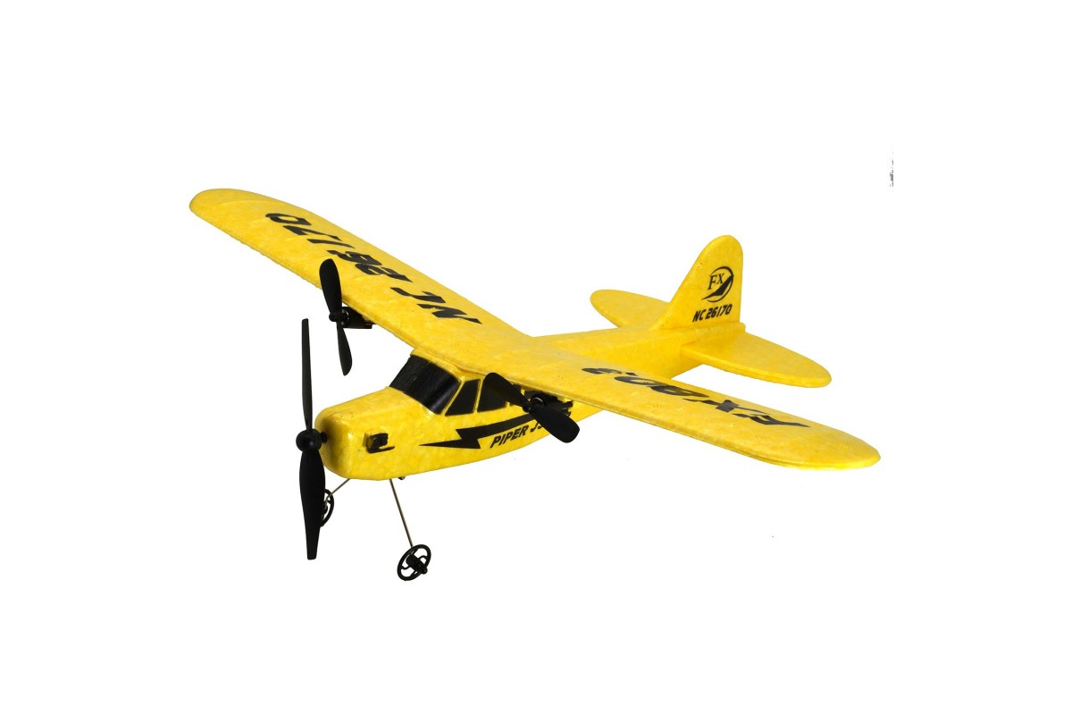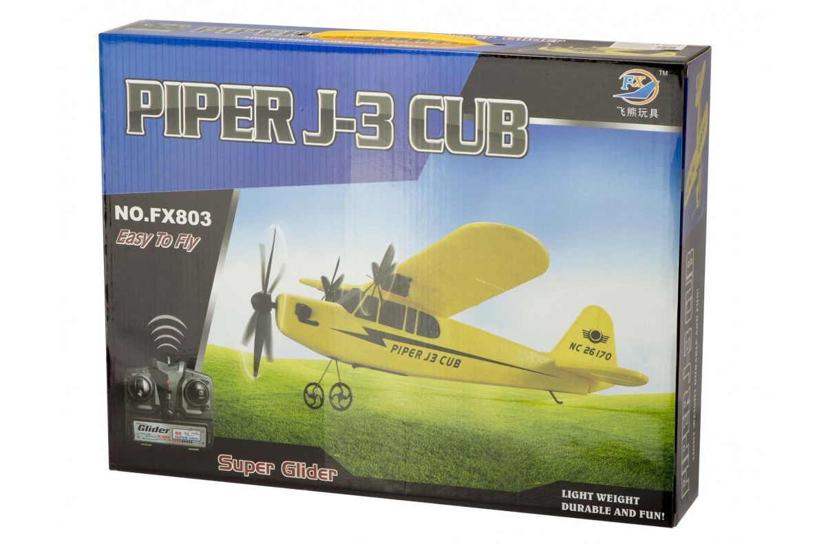 Радиоуправляемый самолет Piper Cub J3 для начинающих 2.4G - FX803-YELLOW - это радиоуправляемый двухканальный высокоплан оснащен двумя мощными электродвигателями и выглядит, как настоящий самолет ''Piper J-3 Cub''. Два тянущих пропеллера, расположенных на крыле, обеспечивают тягу, а центральный воздушный винт вращается от набегающего потока.
