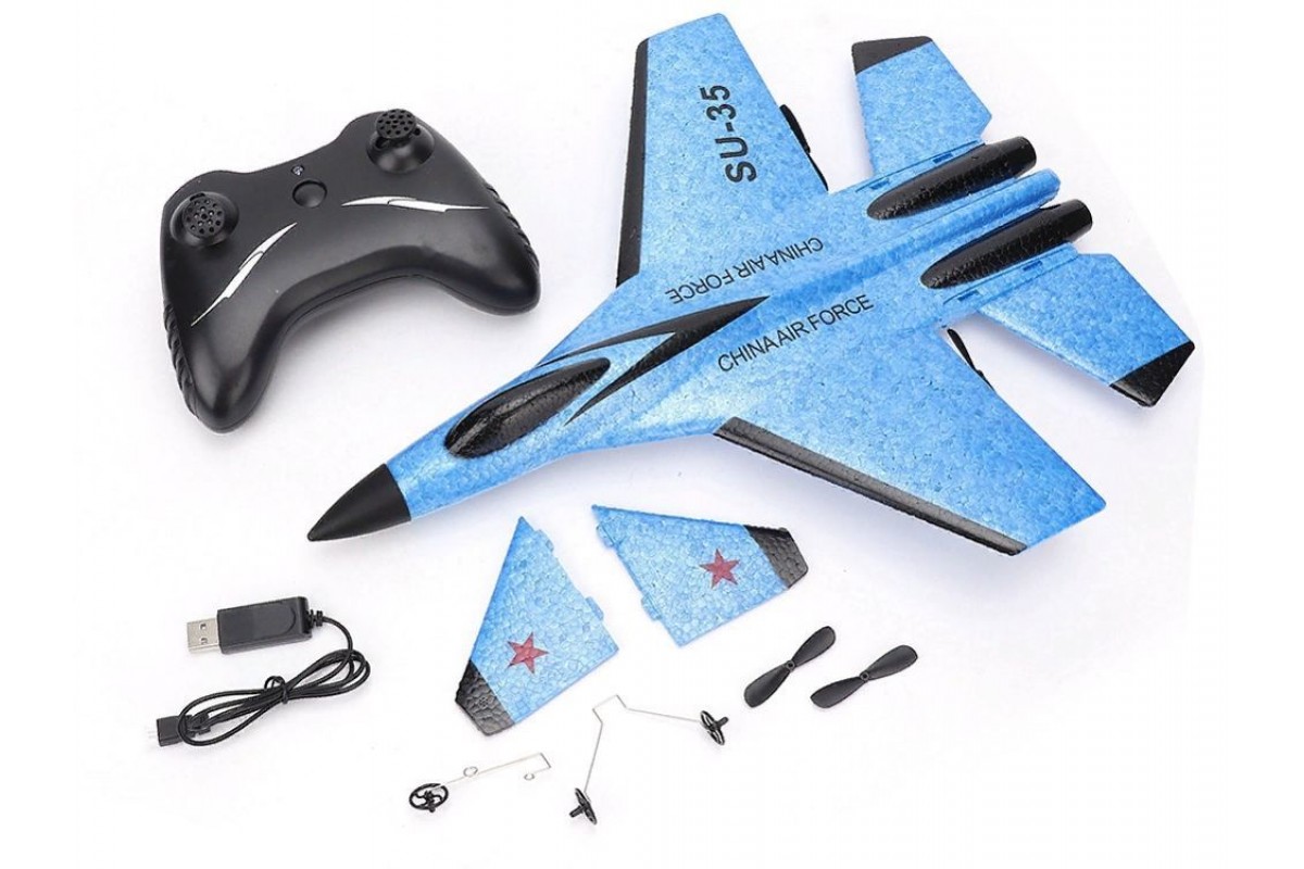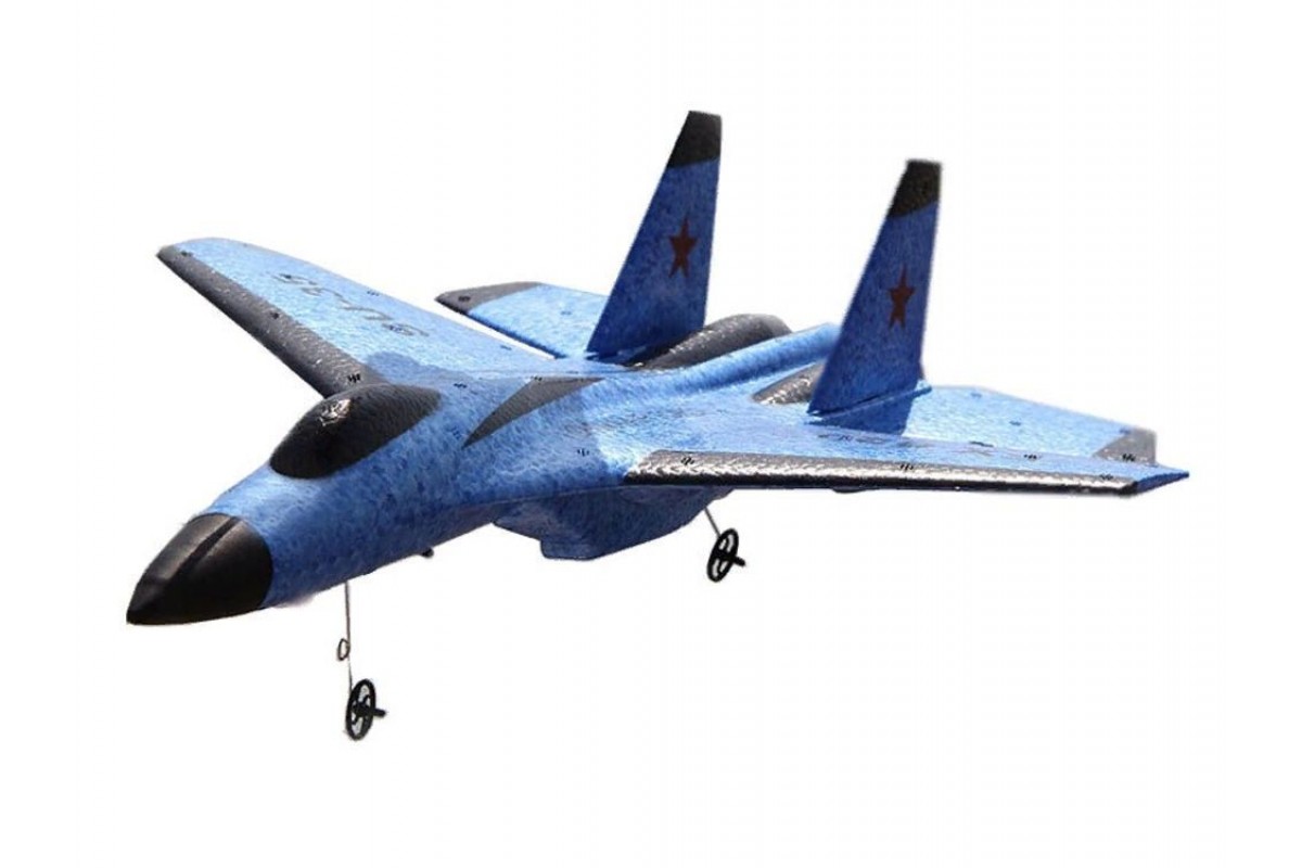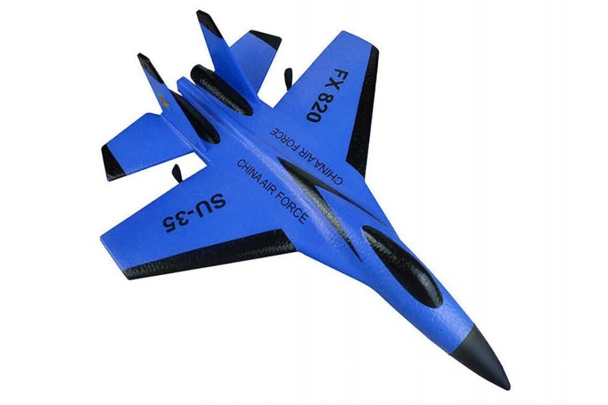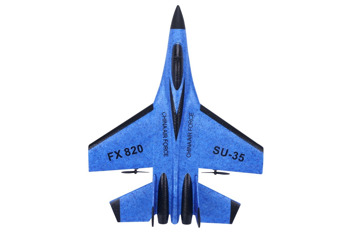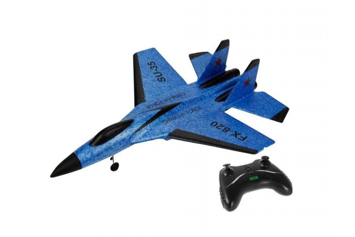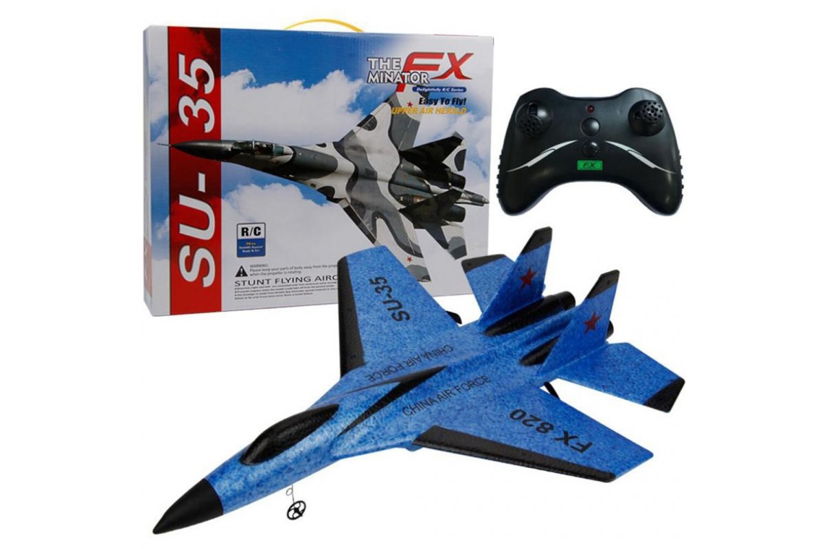 Радиоуправляемый самолет SU-35 для начинающих 2.4G - FX820-BLUE - это двухканальный радиоуправляемый истребитель СУ-35, который очень прост в управлении. Встроенная система стабилизации с 3-осевым гироскопом во время полета удерживает самолет в одной плоскости, что гарантирует устойчивость в полете. Набор высоты и снижение осуществляется при помощи изменения оборотов двигателей, а виражи выполняются при помощи изменения тяги одного из моторов. Если пилот не справляется с управлением, достаточно просто отпустить рычаги управления, и полет самолета автоматически выровняется. Такая модель идеально подходит для начинающих пилотов и любителей миниатюрной авиации.