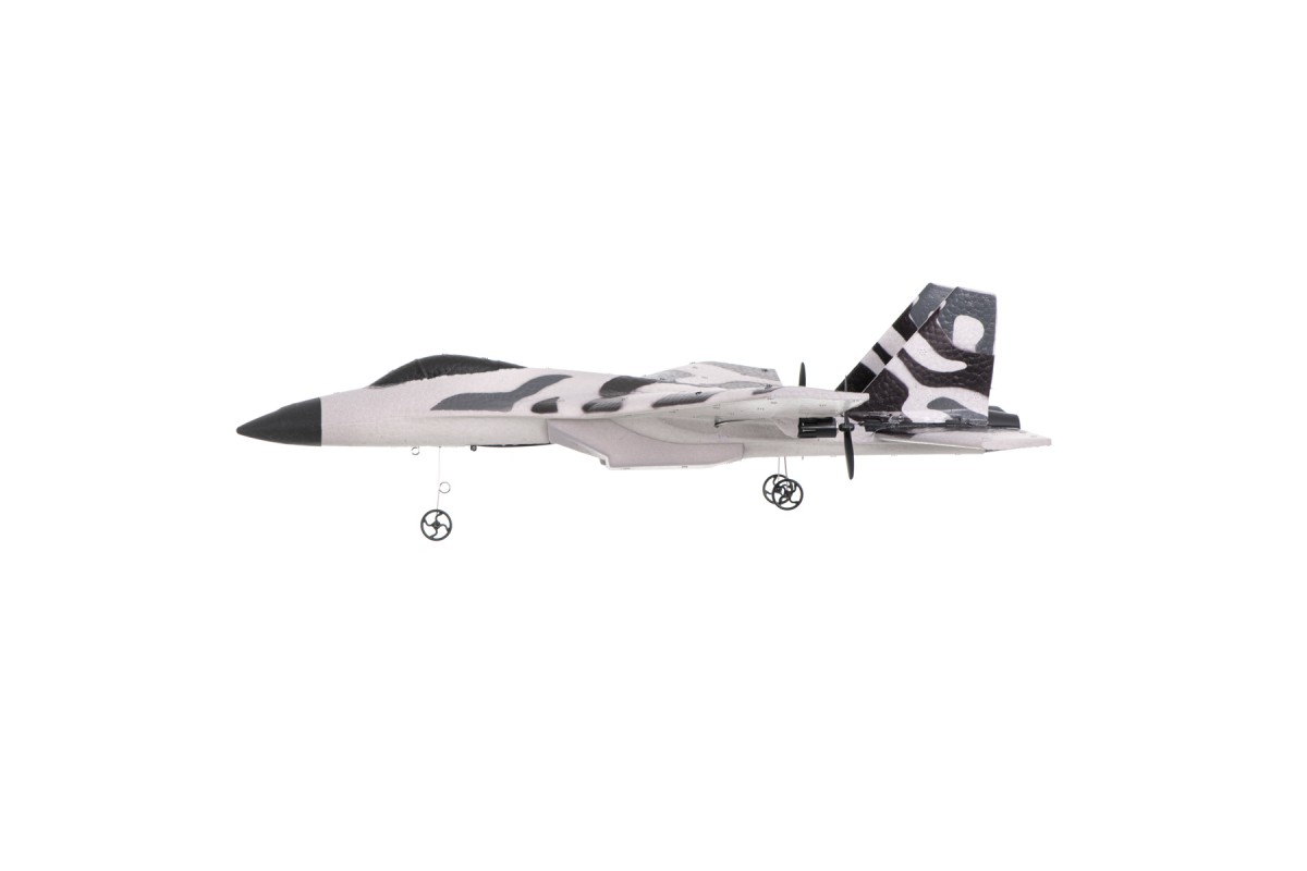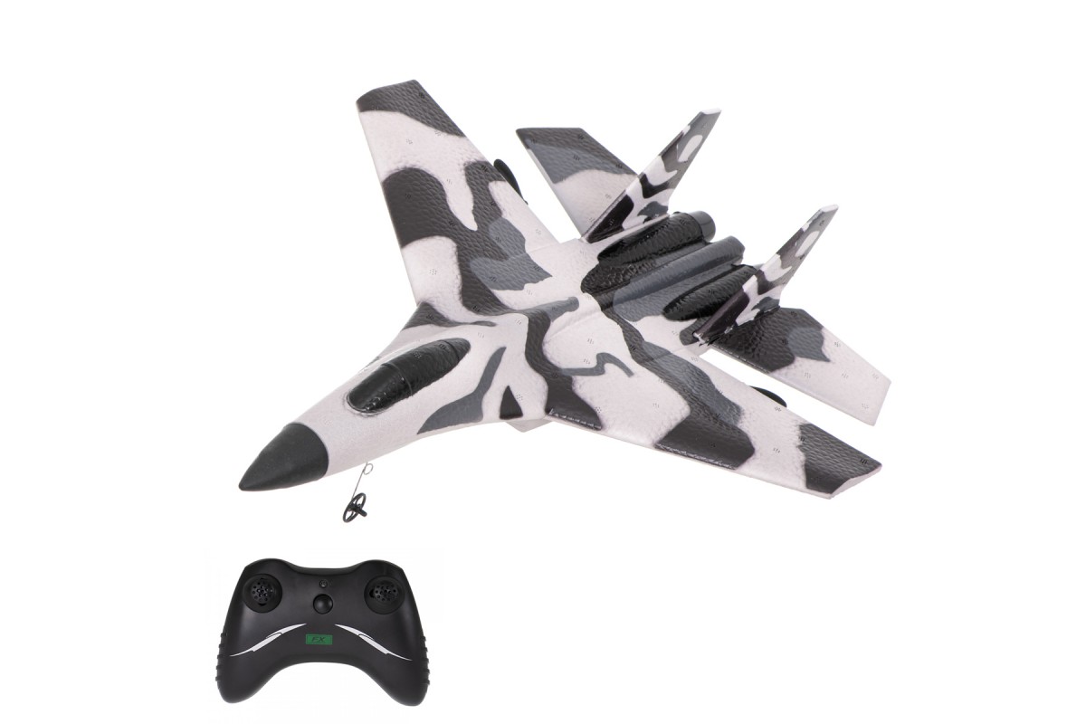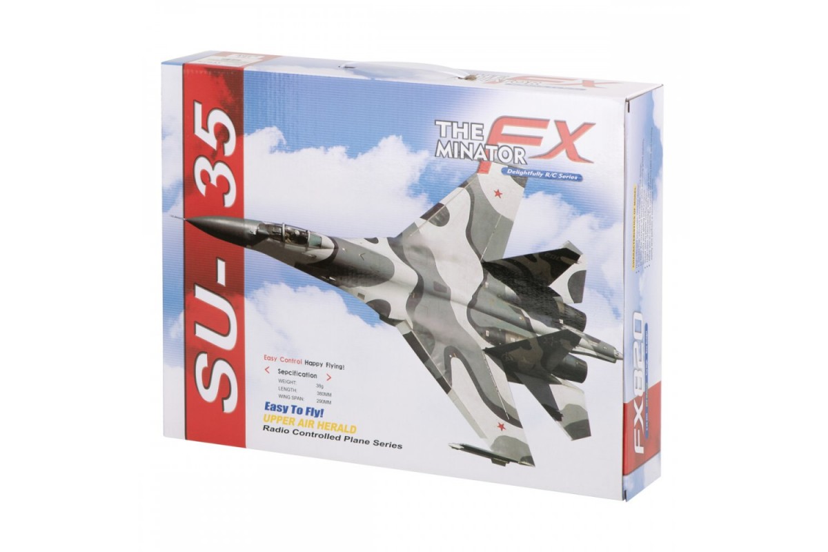Радиоуправляемый самолет SU-35 для начинающих 2.4G - FX820-CAMOUFLAGE - это двухканальный радиоуправляемый истребитель СУ-35, который очень прост в управлении. Встроенная система стабилизации с 3-осевым гироскопом во время полета удерживает самолет в одной плоскости, что гарантирует устойчивость в полете. Набор высоты и снижение осуществляется при помощи изменения оборотов двигателей, а виражи выполняются при помощи изменения тяги одного из моторов. Если пилот не справляется с управлением, достаточно просто отпустить рычаги управления, и полет самолета автоматически выровняется. Такая модель идеально подходит для начинающих пилотов и любителей миниатюрной авиации.