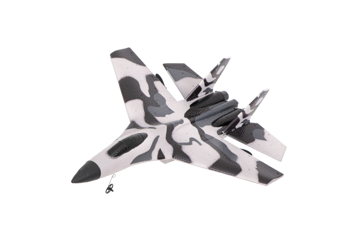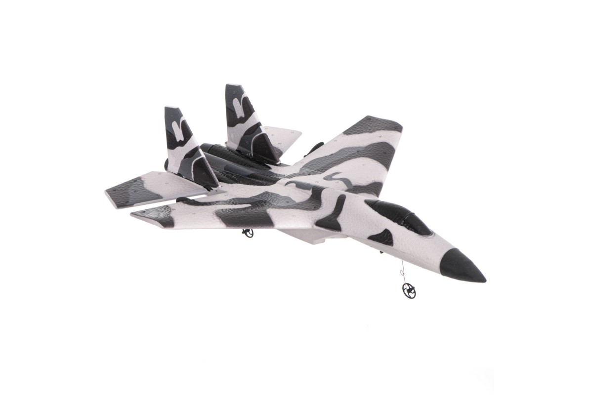 Во время полета модель выглядит как настоящий реактивный истребитель СУ-35. Фюзеляж, крыло и оперение изготовлены из эластичного удароустойчивого пеноматериала, а носовой обтекатель из мягкой резины, поэтому данный радиоуправляемый самолет сложно сломать и легко починить. Благодаря двум мощным двигателям с толкающими винтами радиоуправляемый СУ-35 способен взлетать как с земли, так и с руки, а обтекаемые формы фюзеляжа позволяют модели красиво планировать.