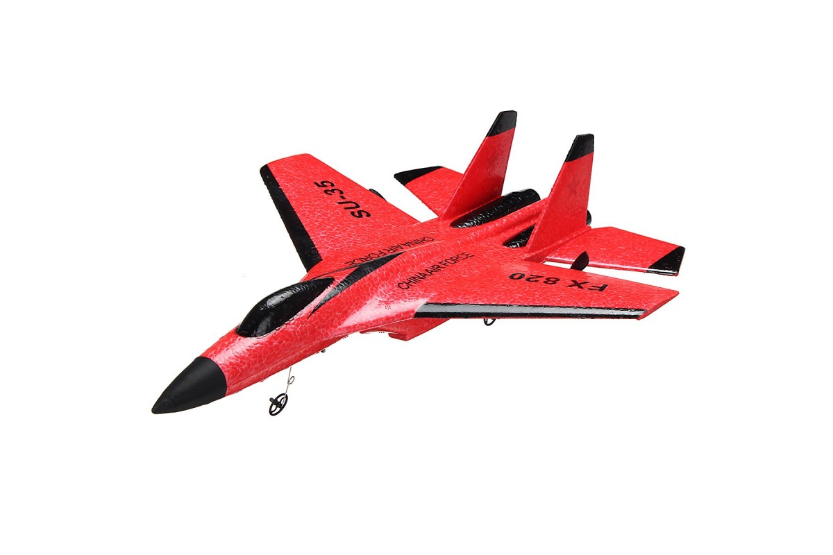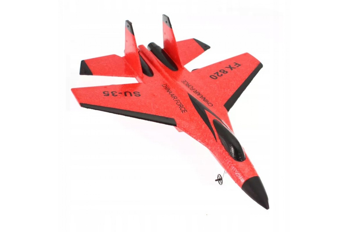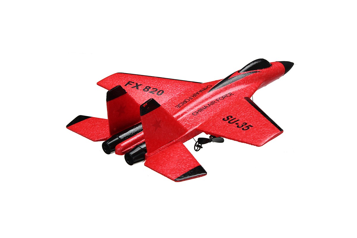 Радиоуправляемый самолет SU-35 для начинающих 2.4G - FX820-RED - это двухканальный радиоуправляемый истребитель СУ-35, который очень прост в управлении. Встроенная система стабилизации с 3-осевым гироскопом во время полета удерживает самолет в одной плоскости, что гарантирует устойчивость в полете. Набор высоты и снижение осуществляется при помощи изменения оборотов двигателей, а виражи выполняются при помощи изменения тяги одного из моторов. Если пилот не справляется с управлением, достаточно просто отпустить рычаги управления, и полет самолета автоматически выровняется. Такая модель идеально подходит для начинающих пилотов и любителей миниатюрной авиации.