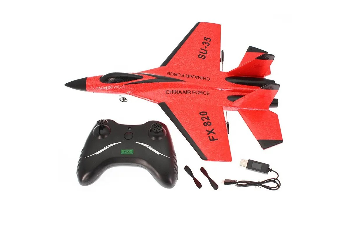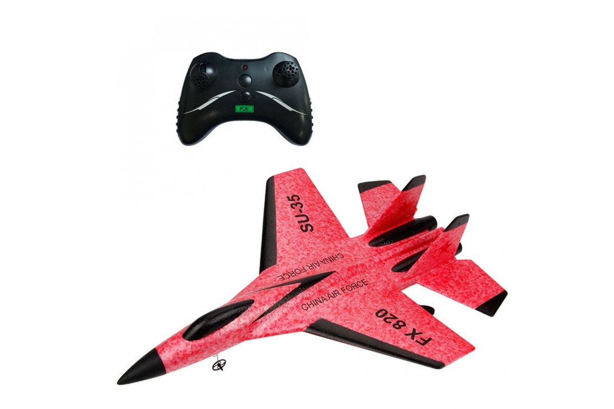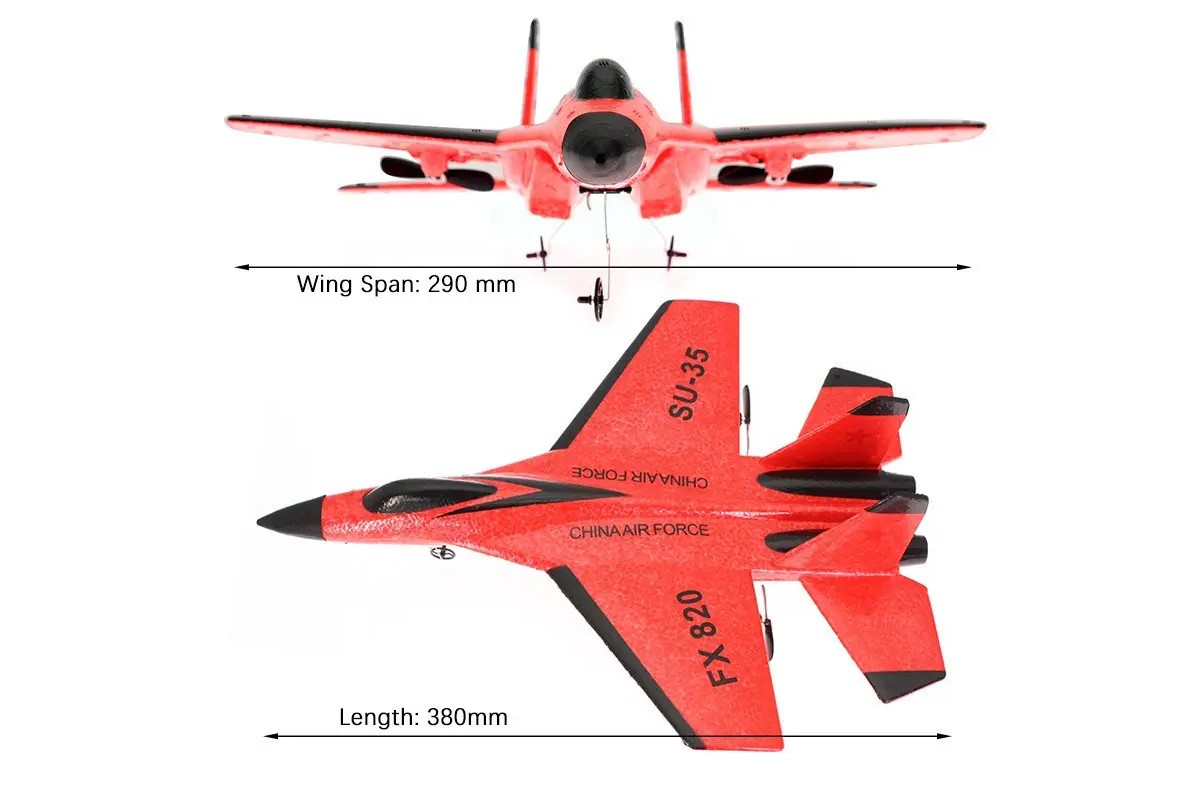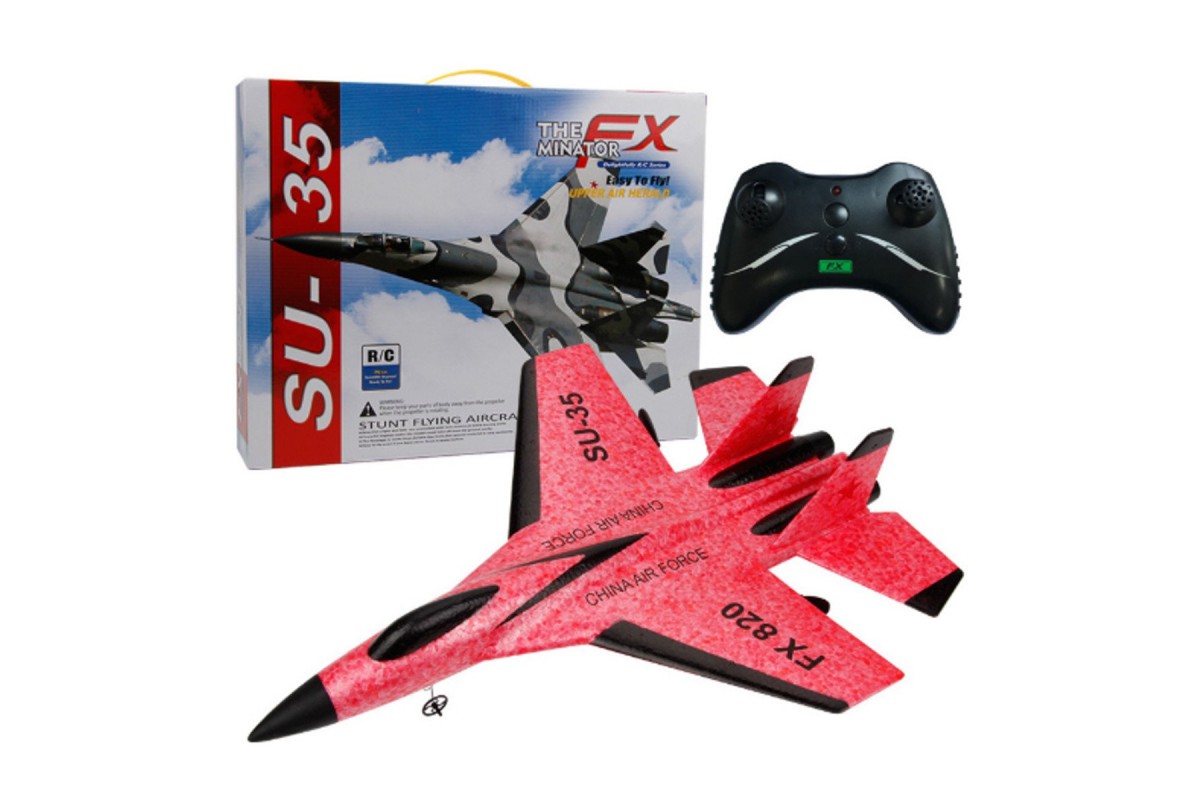 Радиоуправляемый самолет SU-35 для начинающих 2.4G - FX820-RED - это двухканальный радиоуправляемый истребитель СУ-35, который очень прост в управлении. Встроенная система стабилизации с 3-осевым гироскопом во время полета удерживает самолет в одной плоскости, что гарантирует устойчивость в полете. Набор высоты и снижение осуществляется при помощи изменения оборотов двигателей, а виражи выполняются при помощи изменения тяги одного из моторов. Если пилот не справляется с управлением, достаточно просто отпустить рычаги управления, и полет самолета автоматически выровняется. Такая модель идеально подходит для начинающих пилотов и любителей миниатюрной авиации.