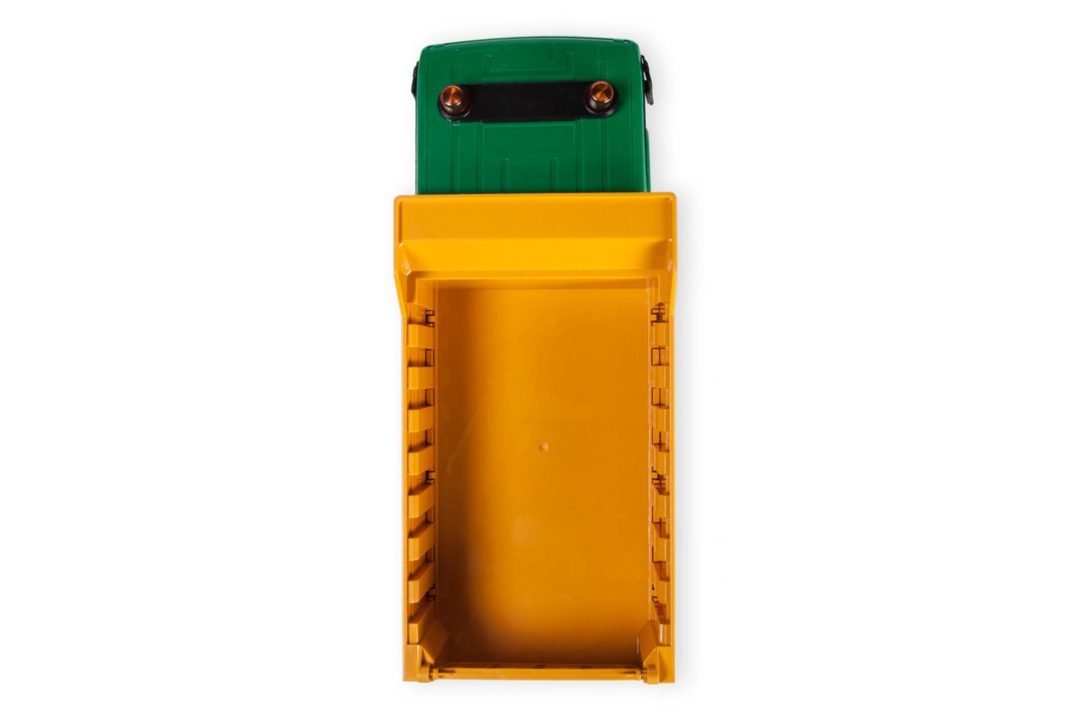 Полный контроль управления позволяет игрушке двигаться вперед/назад, влево/вправо, совершать повороты и остановки. Ребёнок сможет управлять не только колёсами и направлением движения, но и работой кузова. Кузов наклоняется под углом в 50 градусов, а задняя стенка открывается и закрывается. Во время игры можно услышать как работает двигатель.