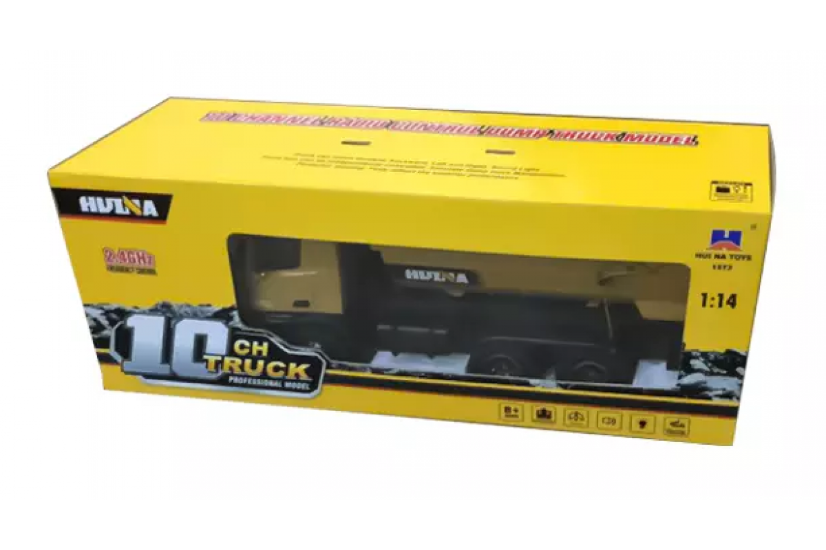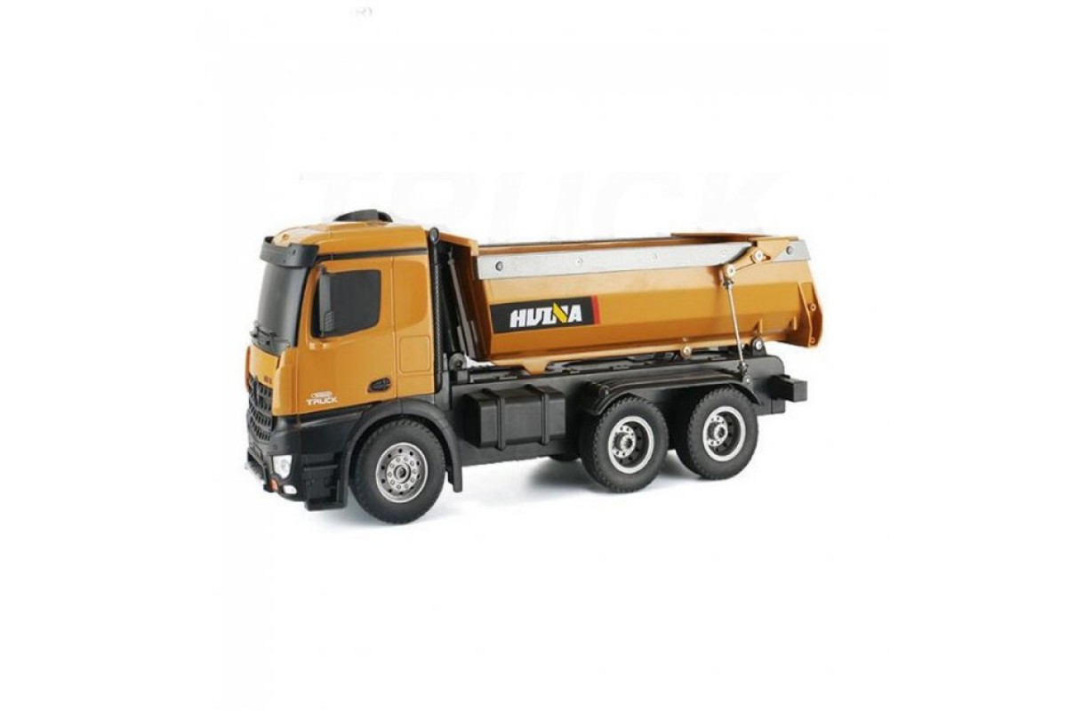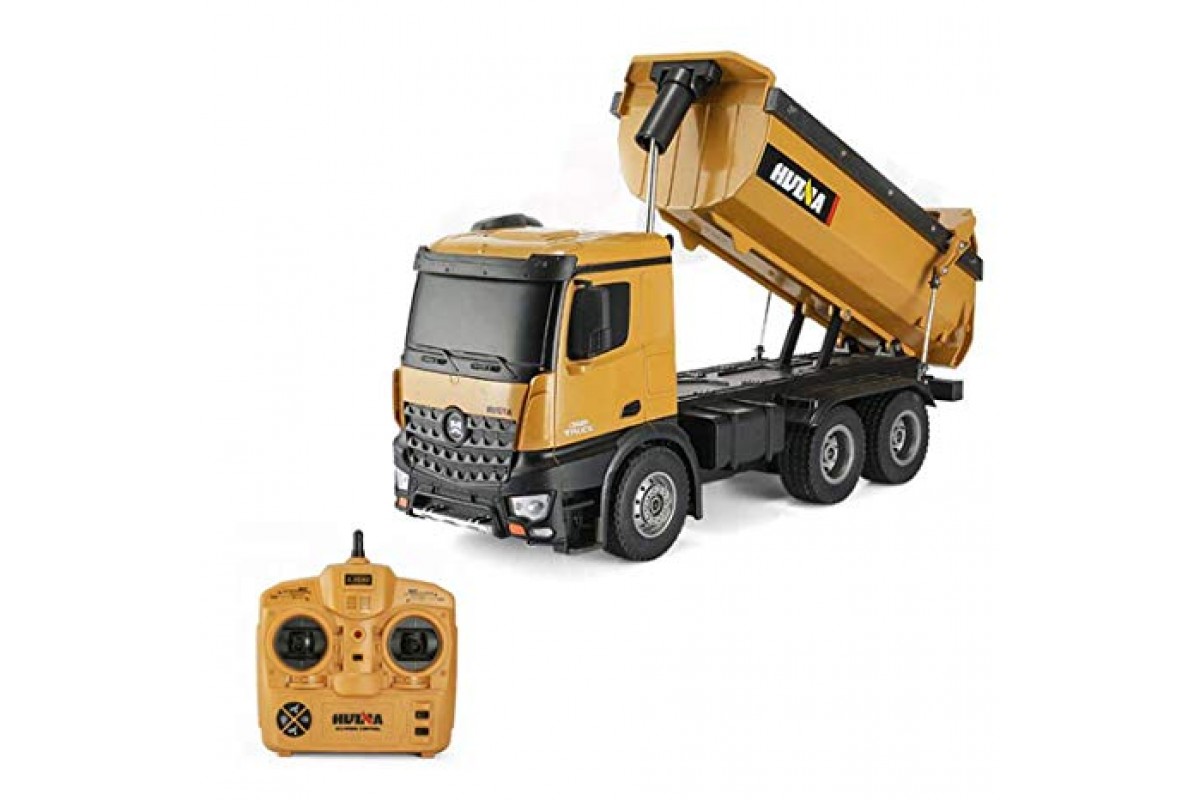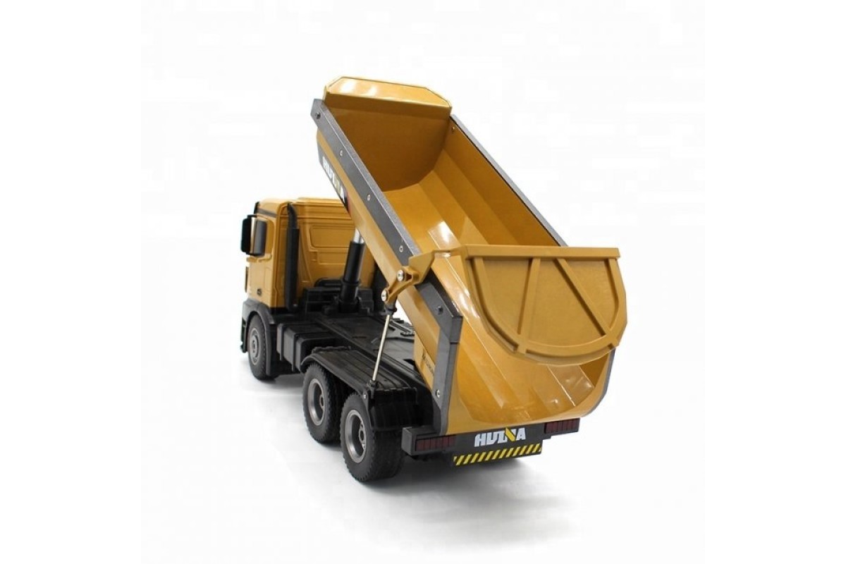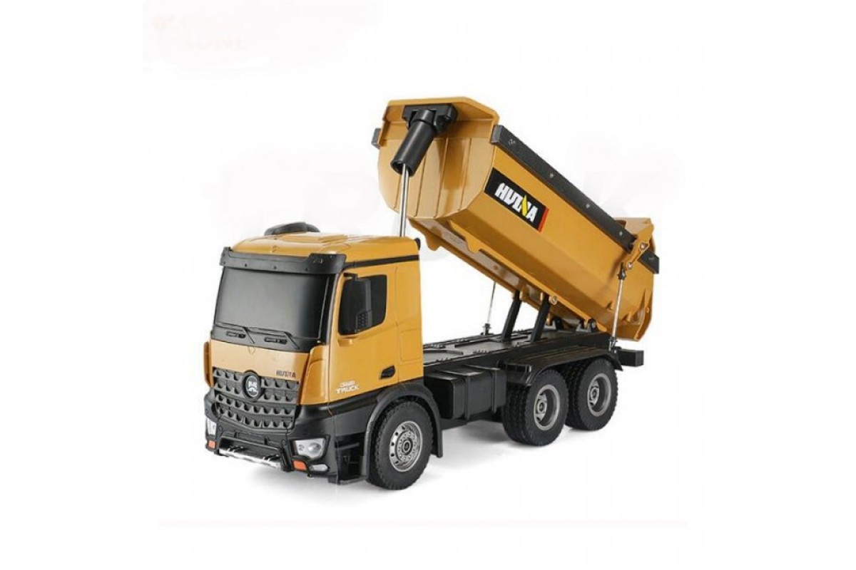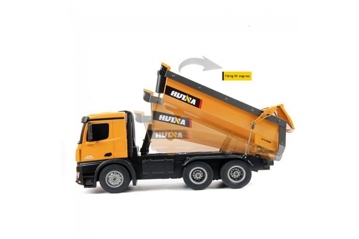 Управлять устройством можно при помощи пульта на частоте 2,4 ГГц, который работает от пальчиковых батареек. Так же с пульта управляется поднятие кузова грузовика. Вы сможете загрузить кузов вручную или при помощи экскаватора, перевести на нужное место и выгрузить автоматически.