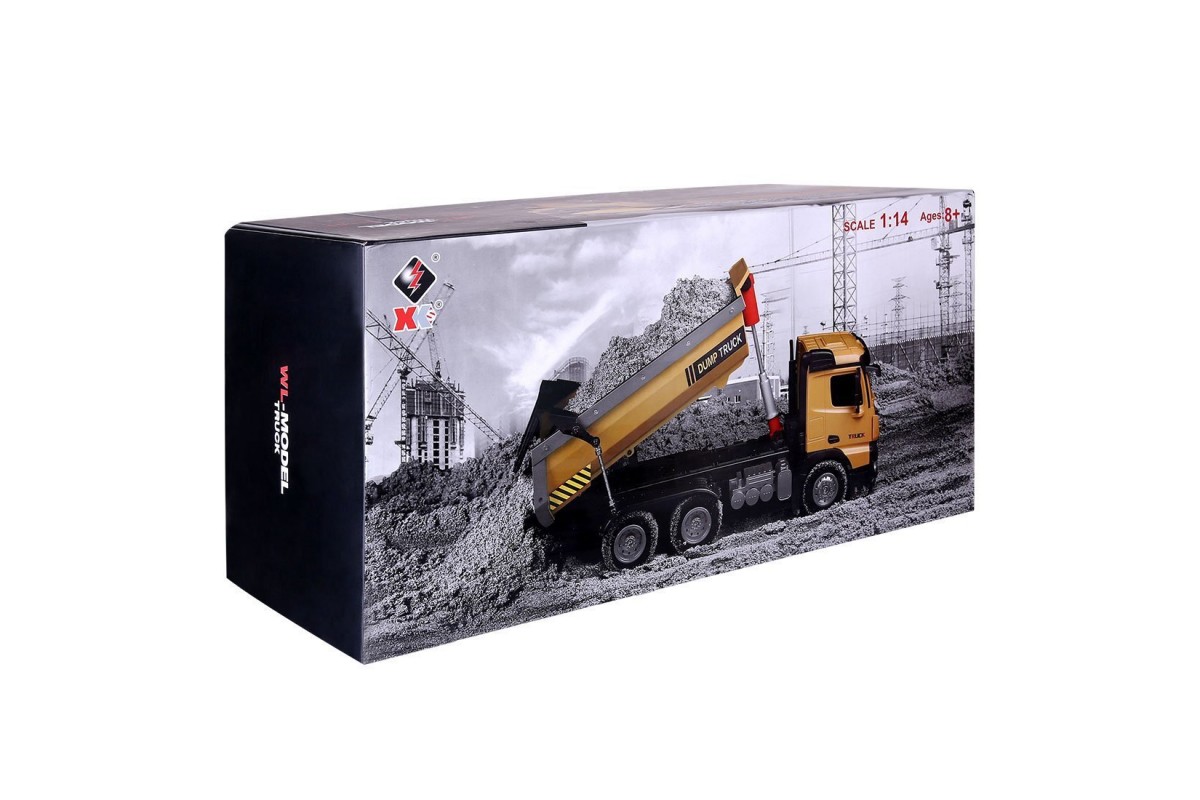 Радиоуправляемый строительный грузовик Wltoys 14600 - это модель является миниатюрной копией настоящего самосвала. Обладает вместительным кузовом, а также отсеками в передней части кабины, что добавляет устройству возможностей по транспортировке игрушек и мелких элементов.