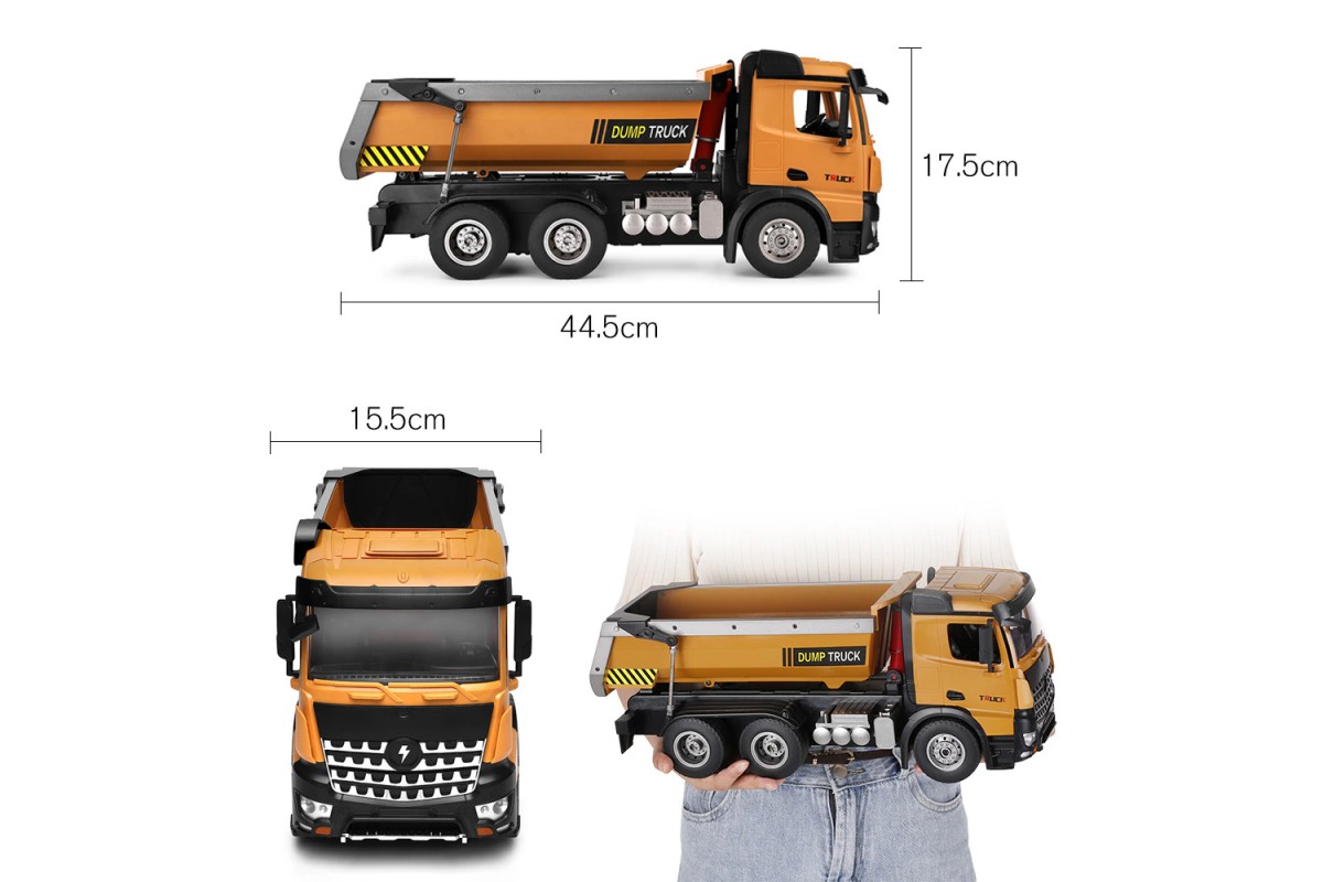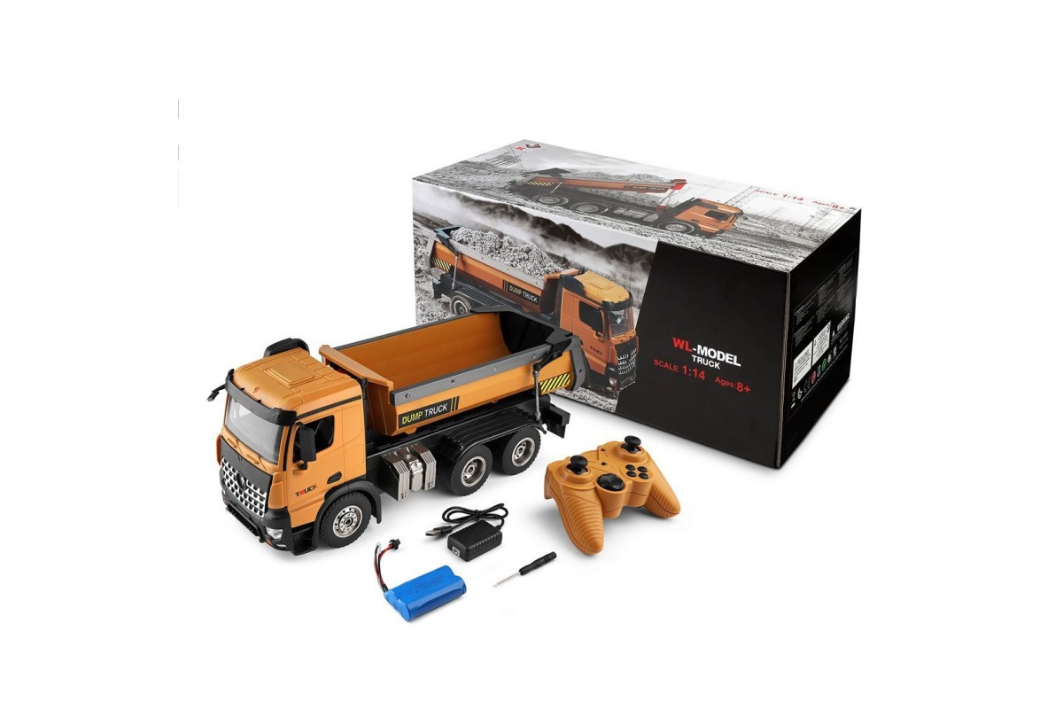 Радиоуправляемый строительный грузовик Wltoys 14600 с технологией дистанционного управления 2.4G, расстояние дистанционного управления может достигать 80 м. Свободная подъемная конструкция кузова под углом 45 °. Масштабное имитационное моделирование.