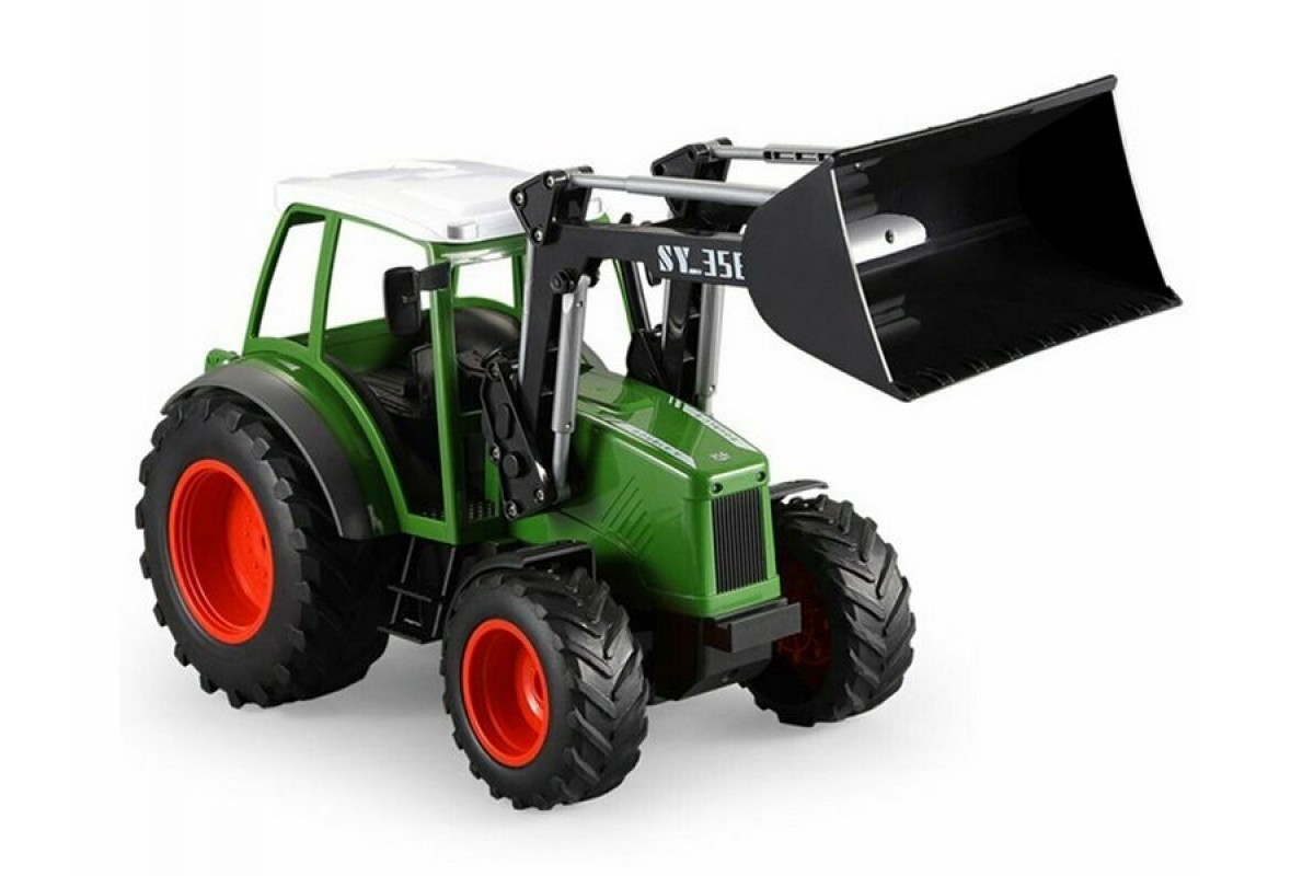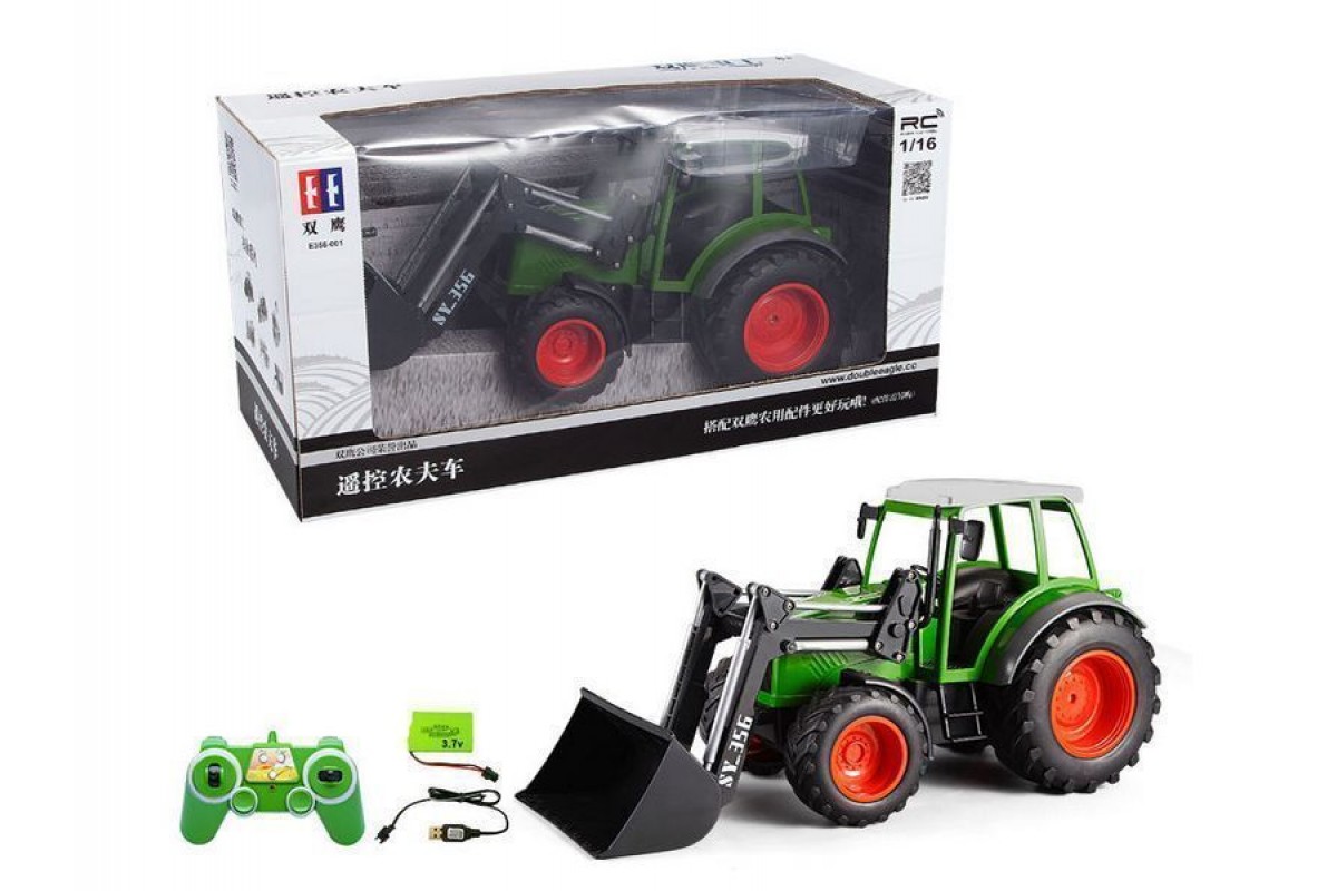 Радиоуправляемый фермерский трактор Double Eagle выглядит и работает как настоящий, оснащен ковшом в качестве рабочего органа, что делает игру максимально реалистичной и оправдывает его цену. Он выполнен в масштабе 1:16 (410 x 180 x 210 мм), оснащен Li-Po-аккумулятором на 600 mAh, контролируется дистанционно на расстоянии до 45 м и развивает скорость 2 км/ч.