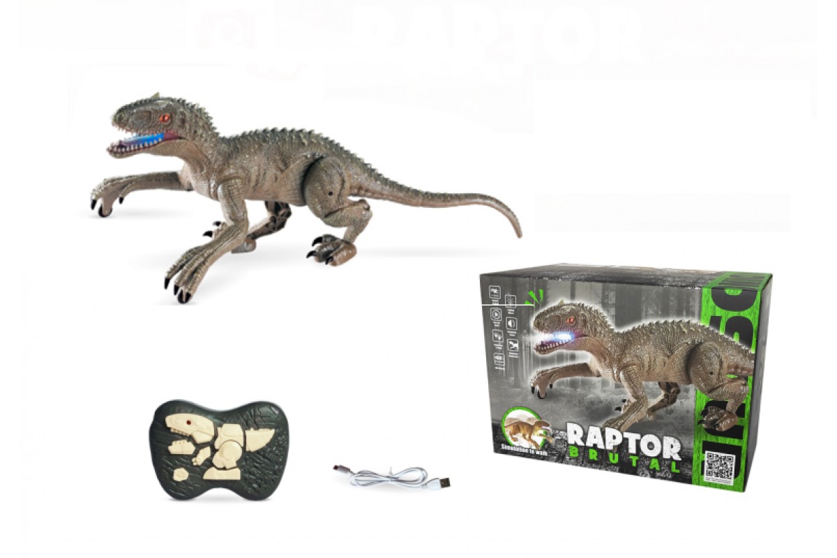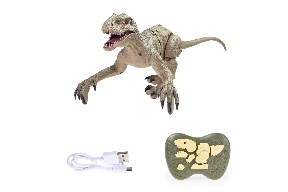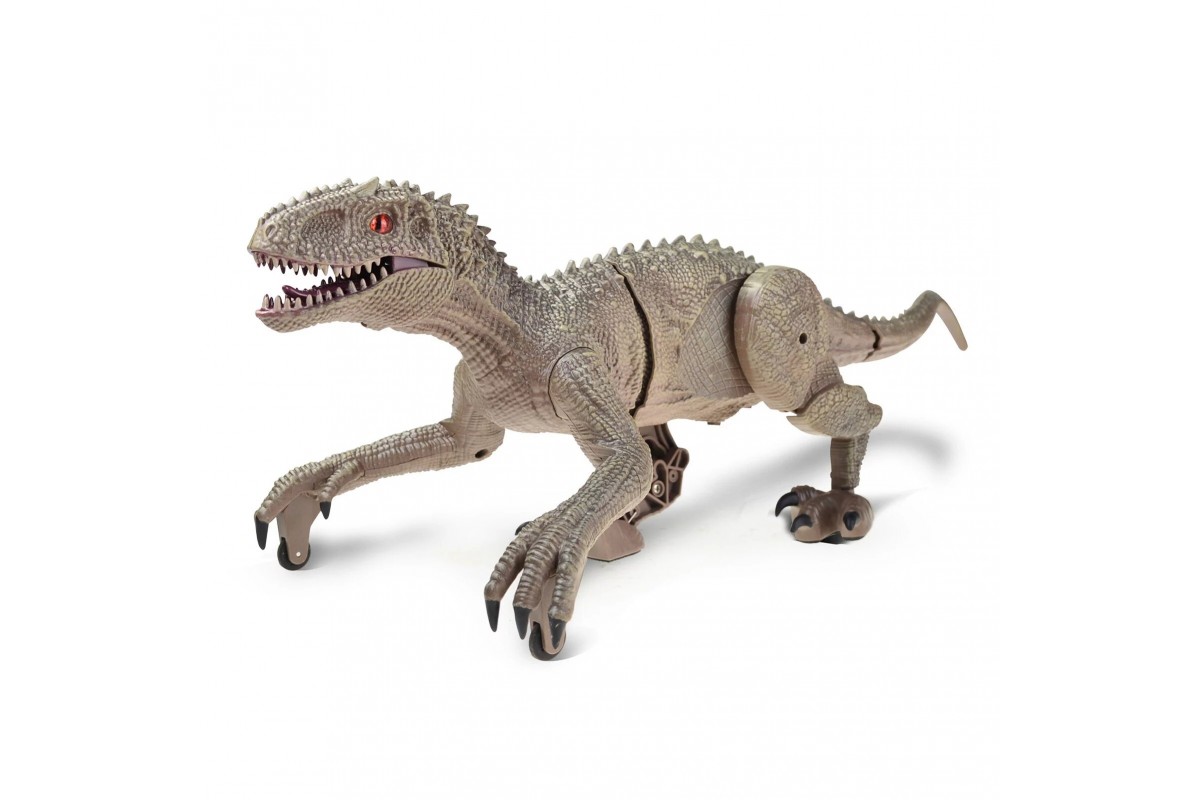 Такого питомца на радиоуправлении можно приютить у себя. Он может двигаться вперед и назад, поворачивать вправо, влево и при движении реалистично изгибается тело и шевелится хвост. Благодаря колесикам, установленным на передних конечностях, динозавр имеет дополнительные точки опоры и поэтому очень устойчив. Подсветка пасти в темноте выглядит зловеще и придает динозавру реалистичности. Кроме того, динозавр издает реалистичные звуки.