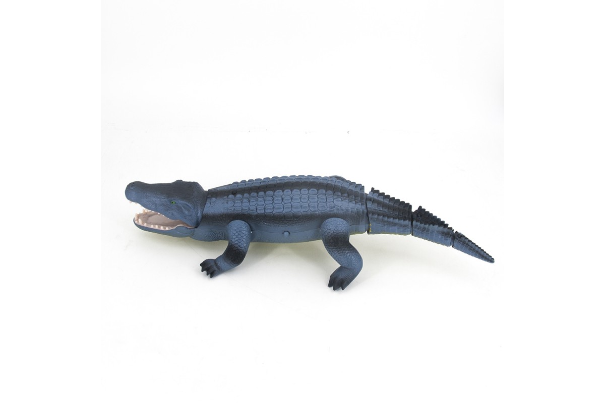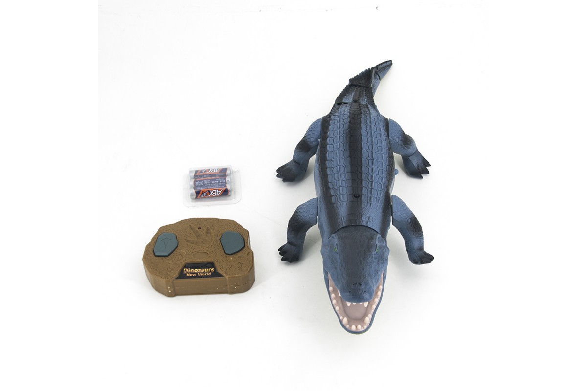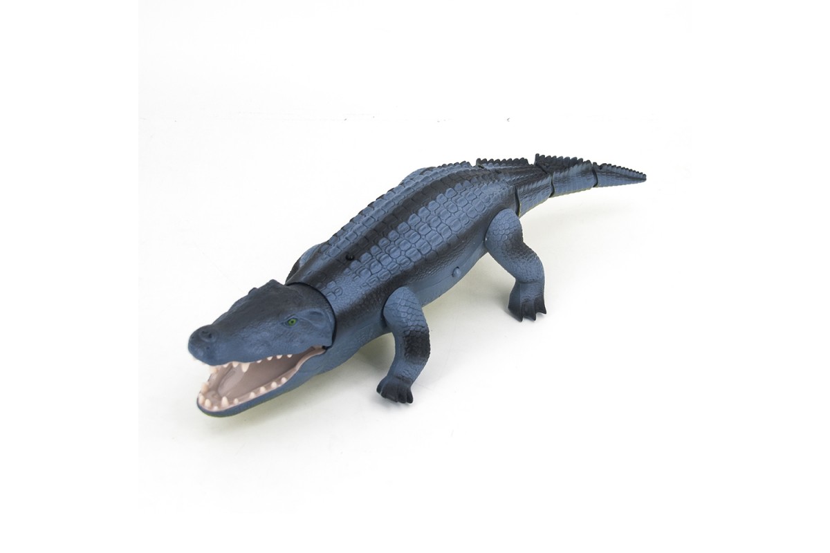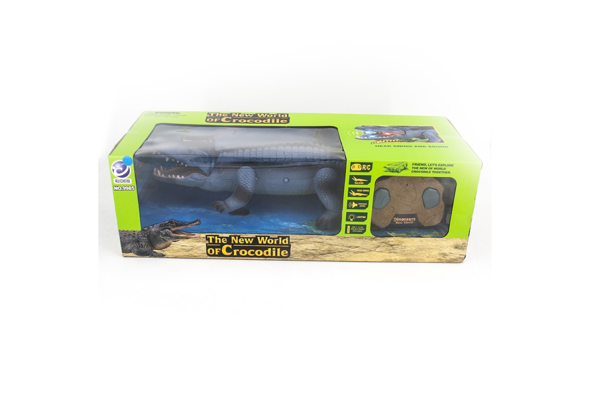 Игрушка радиоуправляемая «Крокодил» - оригинальная игрушка, которая обязательно понравится малышу, увлеченному удивительными существами - крокодилами. Этот игрушечный зверь может медленно передвигаться вперед и назад, исследовать окружающую его обстановку. Он также широко открывает пасть, грозно рычит и шевелит хвостом. Управление этим диковинным существом осуществляется при помощи специального пульта ДУ, который выполнен в виде большой окаменелости. Главным достоинством этой игрушки является ее удивительная реалистичность. Даже самые мелкие детали качественно прорисованы. Игрушка также оснащена световыми эффектами.