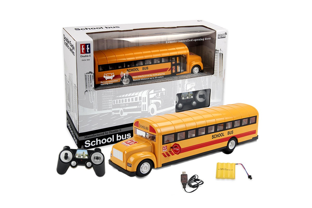Радиоуправляемый школьный автобус Double E 1:18 2.4G - E626-003 - это настоящий школьный автобус желтого цвета в масштабе 1:18. Максимальная детализация корпуса делает модель похожей на оригинал. Движение сопровождается звуками и подсветкой, поэтому очень нравится маленьким детям. Игрушка станет лучшим подарком для ребенка от 5 лет и старше. Красивый желтый автобус легко управляется при помощи пульта на батарейках. Питание осуществляется от встроенного аккумулятора 4.8V 300 mAh. Двери автобуса могут открываться и закрываться. Разместите пассажиров и можно приступать к игре.