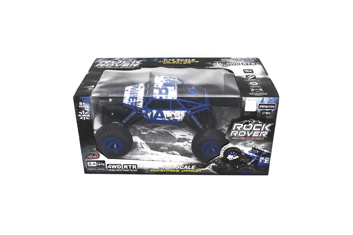 Радиоуправляемый синий краулер Zegan Rock Rover 1:18 2.4G - ZG-C1801 - это радиоуправляемая полноприводная машина для трофи. Машина обладает великолепной проходимостью и высоким качеством изготовления. Джип 4x4 внедорожник ZG-C1801 имеет полностью независимую подвеску с блокированными дифференциалами и ездит по всем поверхностям: трава, бордюры и т.д.