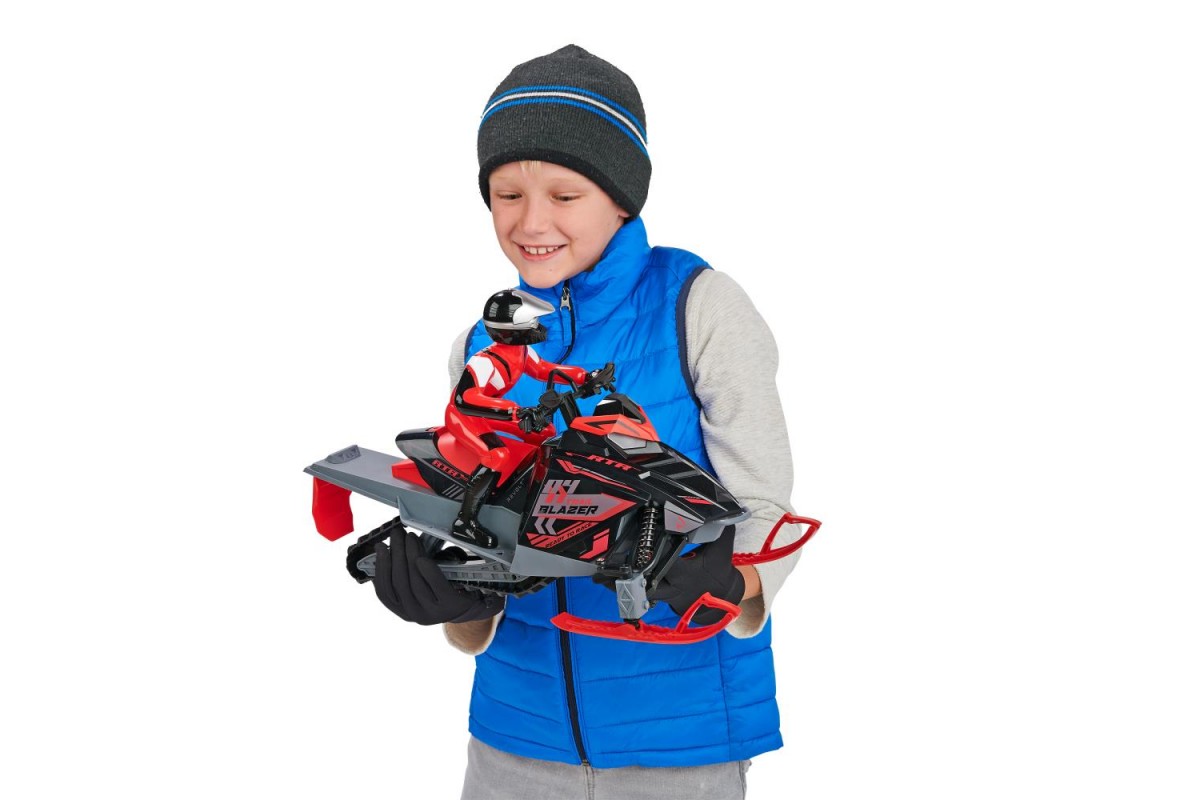 Радиоуправляемый снегоход SYMA 1:6 - TG1016-RED - это большой радиоуправляемый снегоход Syma TG1016, который можно запускать как в помещении, так и на улице, ведь он способен ездить по настоящему снегу! Две передние лыжи можно менять на лыжи с колесиками, что позволяет адаптировать снегоход для езды по твердой поверхности. Эта прочная модель с дистанционным управлением выполнена в масштабе 1:6, имеет фигурку водителя, и оснащена мощным электромотором. Передние заменяемые лыжи оснащены рабочей подвеской, а в качестве движителя используется широкая резиновая гусеница. Литиевая аккумуляторная батарея 7.4В/1200мАч позволяет разгоняется до скорости 8 километров в час и гонять в течении 20 минут, а светящиеся фары обеспечивают возможность кататься даже вечером.