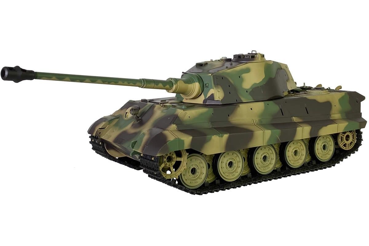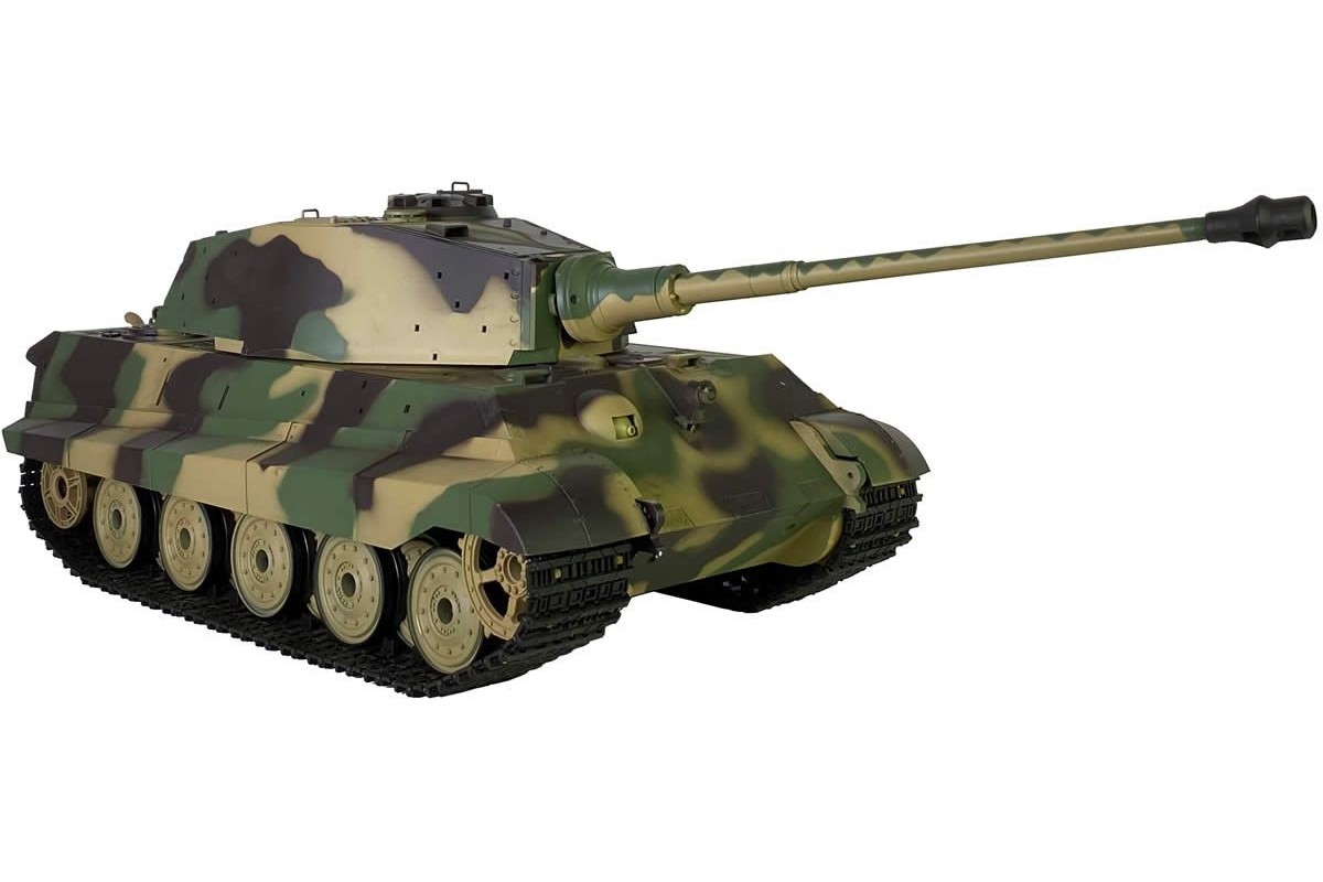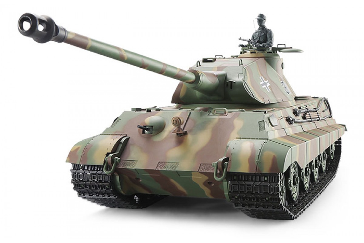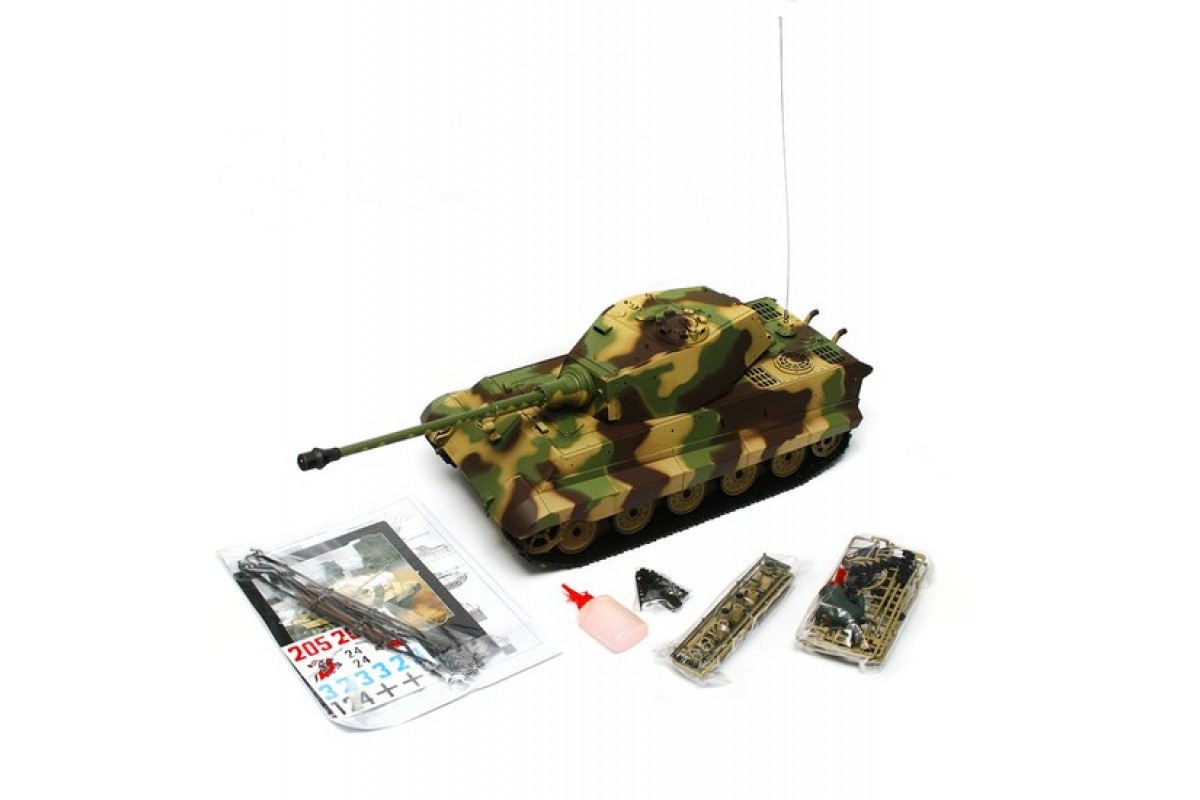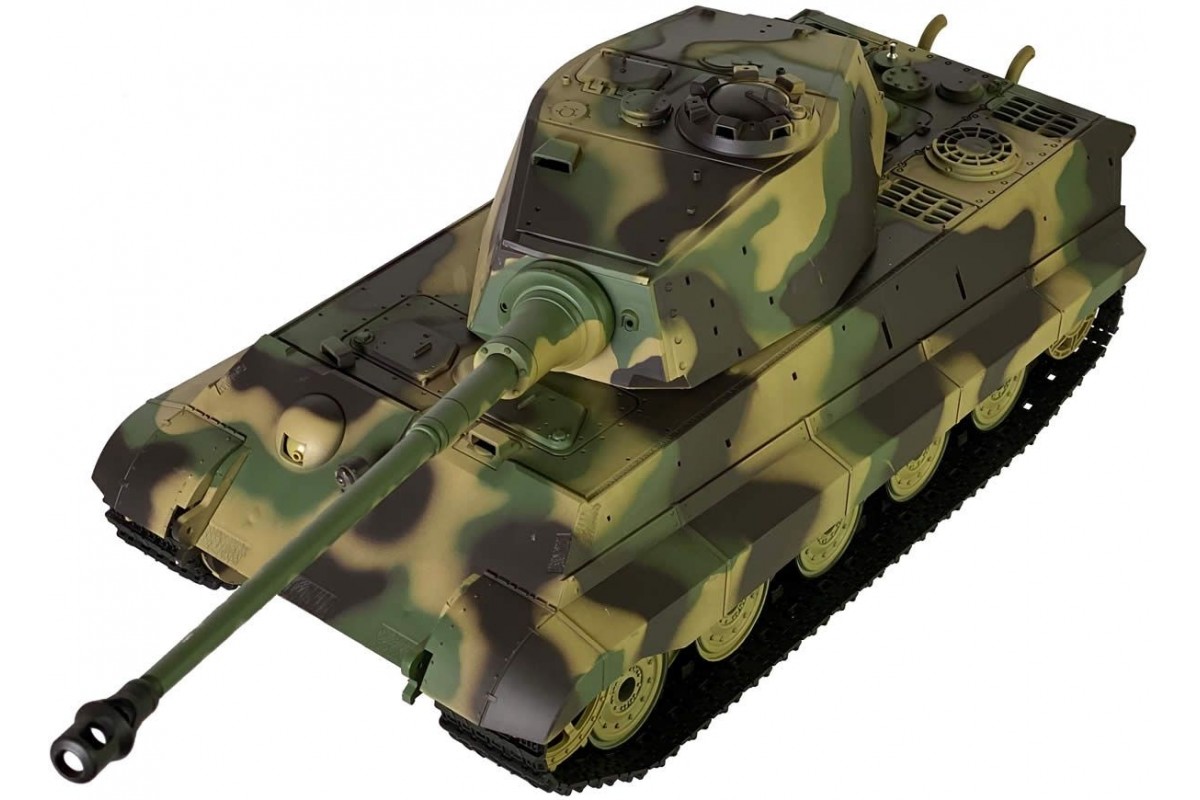 Радиоуправляемый танк Heng Long King Tiger UpgA V7.0 масштаб 1:16 2.4G - 3888A-1-UpgA-V7 - это танк German King Tiger Henschel Turret (Королевский тигр с башней типа Henschel) изготовлен в точном соответствии с известным немецким тяжелым танком, имеет прекрасно детализированный корпус с множеством дополнительных навесных аксессуаров.