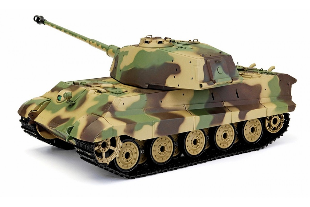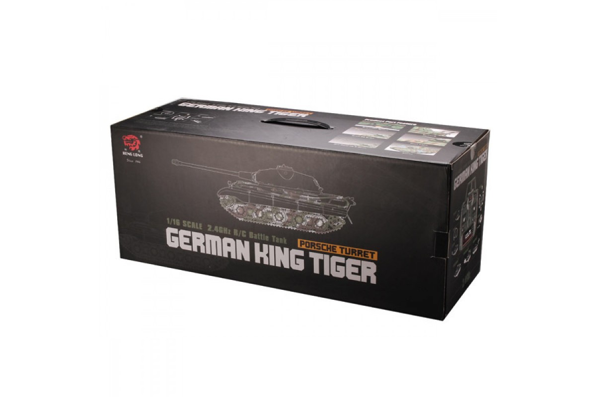 Радиоуправляемый танк Heng Long King Tiger V7.0 масштаб 1:16 2.4G - 3888A-1 V7.0 - это танк German King Tiger Henschel Turret (Королевский тигр с башней типа Henschel) изготовлен в точном соответствии с известным немецким тяжелым танком, имеет прекрасно детализированный корпус с множеством дополнительных навесных аксессуаров.