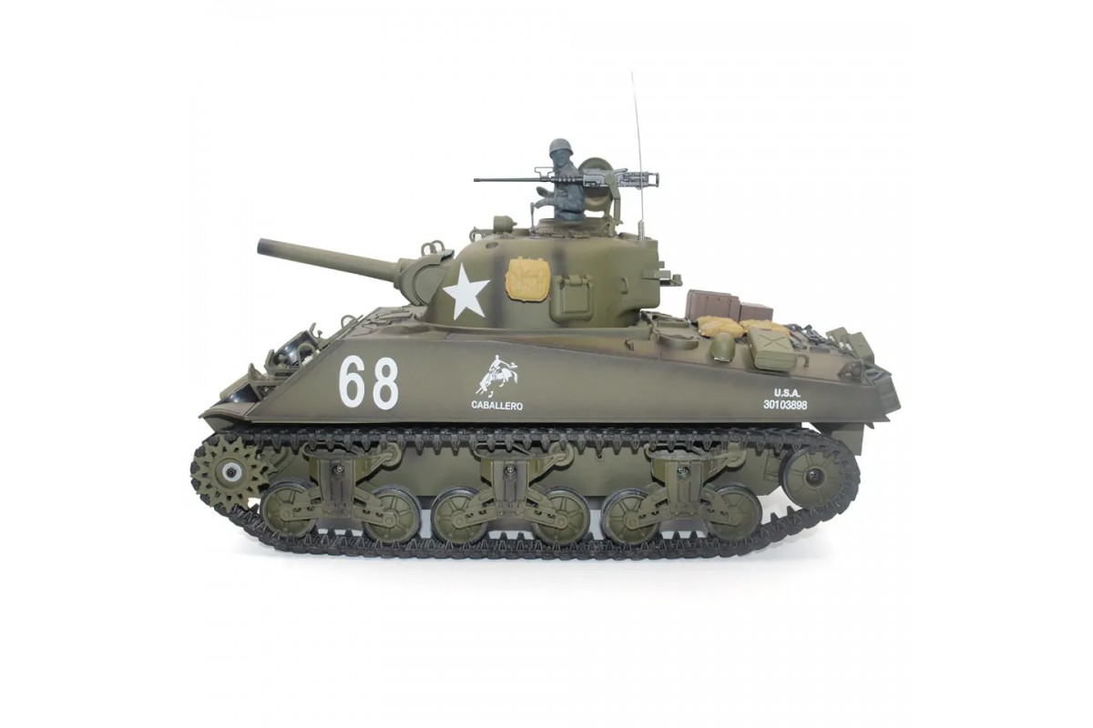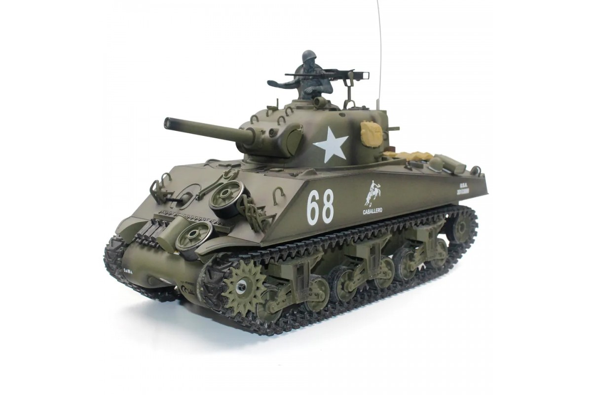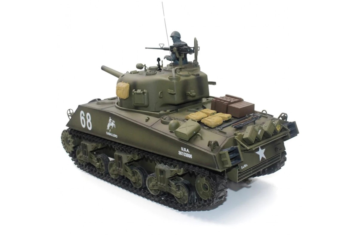 Радиоуправляемый танк Heng Long M4A3 Sherman V7.0 масштаб 1:16 RTR 2.4GHz - 3898-1 V7.0 - это модель американского танка M4A3 Sherman была разработана в 1940г. Годы производства с 1942-45 гг. M4A3 Sherman назван в честь американского генерала Уильяма Шермана и являлся основной боевой силой армии США времен Второй мировой войны, поставлялся в больших количествах союзникам (Великобритания, СССР) и после войны состоял на вооружении многих стран. После T-34 и Т-54 - наиболее массовый танк в мире, и наиболее массовый танк американского производства.