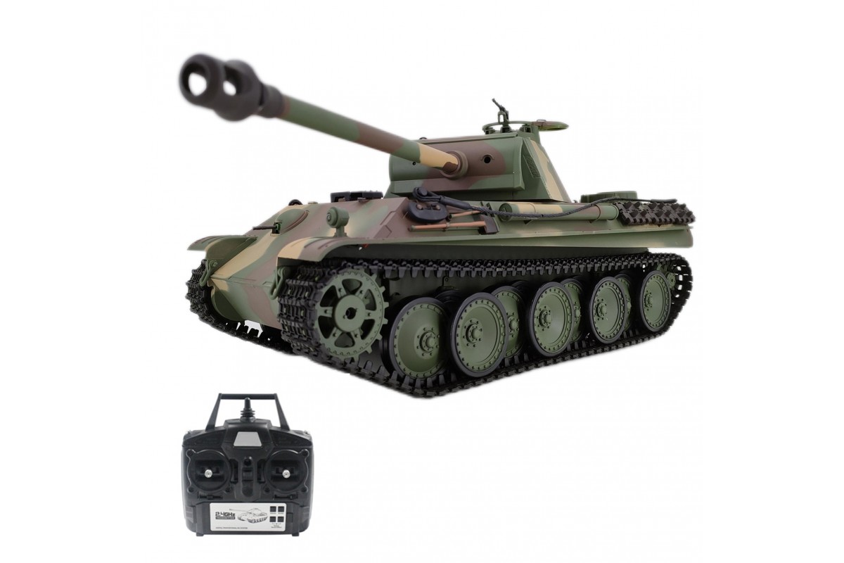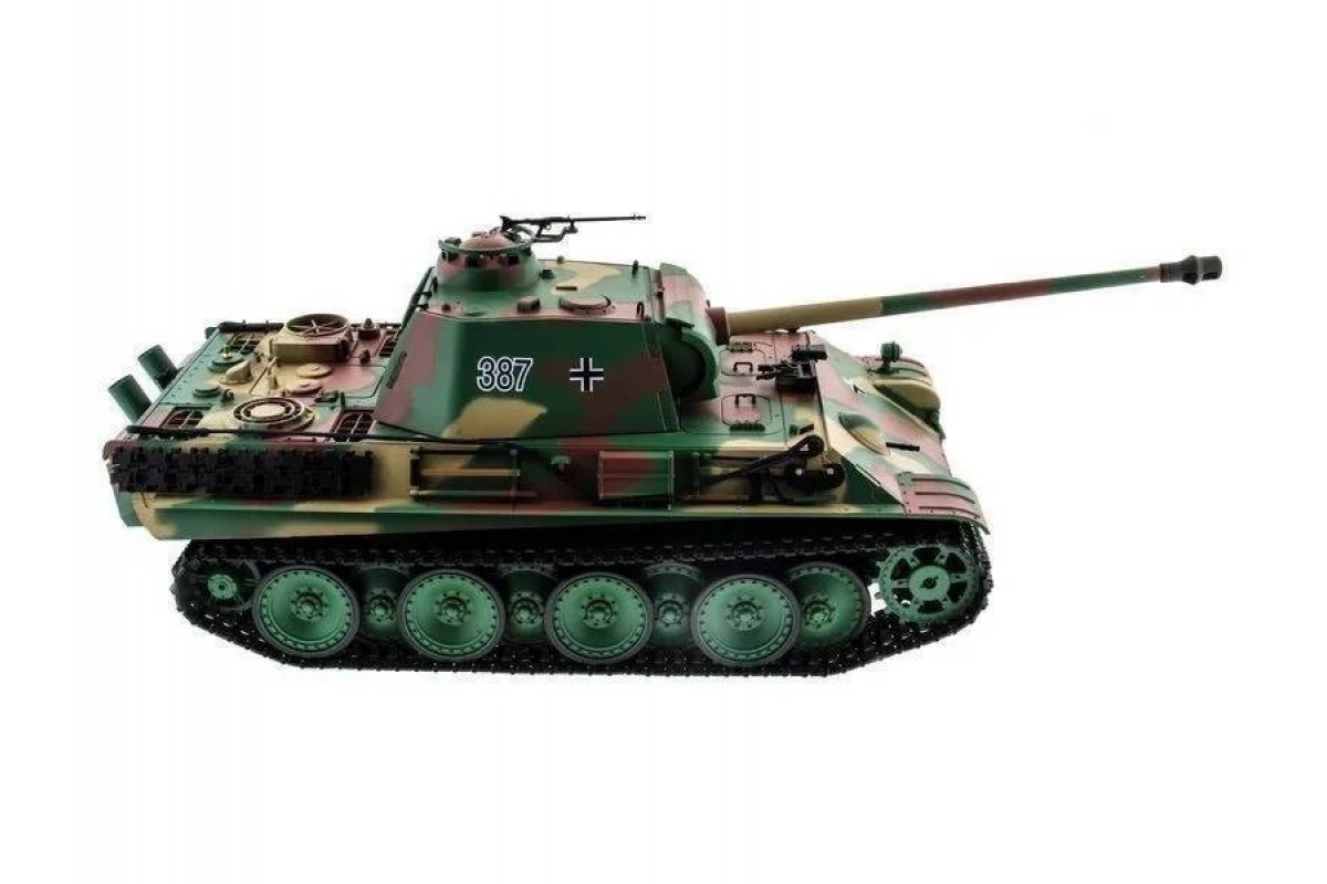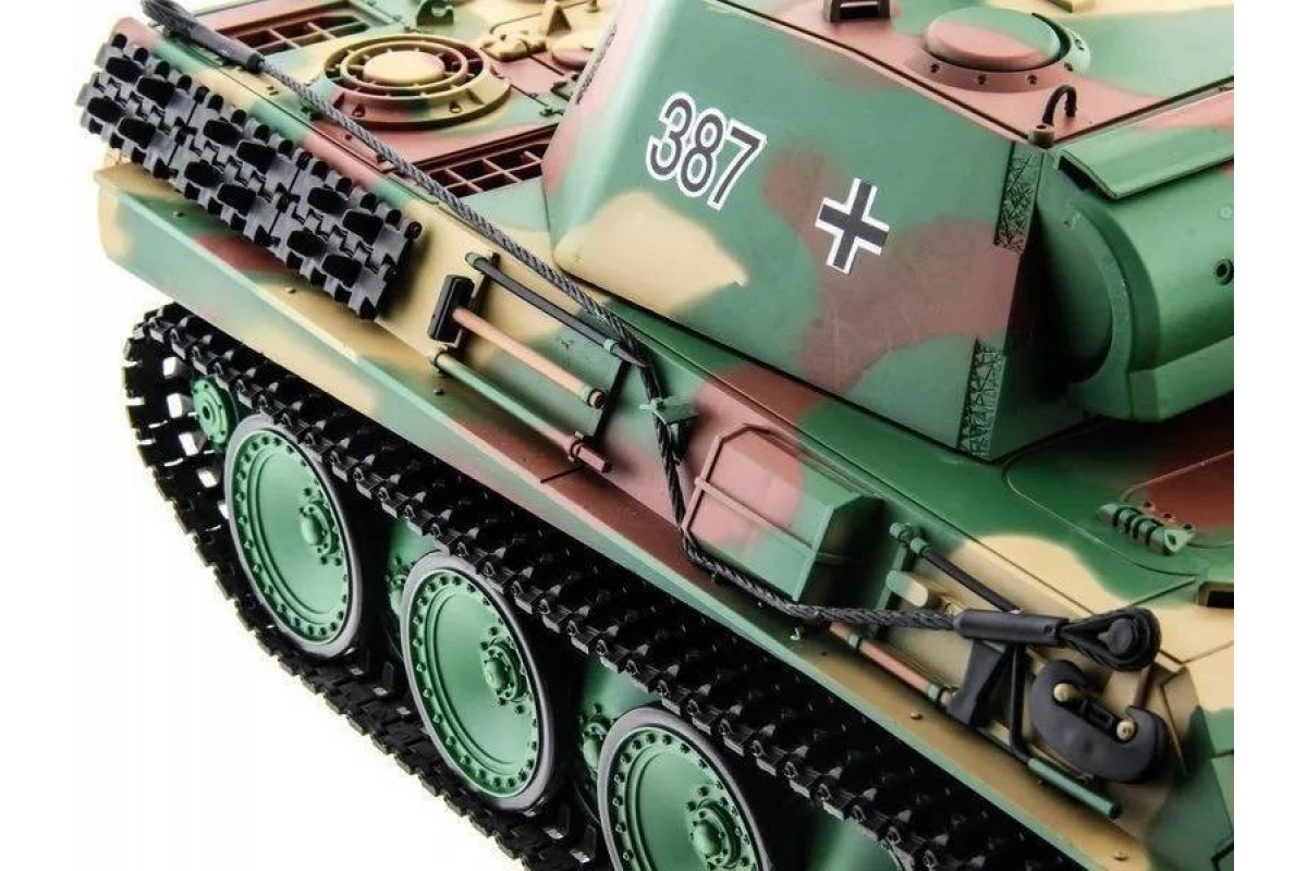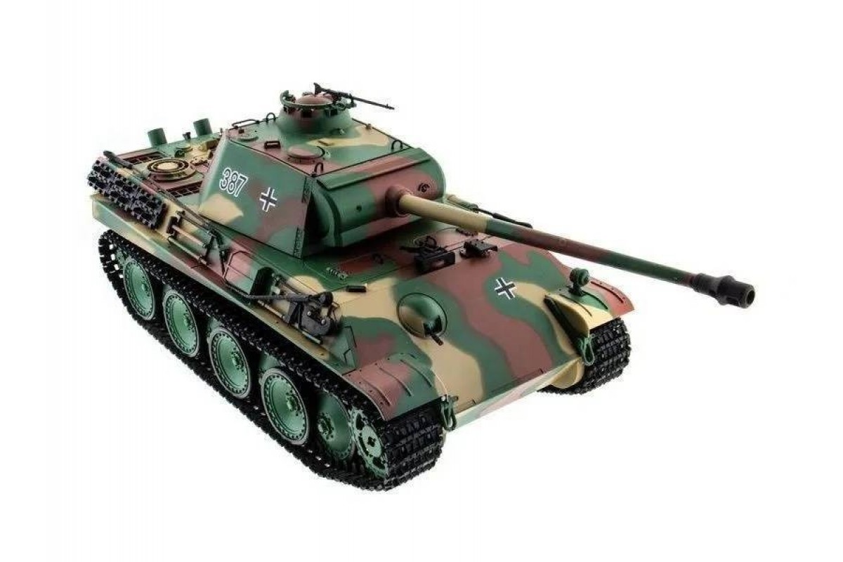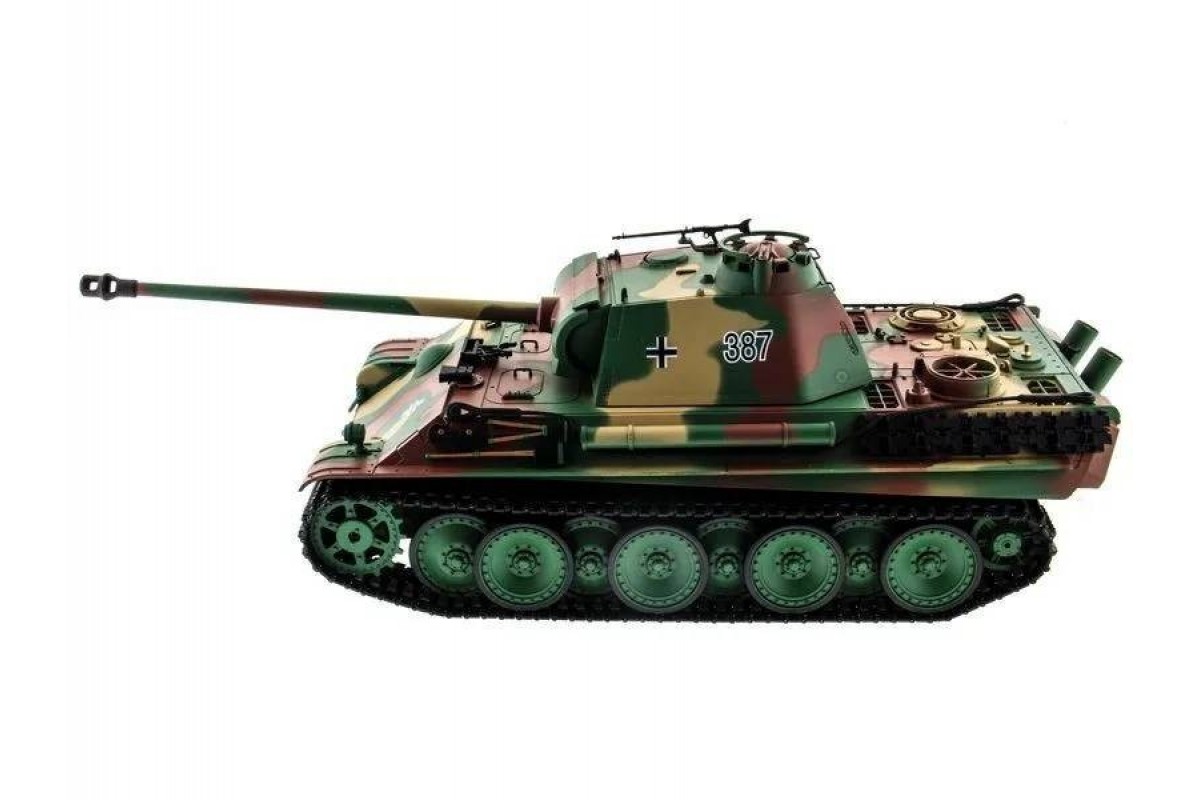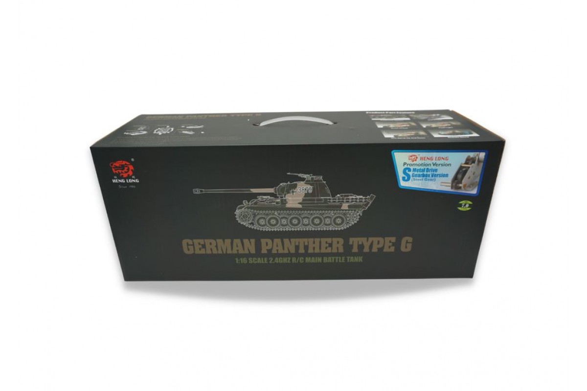 Радиоуправляемый танк Heng Long Panther Type G Original V7.0 масштаб 1:16 RTR 2.4G - 3879-1 V7.0 - это высокодетализированый радиоуправляемый танк, максимально приближенный к своей реальной копии немецкого танка. Оснащен пневматической и ик-пушками. Танк Heng Long Panther совершает движения вперед и назад на 2-х скоростях, разворот на 360, вращающаяся башня с поднимающимся-опускающимся дулом.
