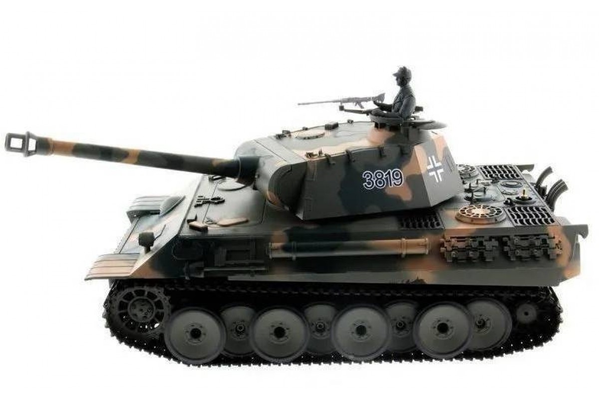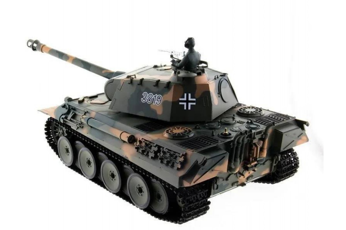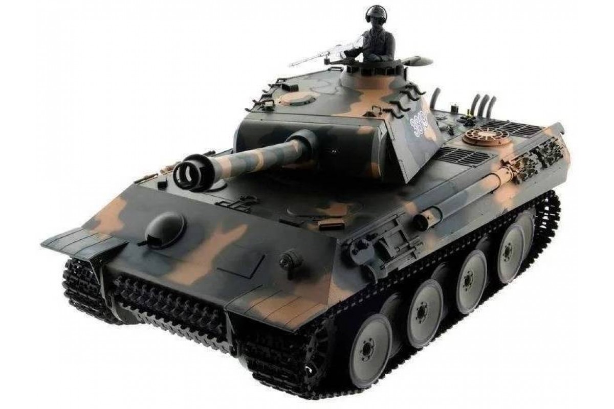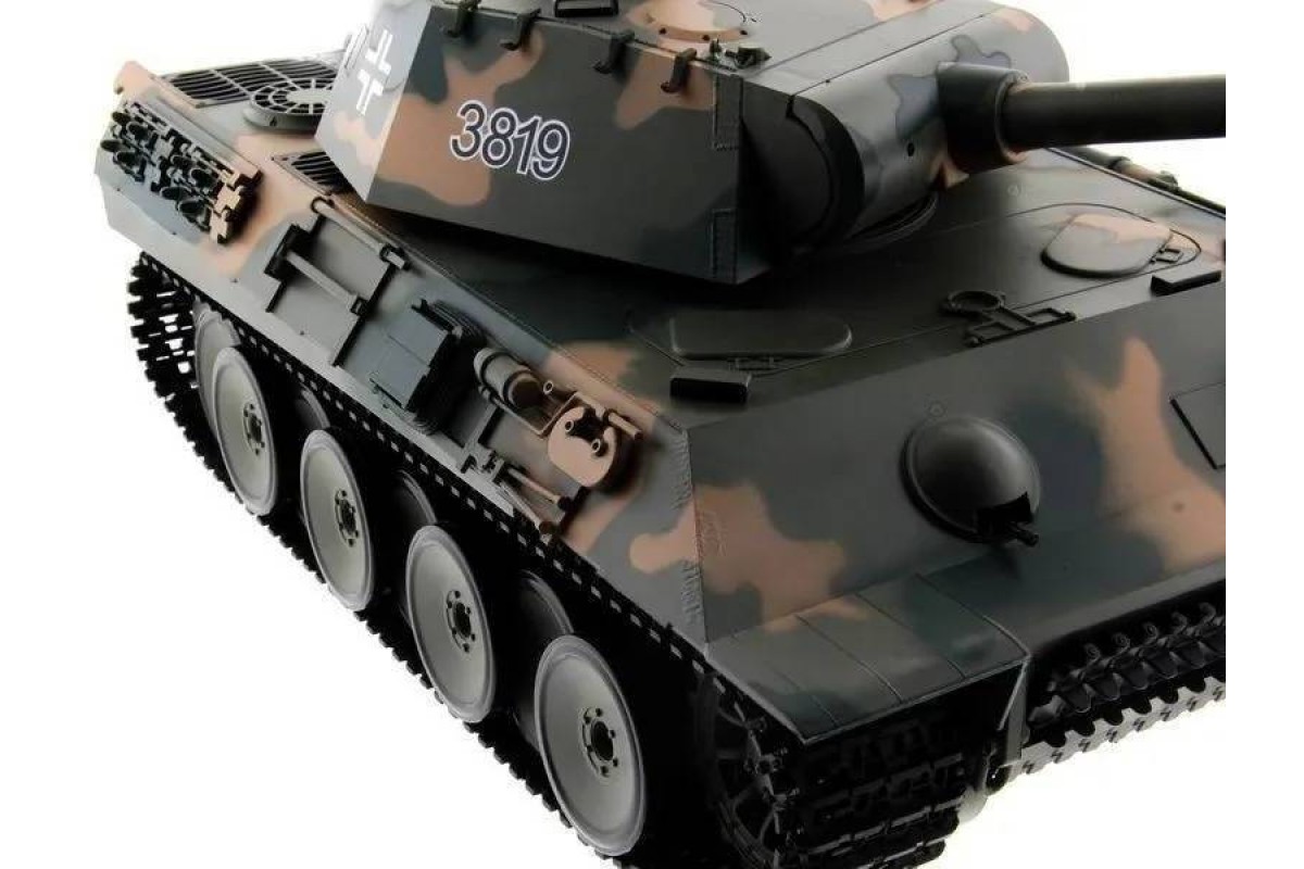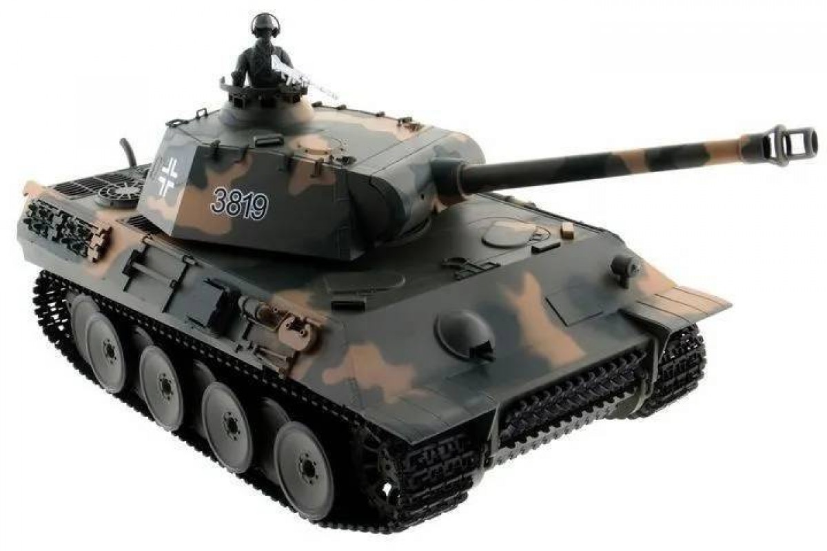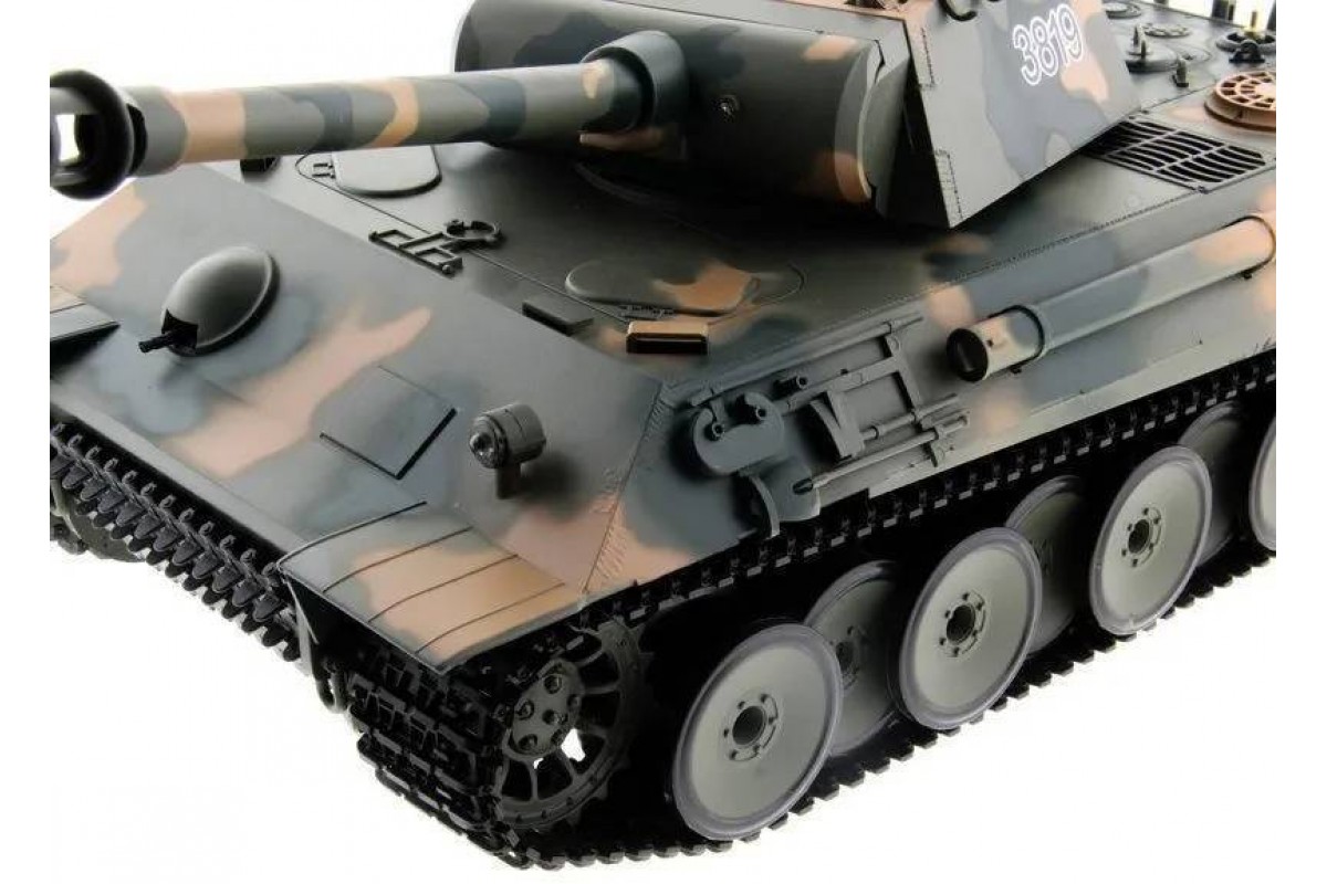 Радиоуправляемый танк Heng Long Panther Upgrade V7.0 масштаб 1:16 - 3819-1Upg V7.0 - это высокодетализированый радиоуправляемый танк, максимально приближенный к своей реальной копии немецкого танка. Оснащен пневматической и ик-пушками. Танк Heng Long Panther совершает движения вперед и назад на 2-х скоростях, разворот на 360, вращающаяся башня с поднимающимся-опускающимся дулом.