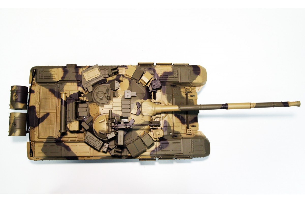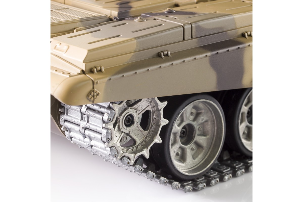 В модели предусмотрены дымовые эффекты, имитирующий выхлоп отработанного топлива. Танк оснащен подвижной пневматической пушкой для стрельбы пластиковыми снарядами (во время выстрела загораются светодиодные элементы на корпусе) и башней, которая вращается на 320 градусов. Сам же радиоуправляемый танк поворачивается на 360 градусов и моментально реагирует на любые команды с пульта на расстоянии до 30 метров.