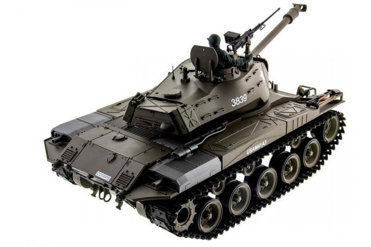 Радиоуправляемый танк Heng Long Walker Bulldog Upgrade V7.0 масштаб 1:16 - 3839-1Upg V7.0 - это модель боевого танка США. В танк Heng Long Bulldog встроен генератор дыма и пневматическая пушка с отдачей. Пневматическая пушка танка Heng Long Bulldog стреляет пластиковыми шарами. При стрельбе загорается светодиод и идет дым. Башня вращается на 345 градусов, подвижный ствол пушки (вверх-вниз).