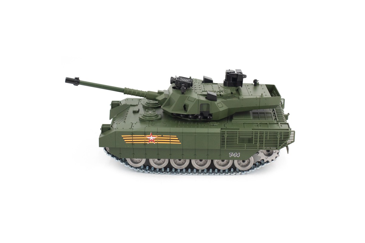 Радиоуправляемый танк R-WINGS RUSSIA T-14 Армата - RWG021-830-PRO - это радиоуправляемая модель российского танка с пневматической пушкой. Индикатор предупреждения перед выстрелом и разряда аккумулятора. Высокодетализированный кузов с навесным оборудованием. Танк Т14 Армата - современный российский боевой танк. Лидер среди своих аналогов по основным боевым свойствам - мобильности, огневой мощи и броневой защиты.
