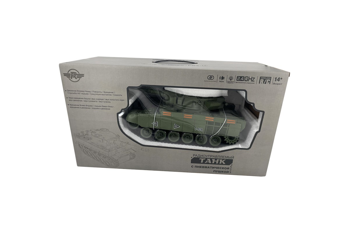 Радиоуправляемый танк R-WINGS RUSSIA T-90А - RWG021-834 - радиоуправляемая модель российского танка с пневматической пушкой. Индикатор предупреждения перед выстрелом и разряда аккумулятора. Высокодетализированный кузов с навесным оборудованием. Танк Т-90 ''Владимир'' - современный российский основной боевой танк. Лидер среди своих аналогов по основным боевым свойствам - мобильности, огневой мощи и броневой защиты. Игрушка имеет сертификат соответствия EAC.