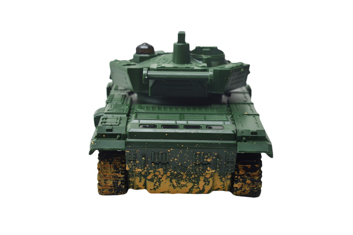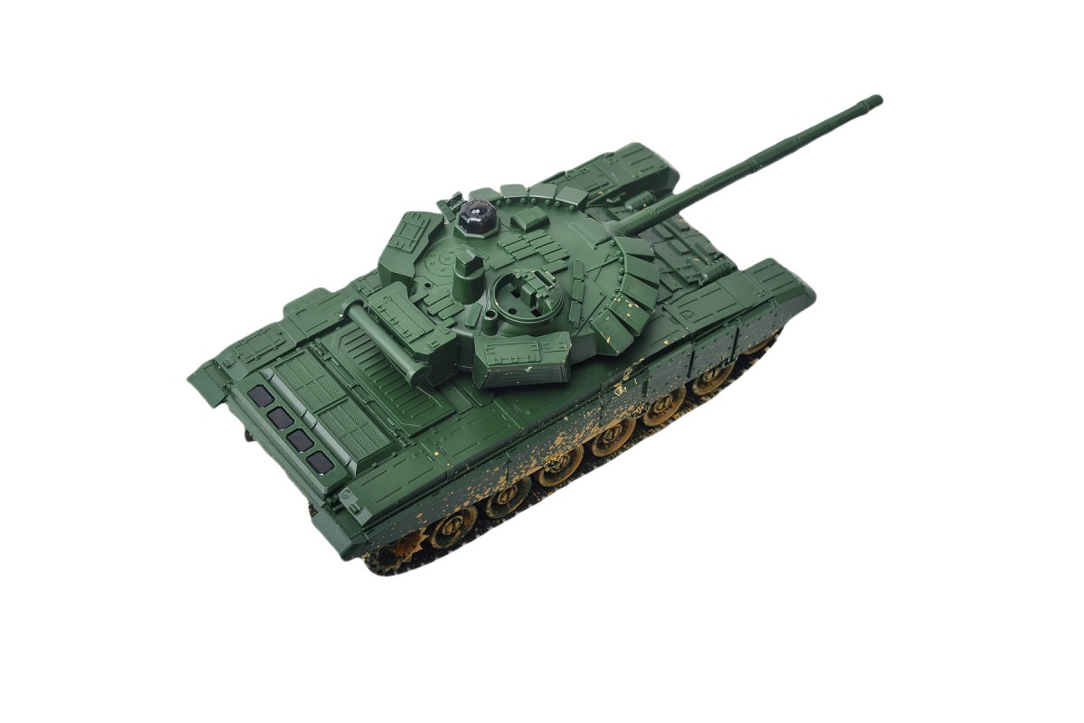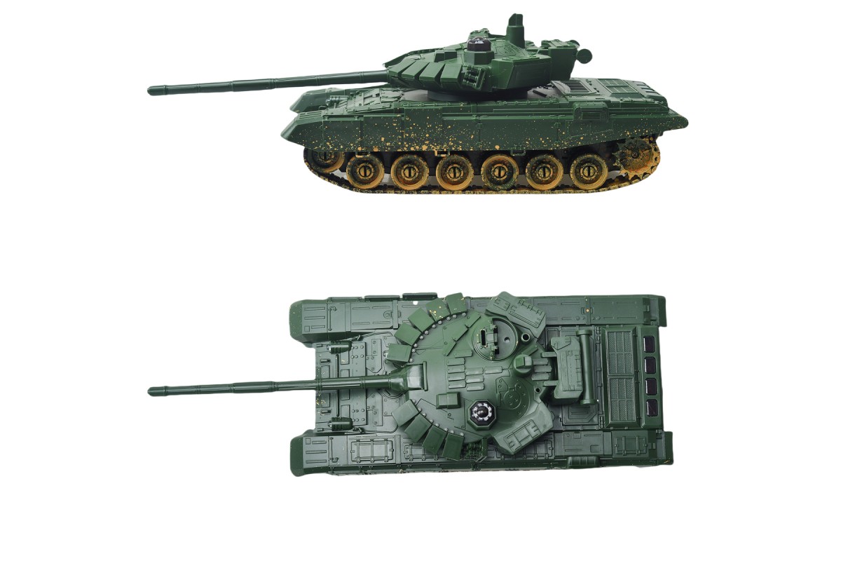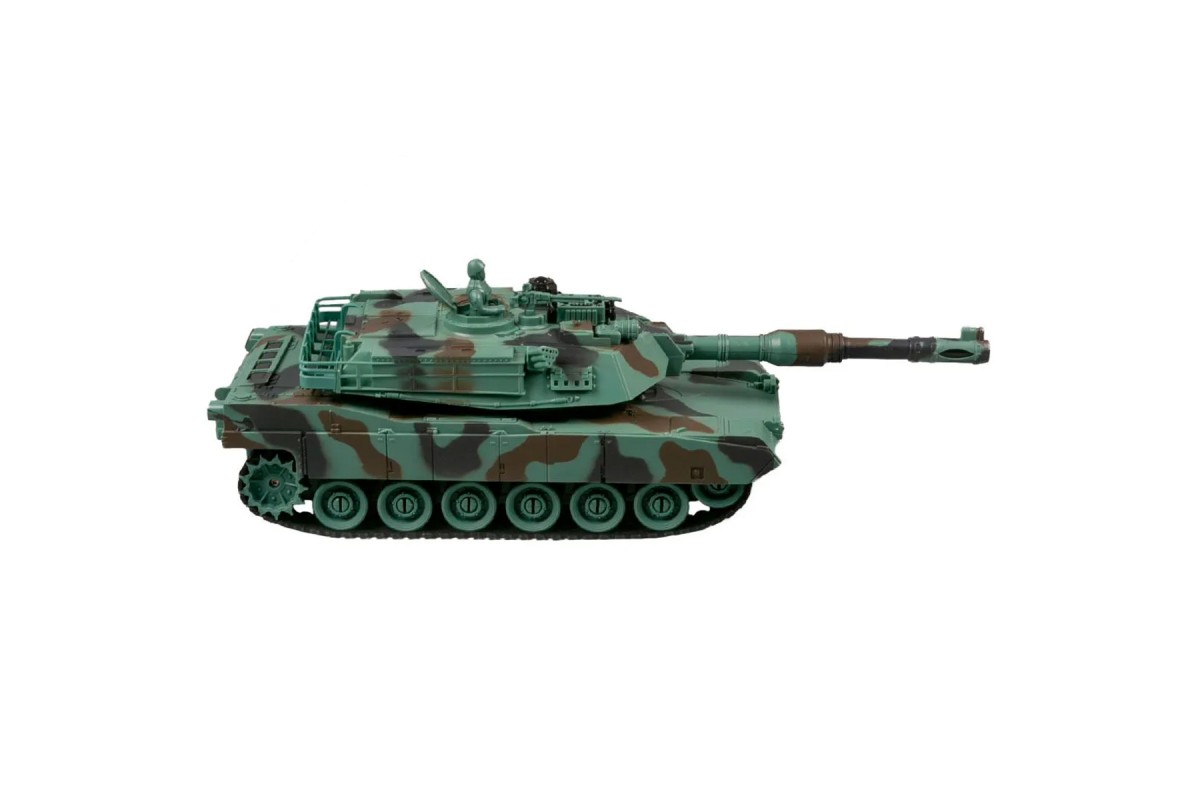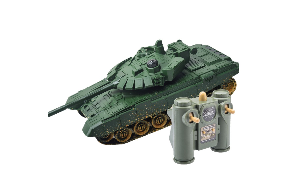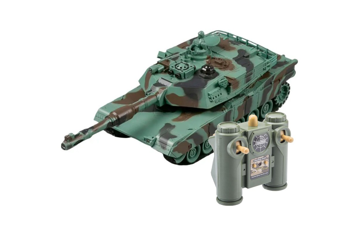 Радиоуправляемый танковый бой (советский T72 + M1 Абрамс США) - RWG99851 - это набор из двух радиоуправляемых моделей танков, которые работают на частоте 2.4G. Стрельба осуществляется инфракрасным лучом на расстояние до 3 м в секторе до 10 градусов. Имитируется выстрел пушки. На задней части башни 5 светодиодов жизнеспособности танка. Танк издает звук работы двигателя и звук выстрела орудия. Питание танка происходит от аккумулятора 4.8v 700mAh, а зарядное устройство входит в комплект поставки.