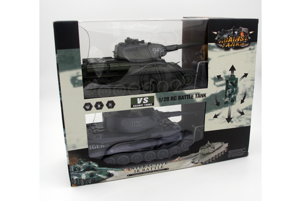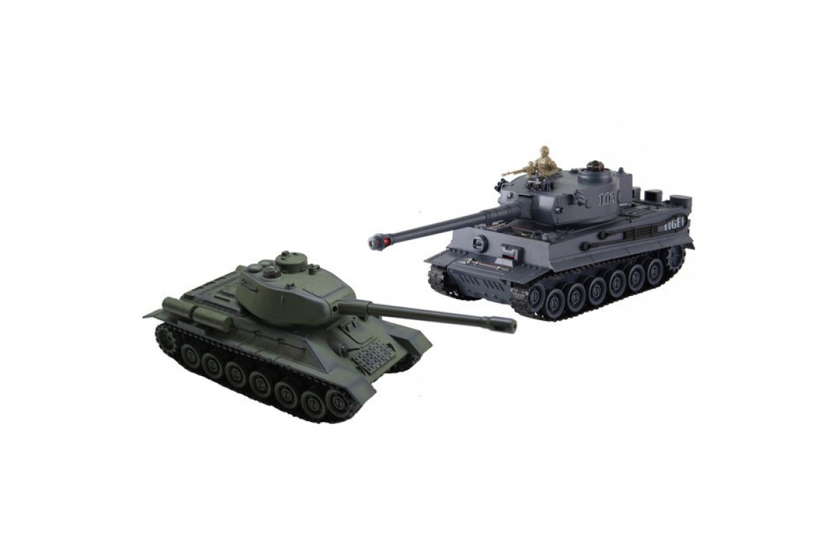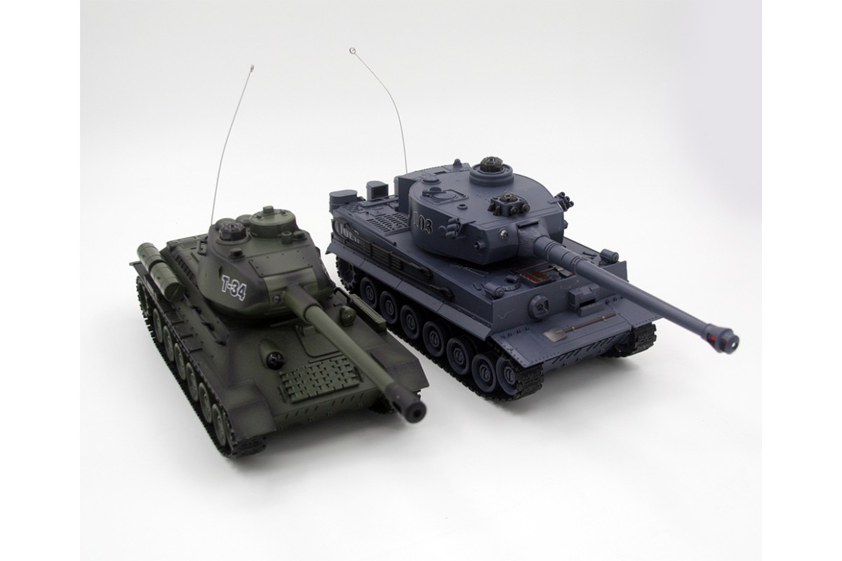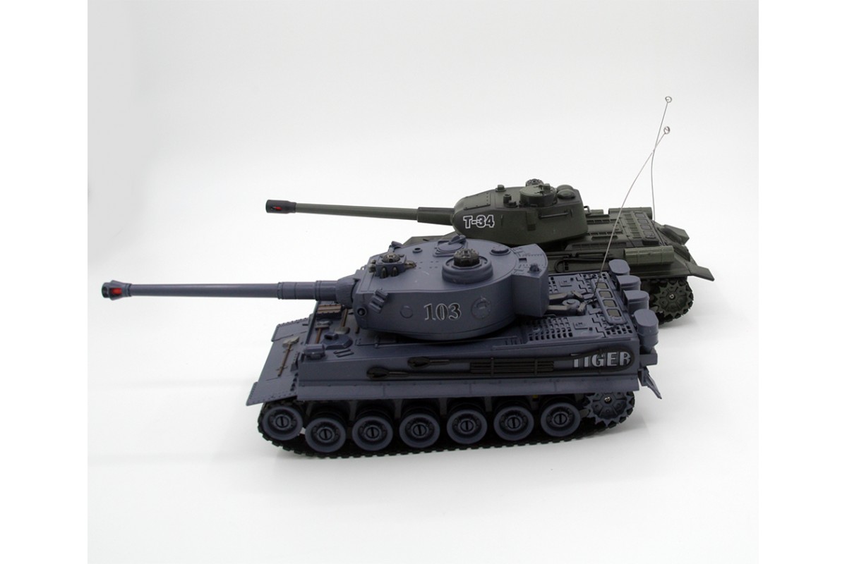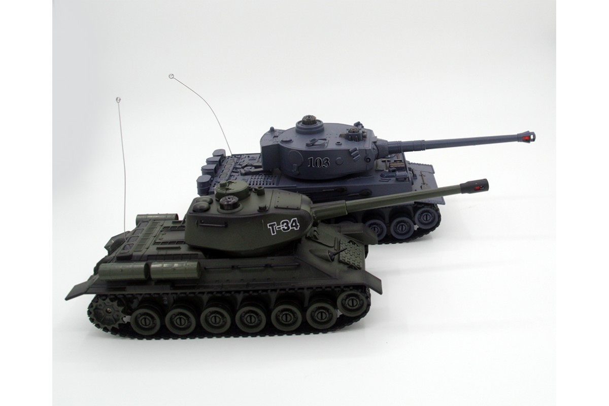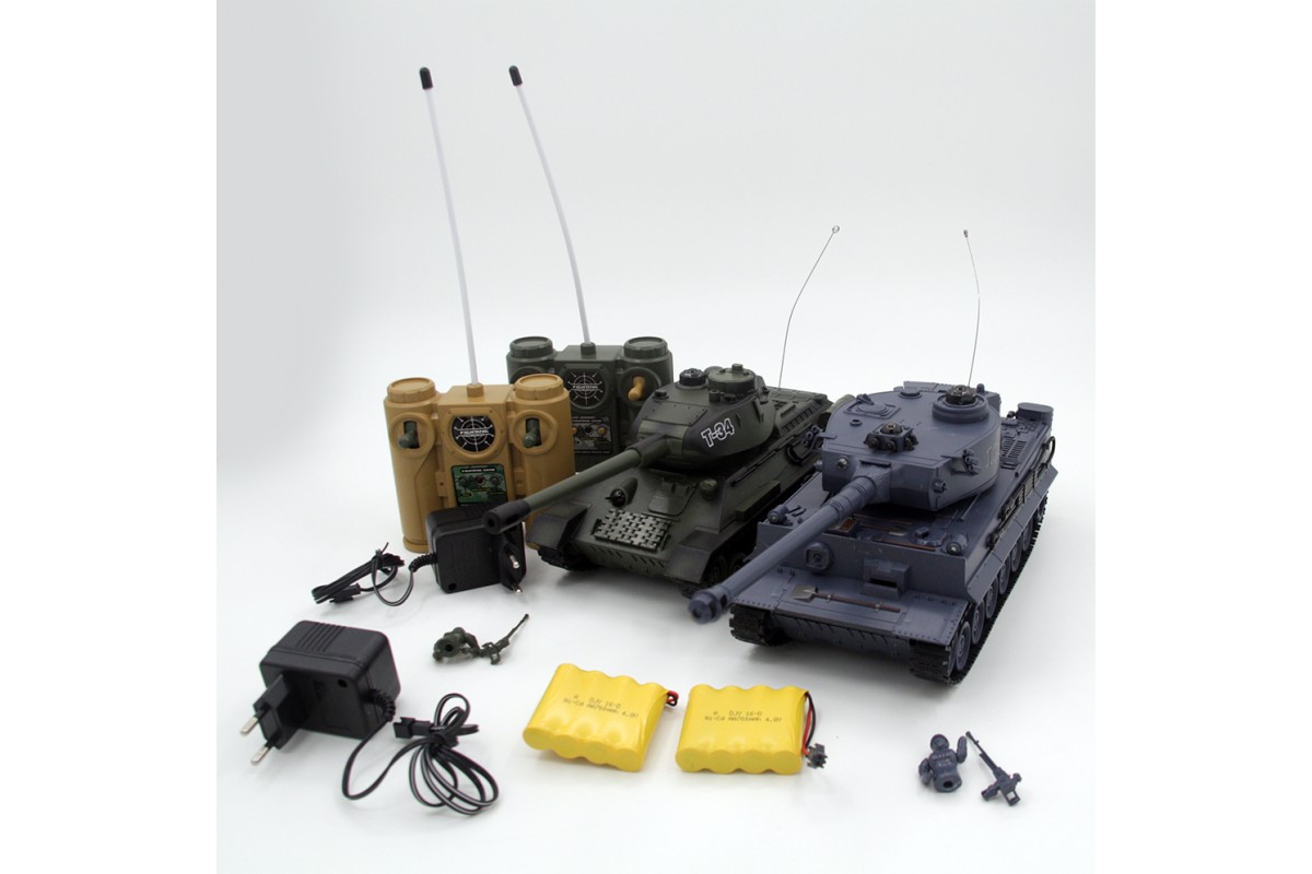 - Комплектация:RTR - (Ready To Run), 2 танка русский T-34 и немецкий Tiger. 2 аккумулятора 4.8v 700mAh,. 2 зарядных устройства. 2 пульта. Инструкция.