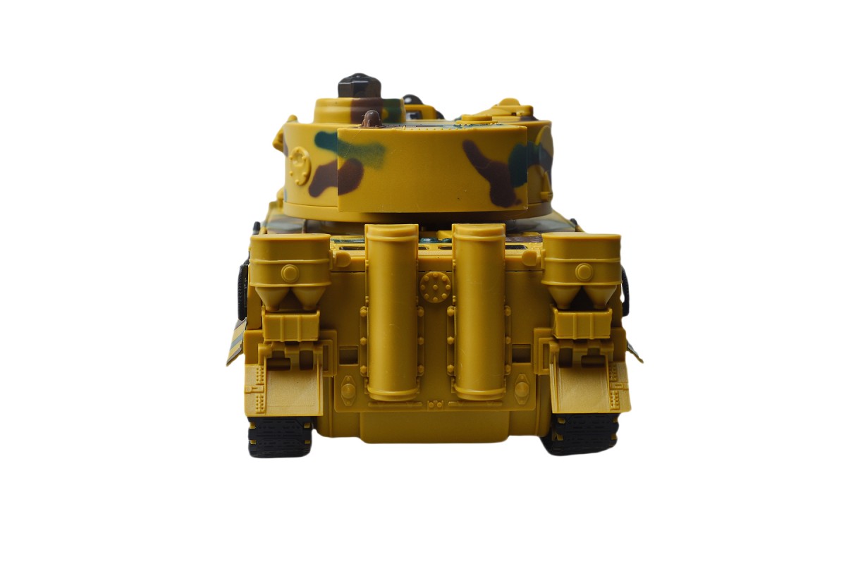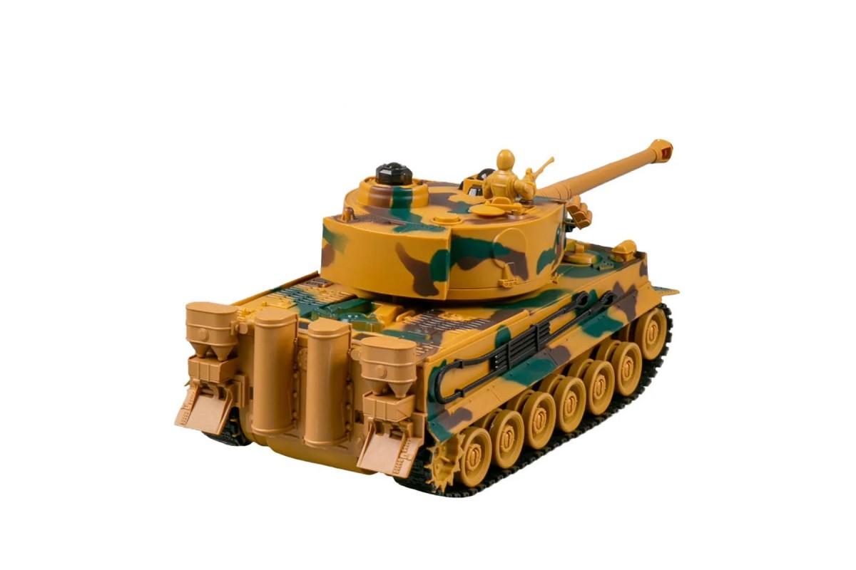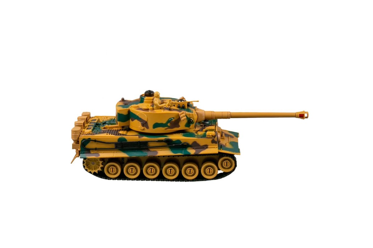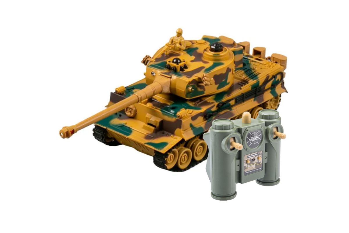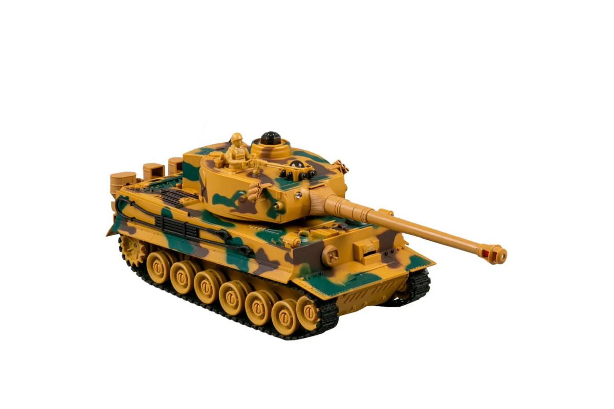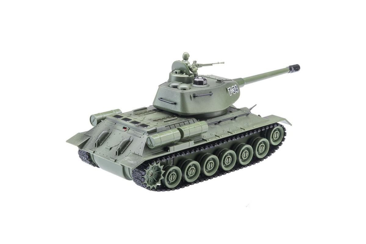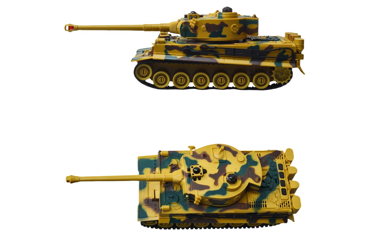 Радиоуправляемый танковый бой (ТИГР I + Т-34) - RWG99854 - это набор из двух радиоуправляемых моделей танков, которые работают на частоте 2.4G. Стрельба осуществляется инфракрасным лучом на расстояние до 3 м в секторе до 10 градусов. Имитируется выстрел пушки. На задней части башни 5 светодиодов жизнеспособности танка. Танк издает звук работы двигателя и звук выстрела орудия. Питание танка происходит от аккумулятора 4.8v 700mAh, а зарядное устройство входит в комплект поставки.