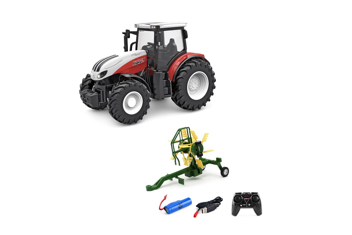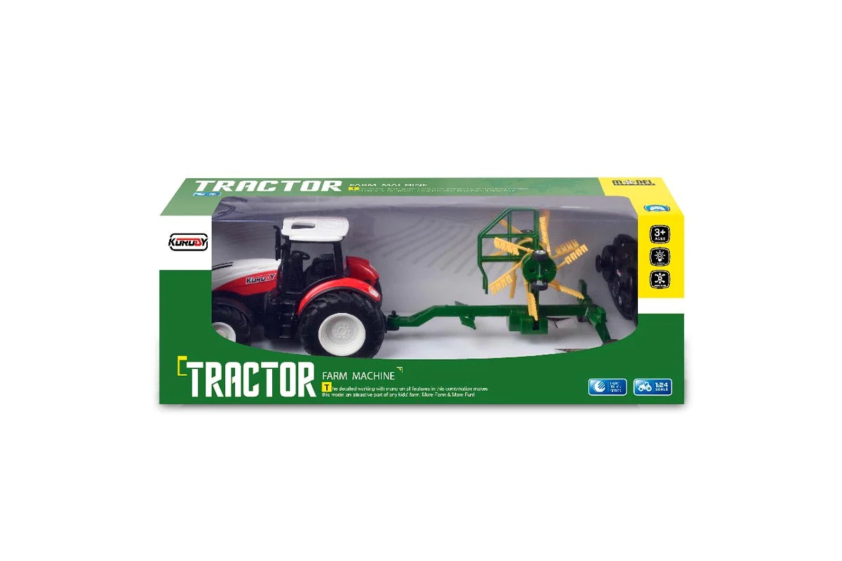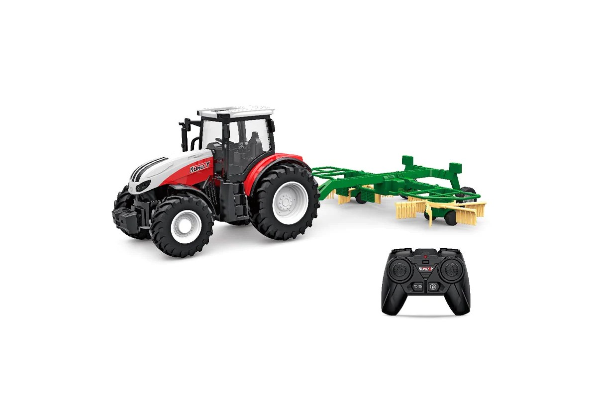 Радиоуправляемый трактор с граблями для сена Huina / KoroDy (свет, акб) - KD6637 выглядит и работает как настоящий, оснащен прицепом с граблями для сена в качестве рабочего органа, что делает игру максимально реалистичной и оправдывает его цену. Он выполнен в масштабе 1:24 (420 x 130 x 170 мм), оснащен Li-Po-аккумулятором на 500 mAh, контролируется дистанционно на расстоянии до 45 м и развивает скорость 2 км/ч.