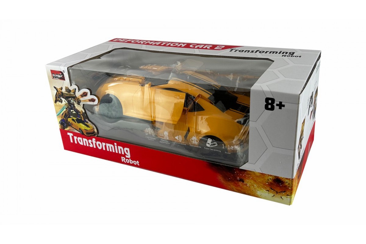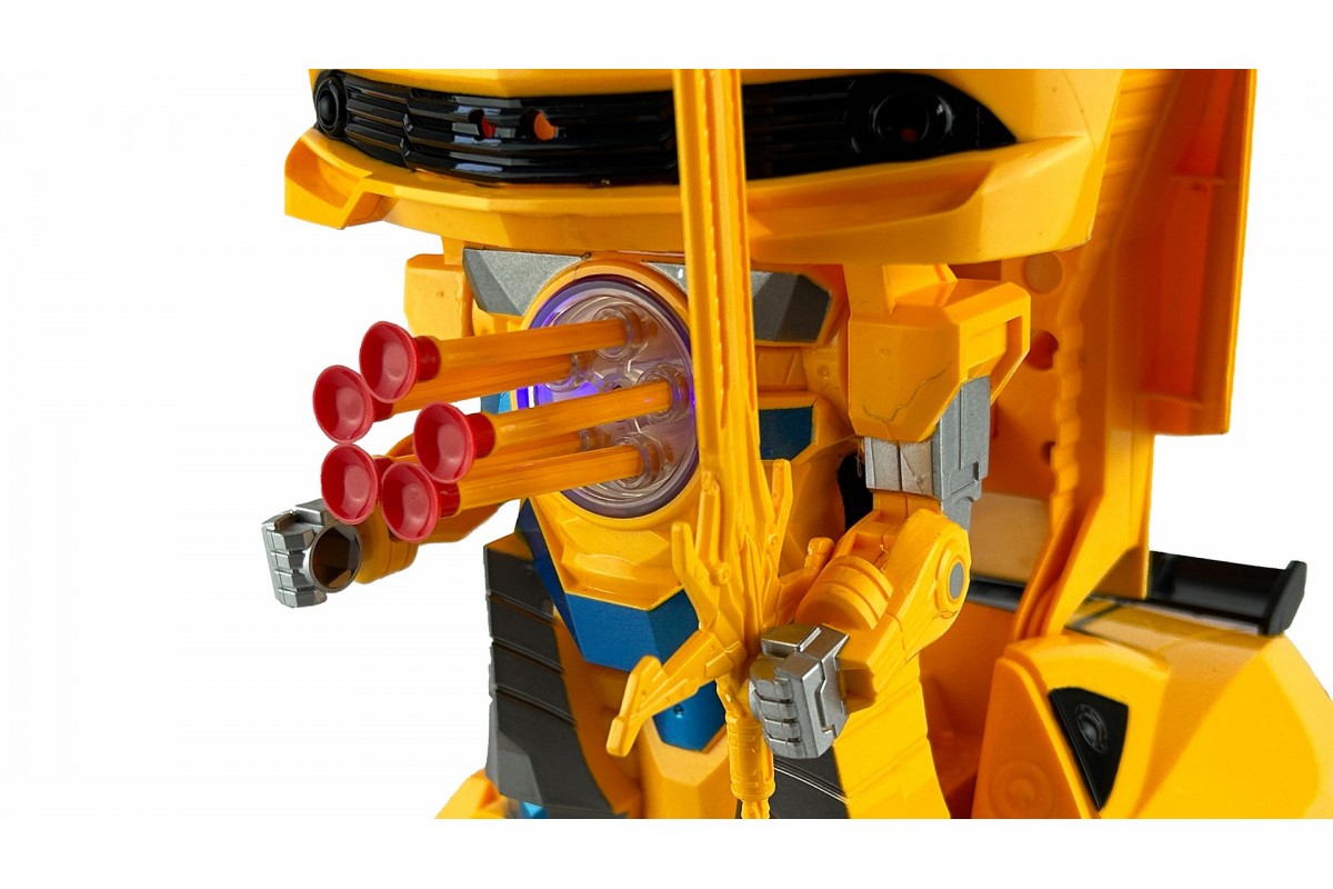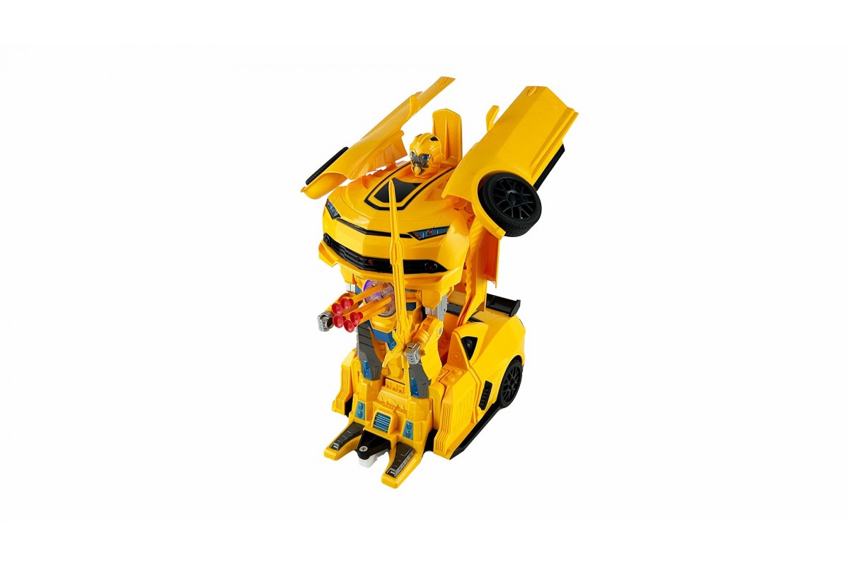 Игрушка два в одном - машинка, трансформирующаяся в робота и обратно, а также стреляет присосками! Уникальный робот трансформер станет предметом гордости любого мальчика. Такая машинка на радиоуправлении с трансформацией в робота отлично подойдет в качестве подарка ребенку. Данная модель отличается высокой прочностью конструкции. Машинка трансформер ездит вперед-назад, влево-вправо, передние фары ее подсвечиваются в движении. Трансформер умеет вращаться вокруг своей оси на 360 градусов, а также издает звуки автомобиля в движении.