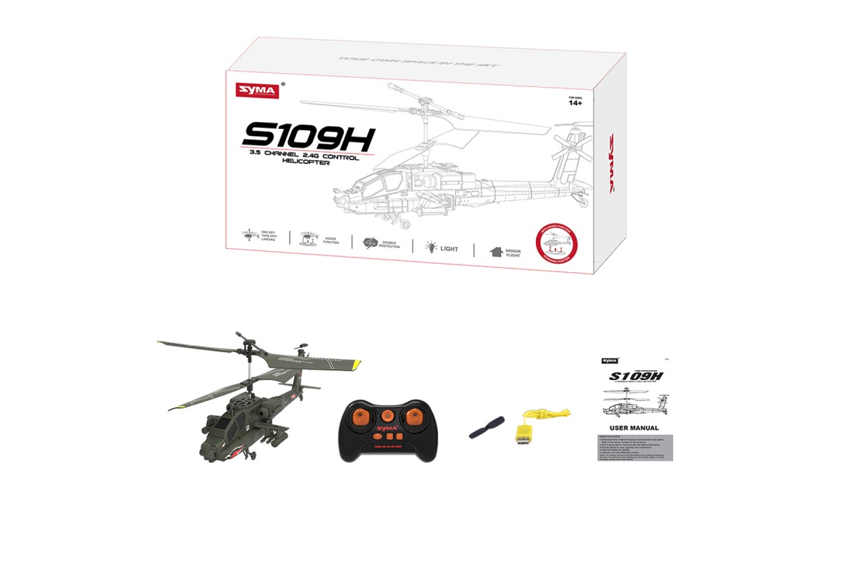 Радиоуправляемый вертолет Apache AH-64 - SYMA-S109H - это радиоуправляемая модель вертолета с гироскопом для начинающих. Имеет высокую стабильность полета и минимальный вес. Прост в управлении. Время зарядки от пульта управления около 60 минут. Среднее время полета 5 минут.