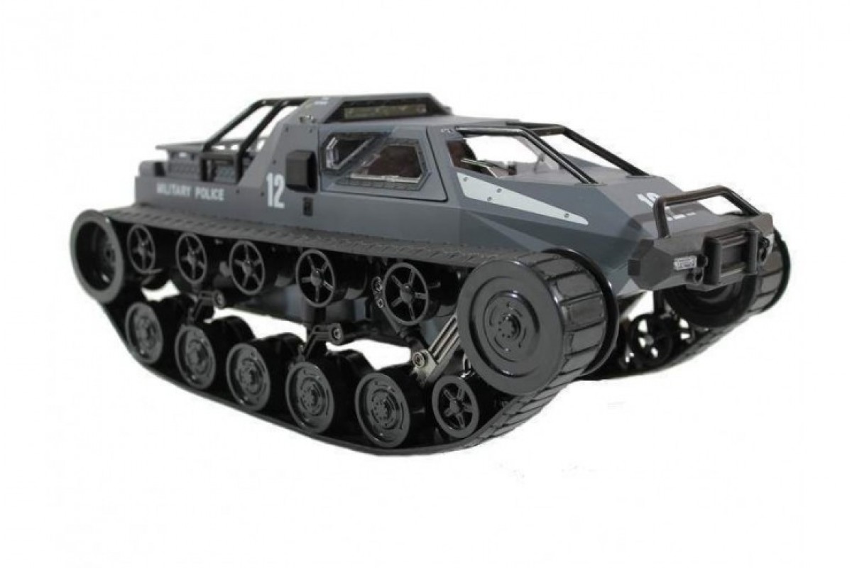 Высокоскоростная модель Military Police на гусеничном ходу способна покорять препятствия как настоящий вездеход. Угол подъема составляет 30 градусов. Торсионная подвеска обеспечивает превосходные ходовые качества. Механизм крепления переднего колеса служит для натяжения гусениц, в результате чего вездеход способен уверенно передвигаться по любой поверхности. Military Police не страшны небольшие ямы (даже до 10 см), он без проблем проезжает их, не проваливаясь.