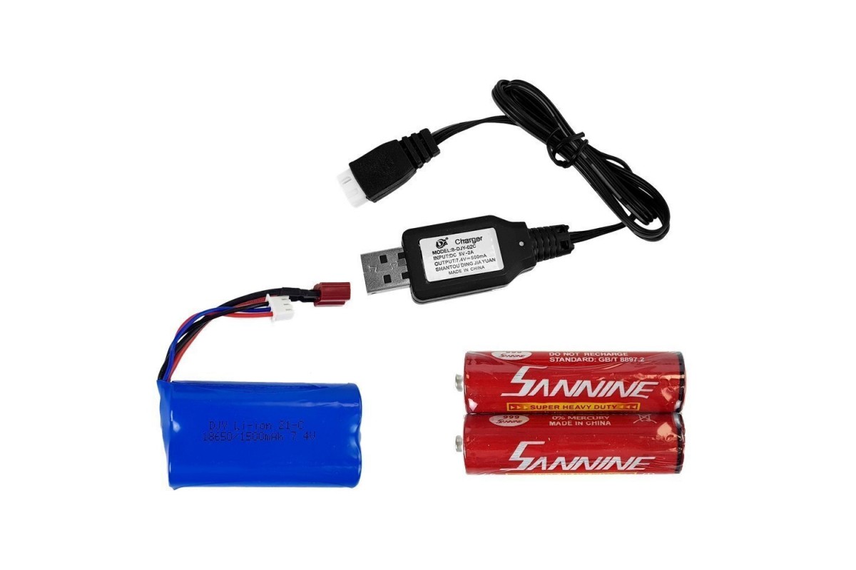 - Автомобильная батарея: литий-ионный аккумулятор 7.4V 1500 mAh (около 80 г)