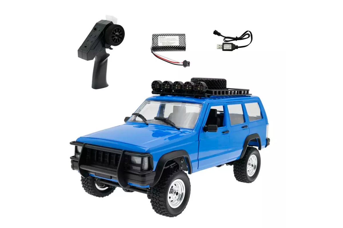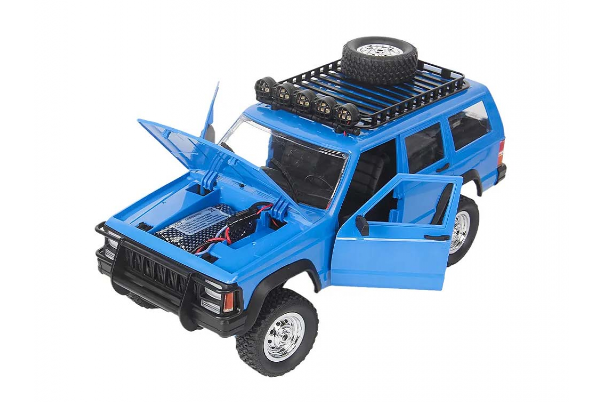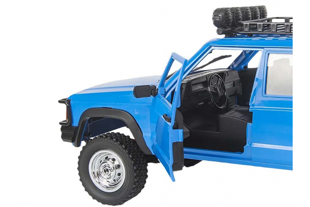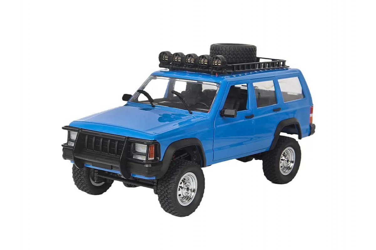 Радиоуправляемый внедорожник JEEP Cherokee 4WD 1:12 - MN-78-BLUE - это полноприводный внедорожник MN MODEL JEEP CHEROKEE. Модель класса трофи оснащена коллекторным мотором, емким аккумулятором с напряжением 7.4V и сервоприводом, что делает управление данной моделью пропорциональным! Открываются двери, капот и багажник. Полноценный салон. Привод постоянный 4х4, блоки. Шикарная плавность хода. При умеренном темпе езды заряда аккумулятора хватает на 30-40 минут.