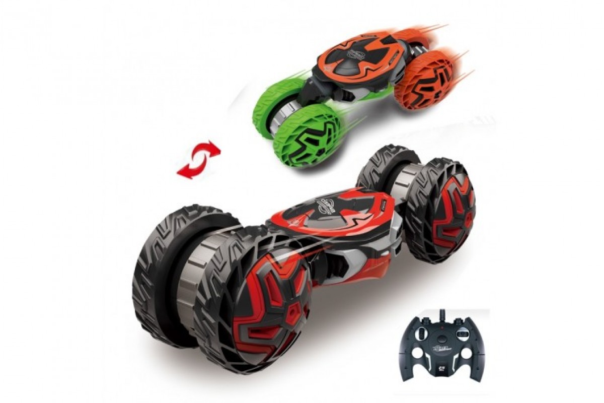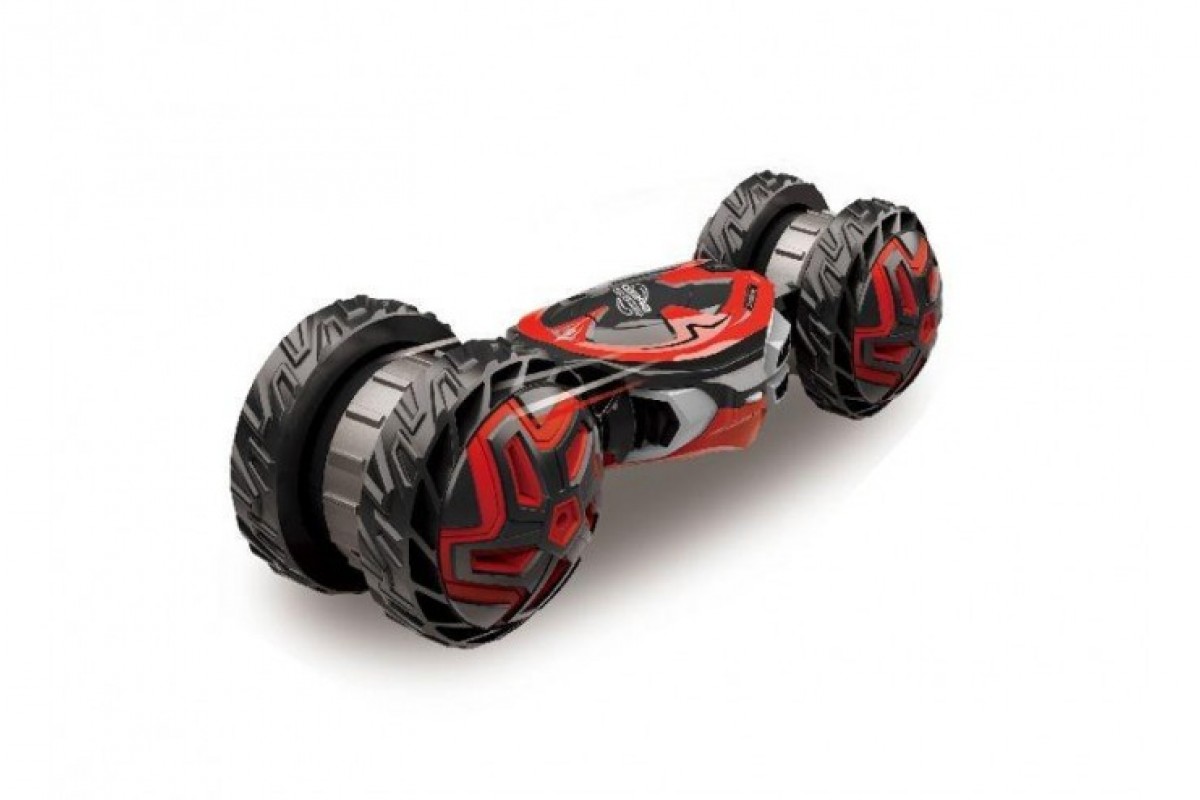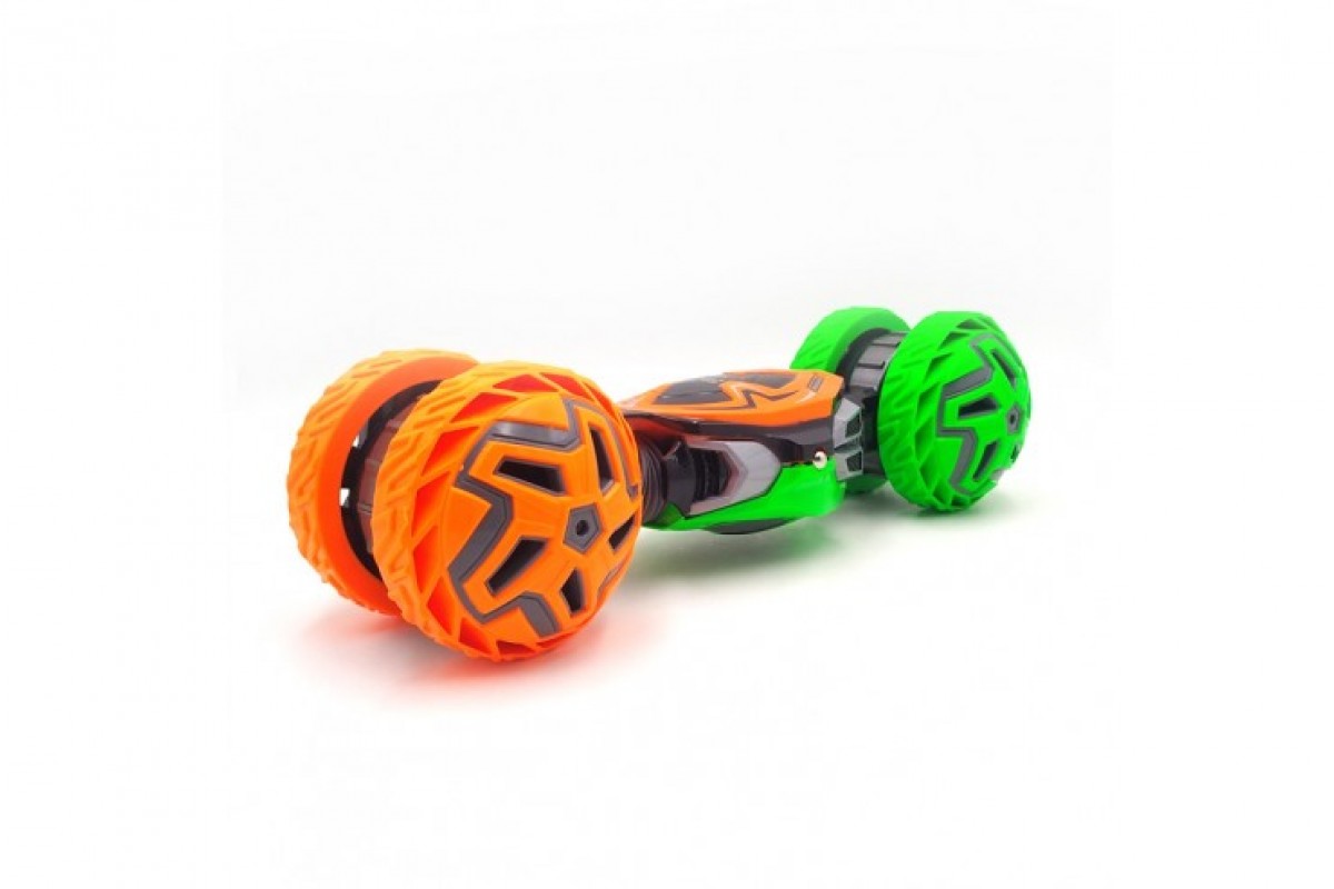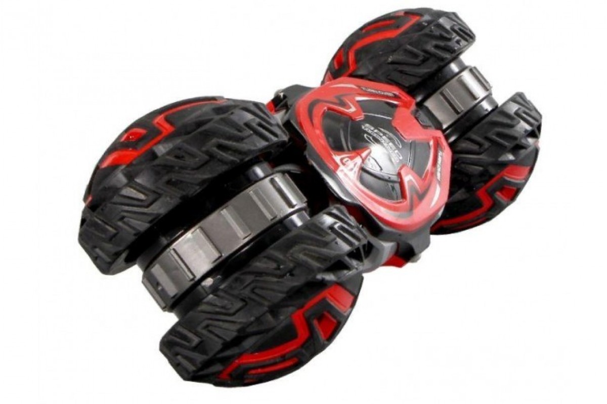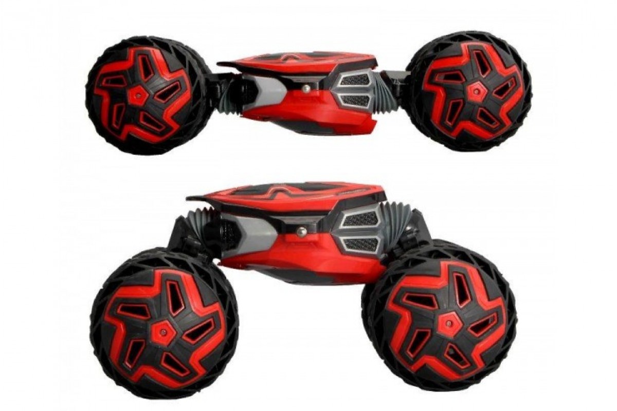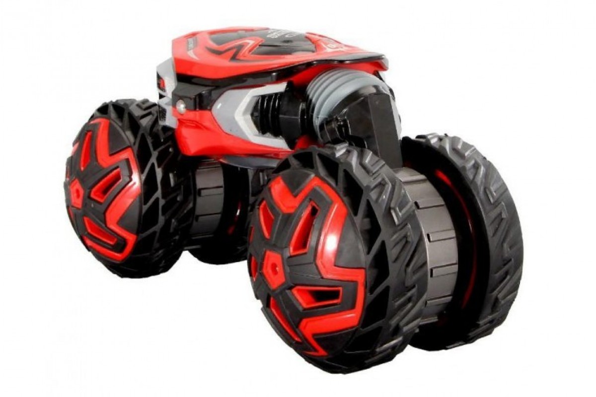 Акробатический радиоуправляемыйnвнедорожник-перевертыш с изменяемым дорожным просветом! В дорожной конфигурации способен мчаться по асфальту со скоростью 7 км/час, а благодаря сферическим колпакам колес можно легко научиться ездит на двух колесах. Даже если машина перевернется, она сможет спокойно ехать в перевернутом состоянии, колеса настолько огромны, что кузов в любом положении не касается земли!