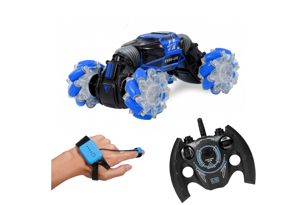 - Контроль жестами: в комплект входит дополнительный пульт, который фиксируются на ладони. Благодаря ему вы сможете управлять вездеходом лёгкими жестами одной руки. При этом вы сможете управлять не только направлением движения, но и изменять высоту подвески машины и делать трюки.