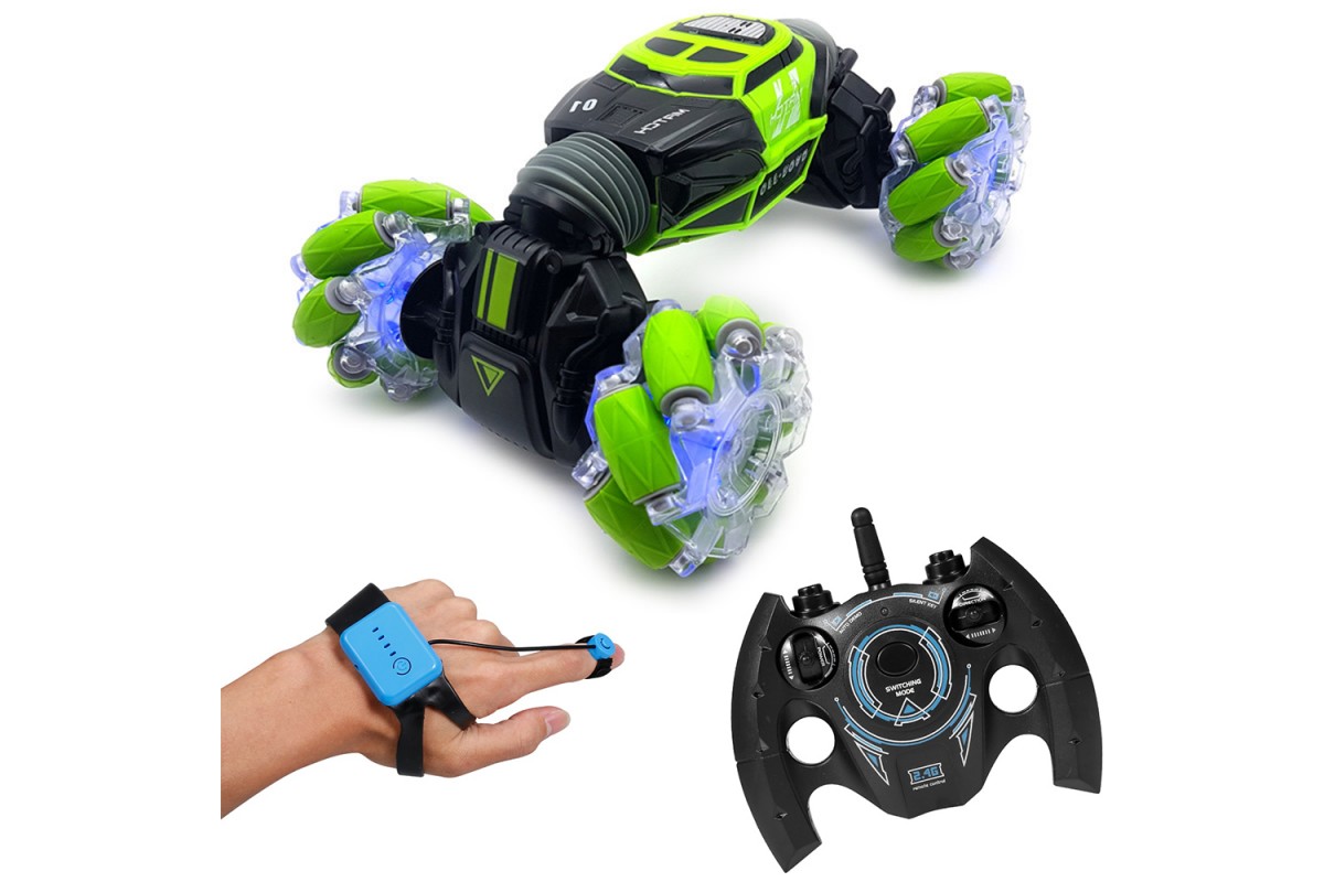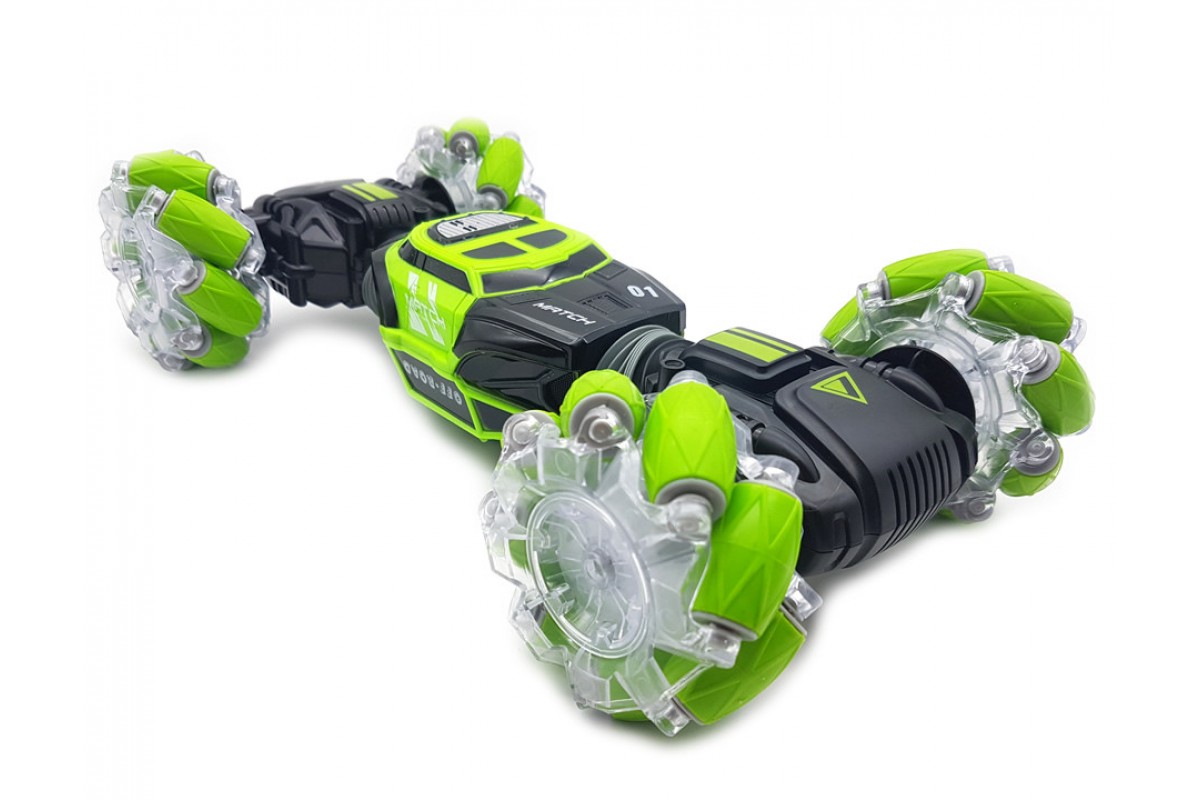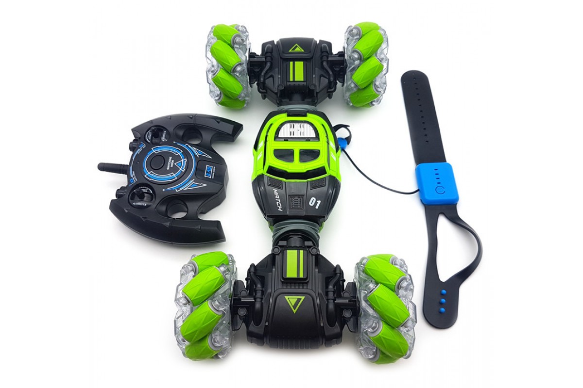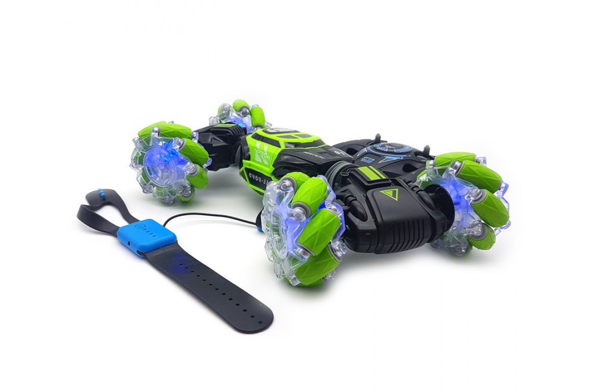 Радиоуправляемый внедорожник Твистер (часы + пульт) 1:16 - UD2196A-GREEN - это машинка перевертыш Hyper Skidding, которая является несомненным хитом продаж среди радиоуправляемых моделей. Обновленная версия стала еще лучше. О такой машинке мечтает каждый мальчик. Возможности машинки Hyper Skidding просто невероятны. Она может ездить, крутиться на месте, переворачиваться и ехать дальше, приподниматься и даже танцевать. Но главная особенность заключается в управлении. Данной машинкой можно управлять жестами при помощи специального браслета, который входит в комплект с машинкой Hyper Skidding. Увлекательный процесс управления понравится не только детям, но и взрослым. И все это будет сопровождаться звуками работающего мотора, яркой подсветкой колес и песнями. Особенно эффектно машинка смотрится в темноте.