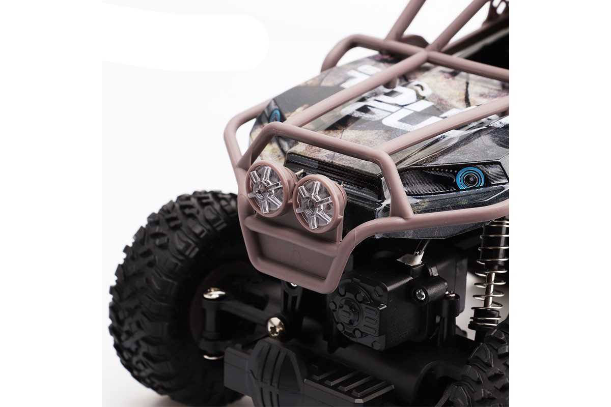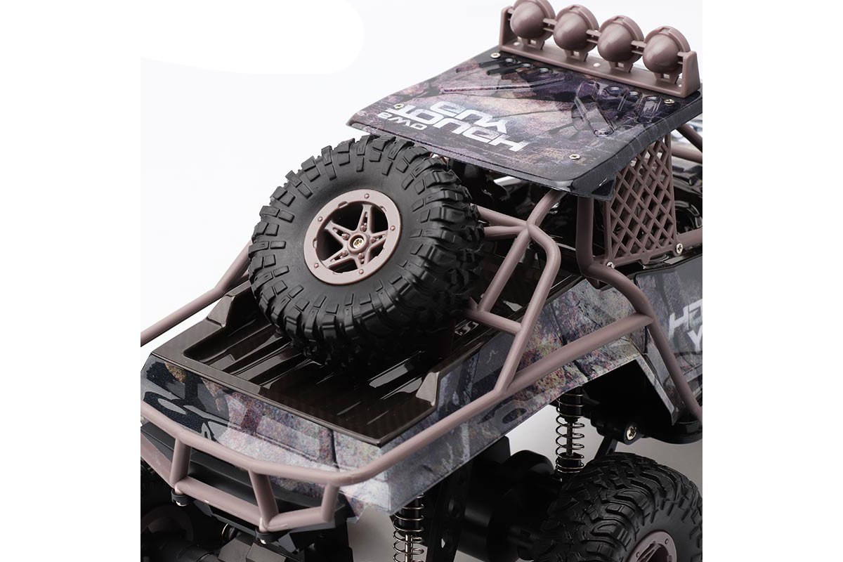 - Функционал: вращающиеся элементы, открытая кабина, крупные колеса, дистанционное управление, полный привод