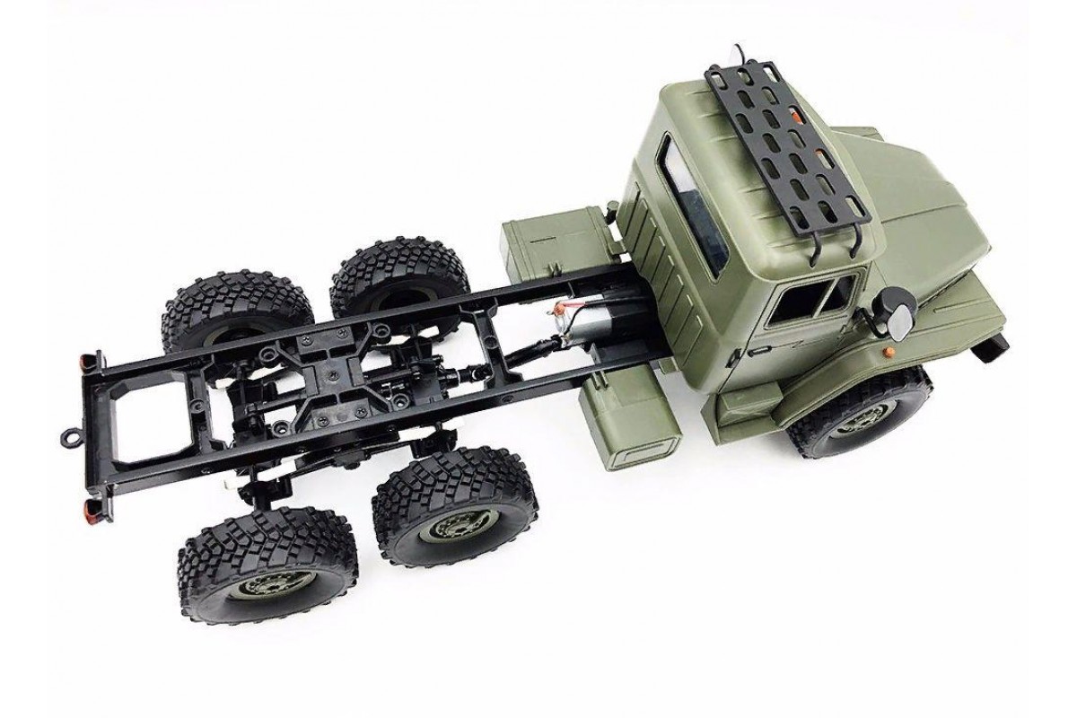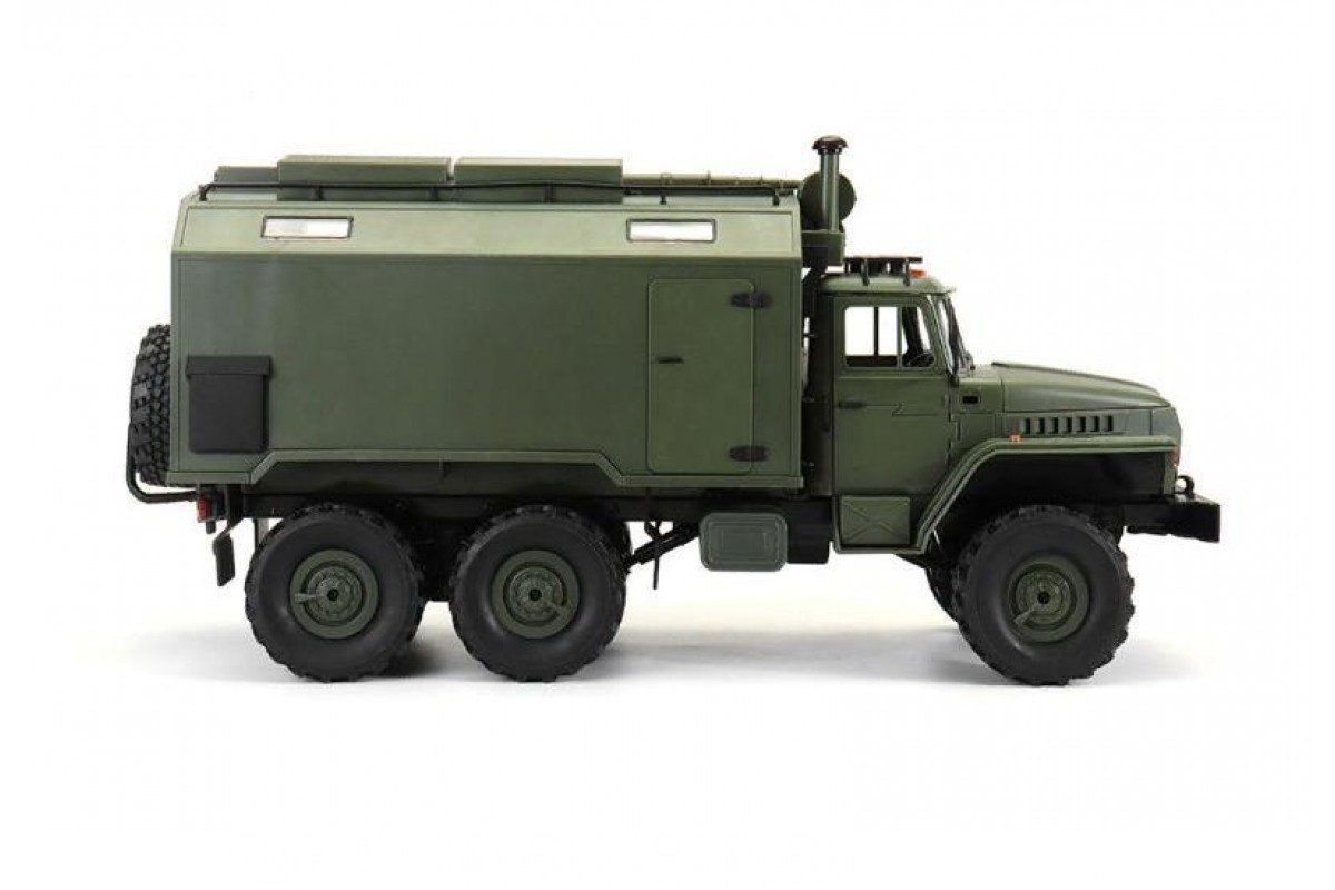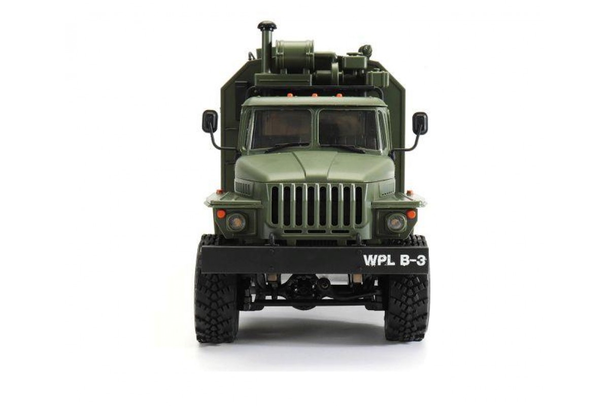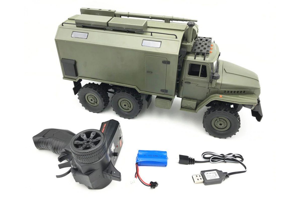 Радиоуправляемый внедорожник WPL Советский военный грузовик Урал 4WD 1:16 2.4G - WPLB-36 - это полукопия легендарного советского грузовика Урал выполнена в масштабе 1/16, оснащена полным приводом, действующей рессорной подвеской и мощным коллекторным электромотором. Радиоуправляемый Урал имеет богатую деталировку, в кабине можно увидеть руль и интерьер. Кунг и кабина изготовлены из прочного АВS пластика и установлены на прочную раму. Литиевый аккумулятор 7.2В, 500мАч спрятан под открывающийся капот, там, где у настоящего автомобиля Урал расположен мотор.