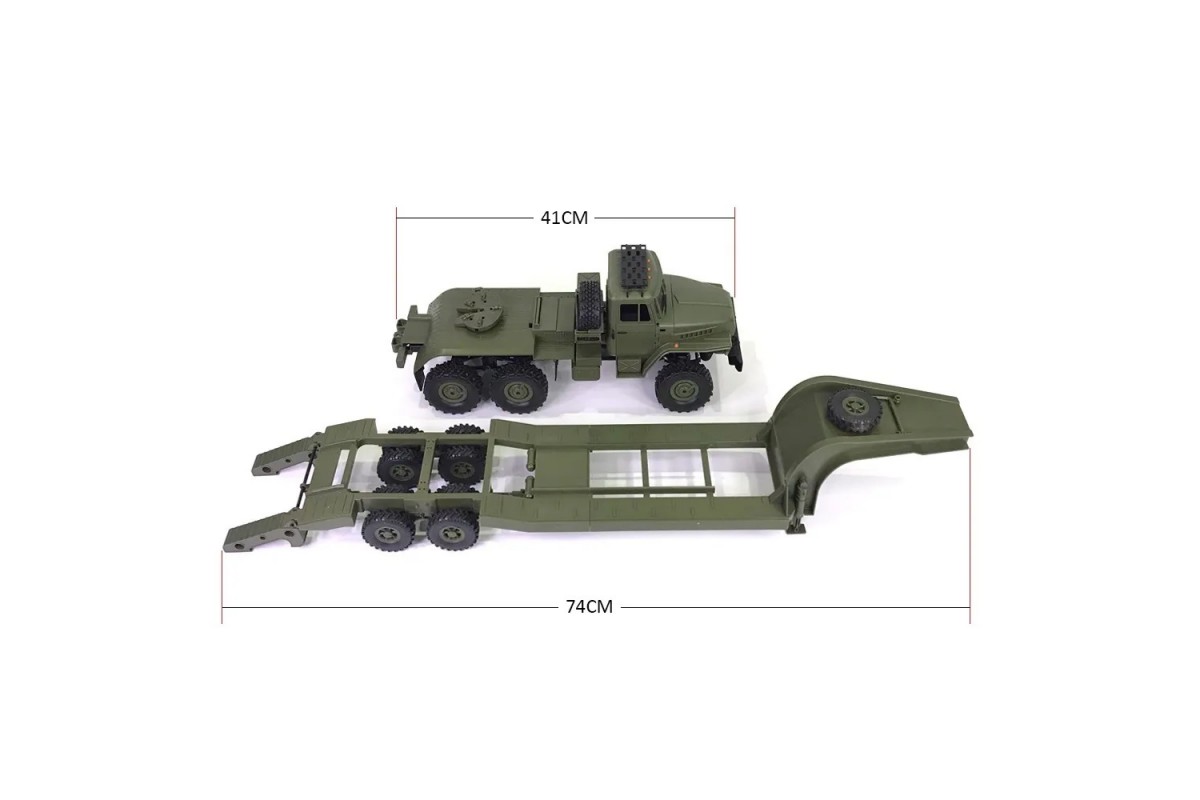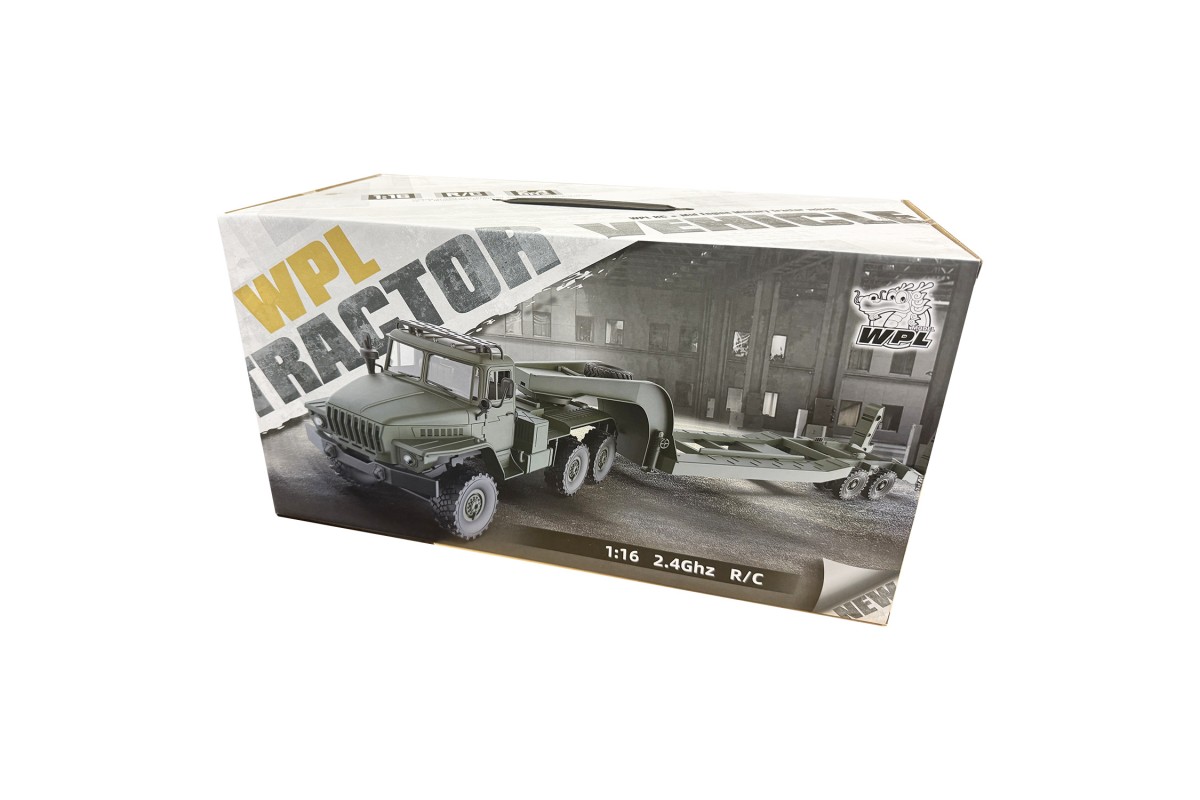 Радиоуправляемый внедорожник WPL Советский военный грузовик Урал с траллом 4WD 1:16 - WPLB-36-3 - это полукопия легендарного советского грузовика Урал выполнена в масштабе 1:16, оснащена полным приводом, действующей рессорной подвеской и мощным коллекторным электромотором. Радиоуправляемый Урал имеет богатую деталировку, в кабине можно увидеть руль и интерьер. Тралл и кабина изготовлены из прочного АВS пластика и установлены на прочную раму. Литий-ионных аккумулятор 7.4V, 600 мАh спрятан под открывающийся капот, там, где у настоящего автомобиля Урал расположен мотор.