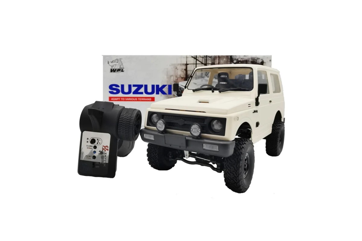 Радиоуправляемый внедорожник WPL Suzuki Jimny 4WD 1:10 - WPLC-74 - это лицензионная модель внедорожника на пульте управления в масштабе 1/10 оснащен полным приводом и мощным коллекторным электромотором. Внедорожник имеет богатую деталировку и оборудован светящимися фарами. Кузов изготовлен из прочного АВS пластика, в кабине можно увидеть сиденья, руль и интерьер.