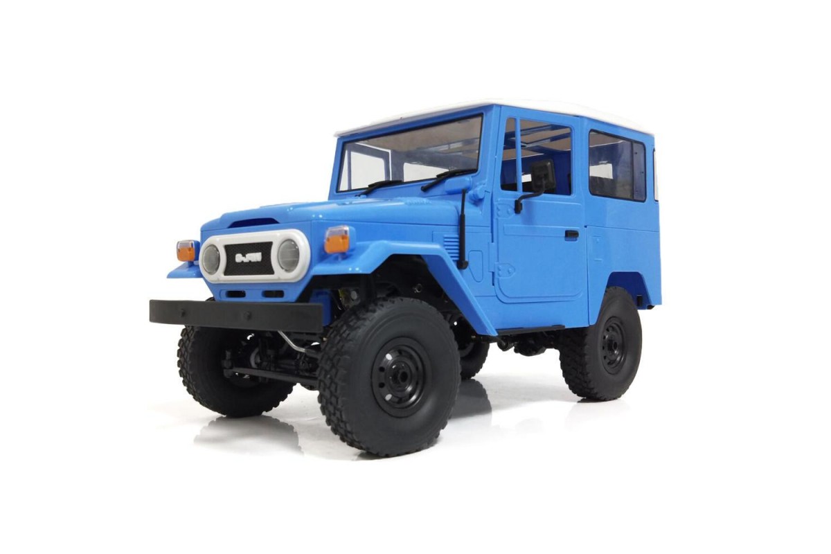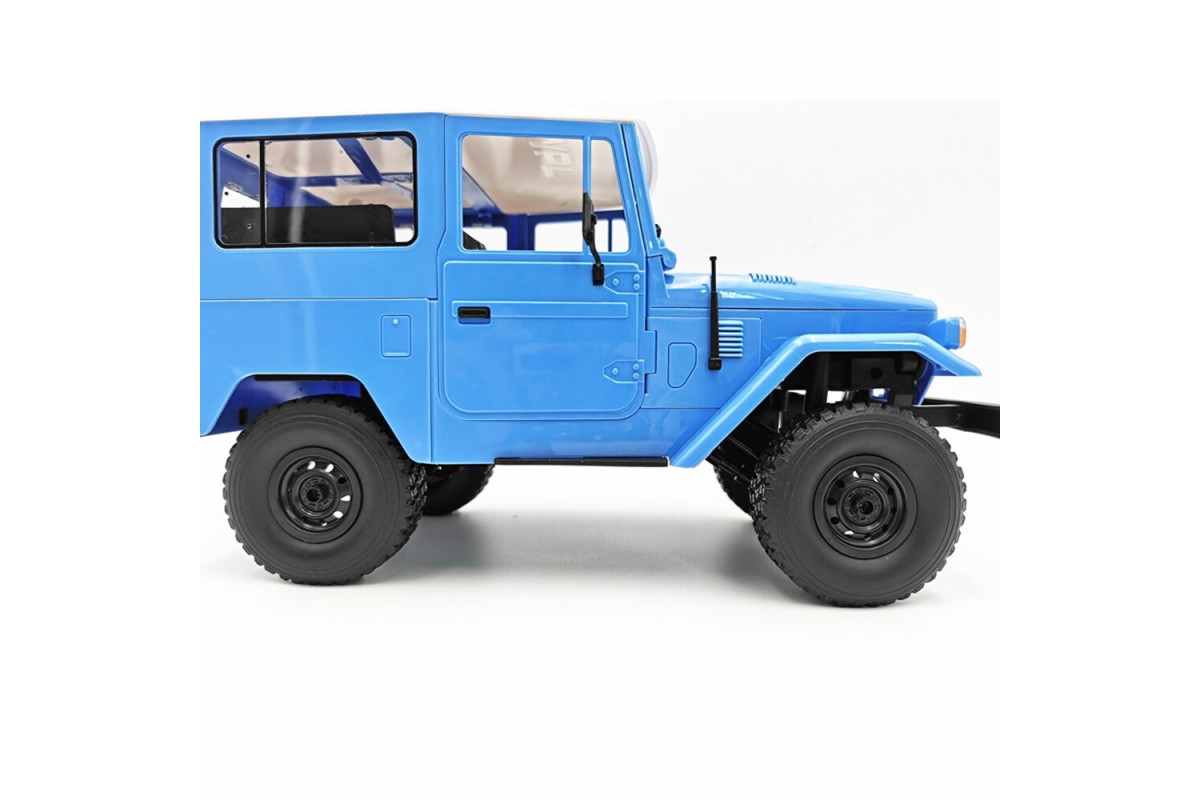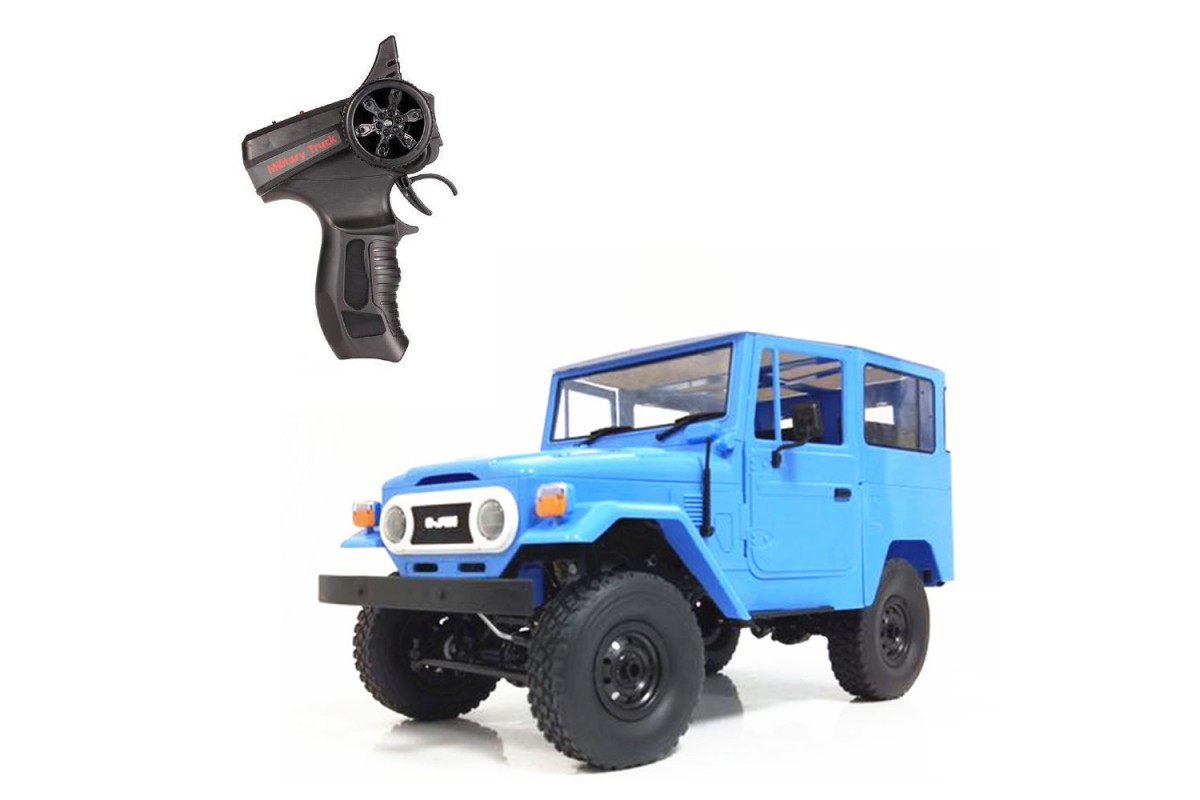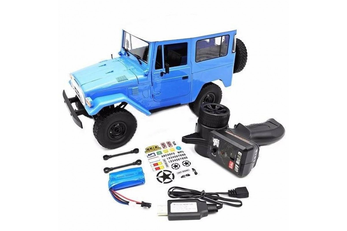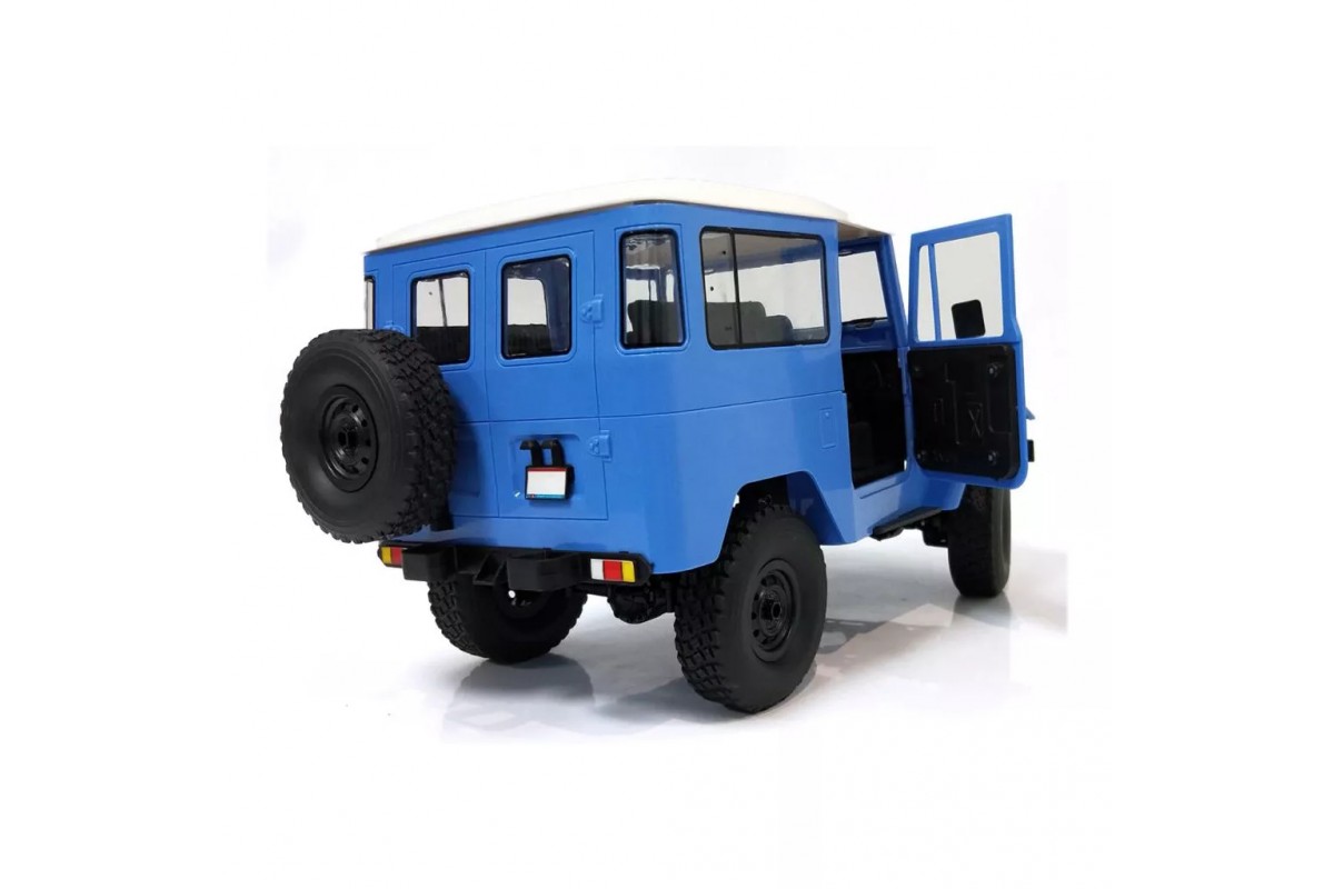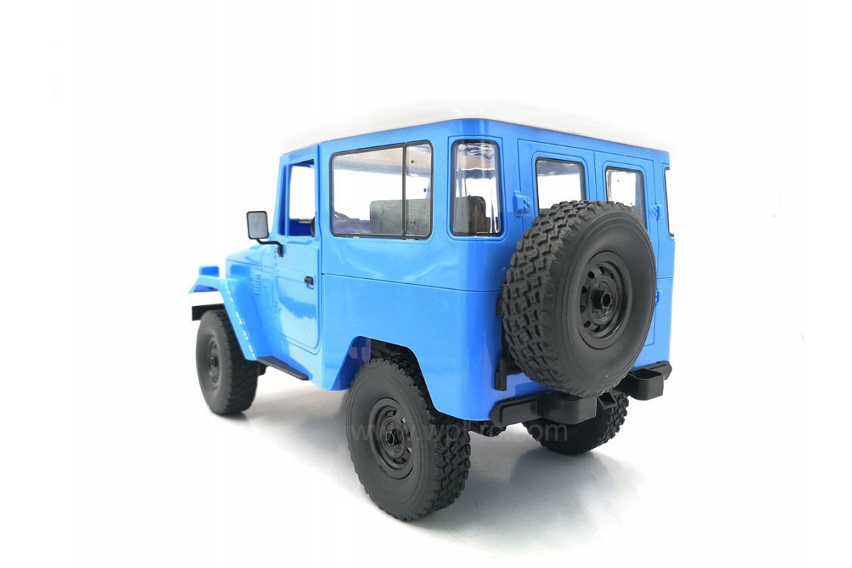 Радиоуправляемый внедорожник WPL Toyota FJ40 Blue 4WD масштаб 1:16 2.4G - WPLC-34-BLUE - это радиоуправляемый внедорожник белого цвета в масштабе 1/16 оснащен полным приводом, длинноходной пружинной подвеской, как у моделей ''краулер'', и мощным коллекторным электромотором. Внедорожник имеет богатую деталировку и может быть оборудован светящимися фарами. Кузов изготовлен из прочного АВS пластика, в кабине можно увидеть сиденья, руль и интерьер. Легкосъемная задняя часть кузова позволяет быстро превратить внедорожник в грузовой пикап. Li-Ion аккумулятор 7.4В 500мАч спрятан в багажном отсеке под кабиной. Для установки батареи предусмотрен открывающийся люк.