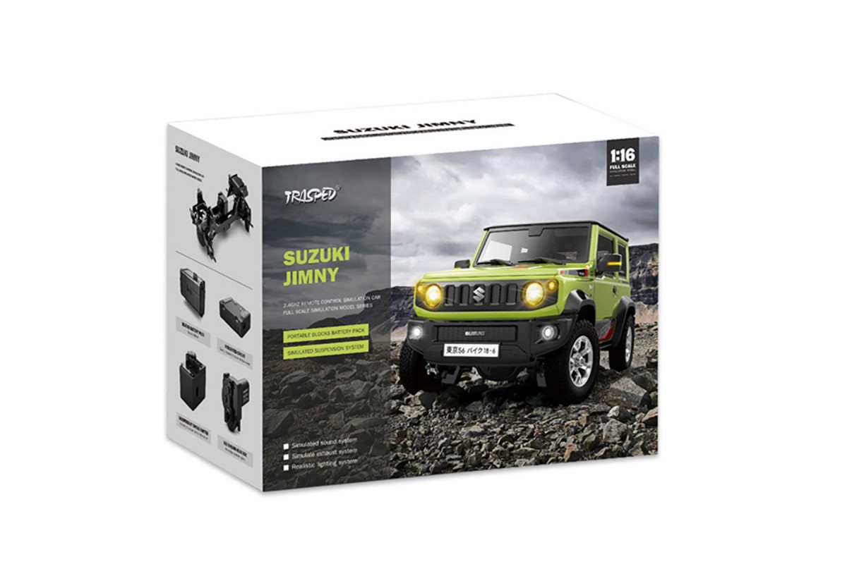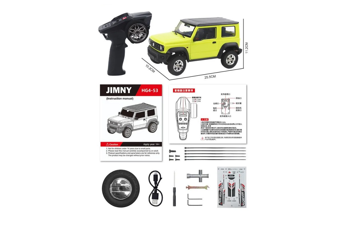 Радиоуправляемый внедрожник Suzuki Jimny PRO с прицепом (свет, выхлоп, Li-Po 5C) - HG4-53PRO-54-G - это лицензионная модель внедорожника на пульте управления в масштабе 1/16 оснащен полным приводом и мощным коллекторным электромотором. Внедорожник имеет богатую деталировку и оборудован светящимися фарами. Кузов изготовлен из прочного АВS пластика, в кабине можно увидеть сиденья, руль и интерьер.
