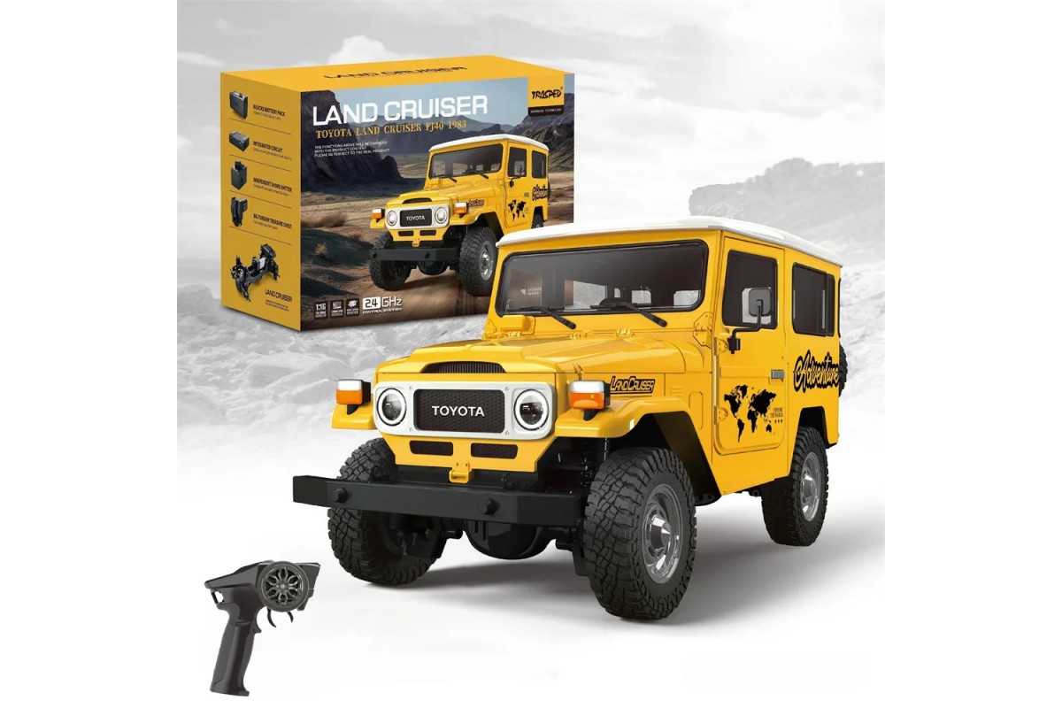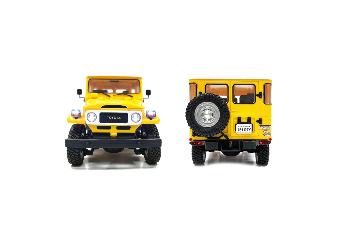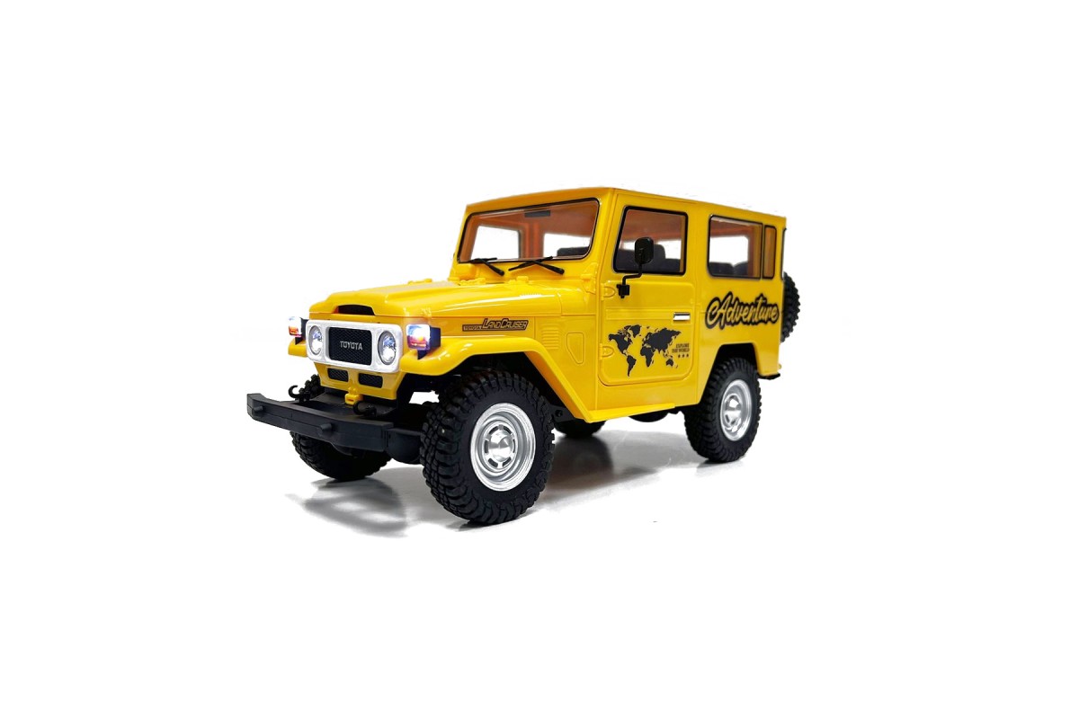 Радиоуправляемый внедрожник TOYOTA FJ40 PRO (свет, выхлоп, Li-Po 5C) - HG4-50-PRO-YELLOW - это лицензионная модель внедорожника на пульте управления в масштабе 1/16 оснащен полным приводом и мощным коллекторным электромотором. Внедорожник имеет богатую деталировку и оборудован светящимися фарами. Кузов изготовлен из прочного АВS пластика, в кабине можно увидеть сиденья, руль и интерьер.