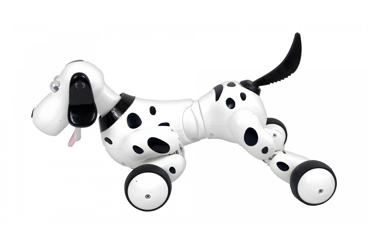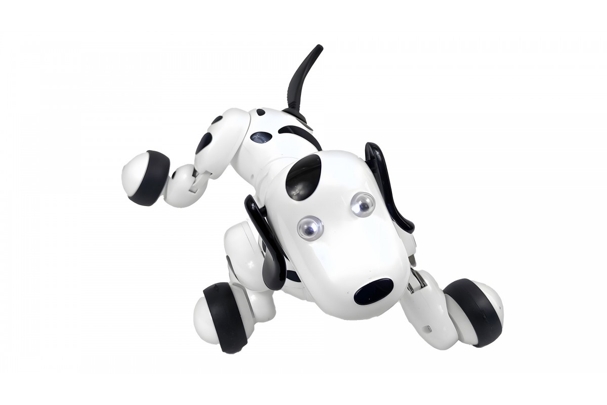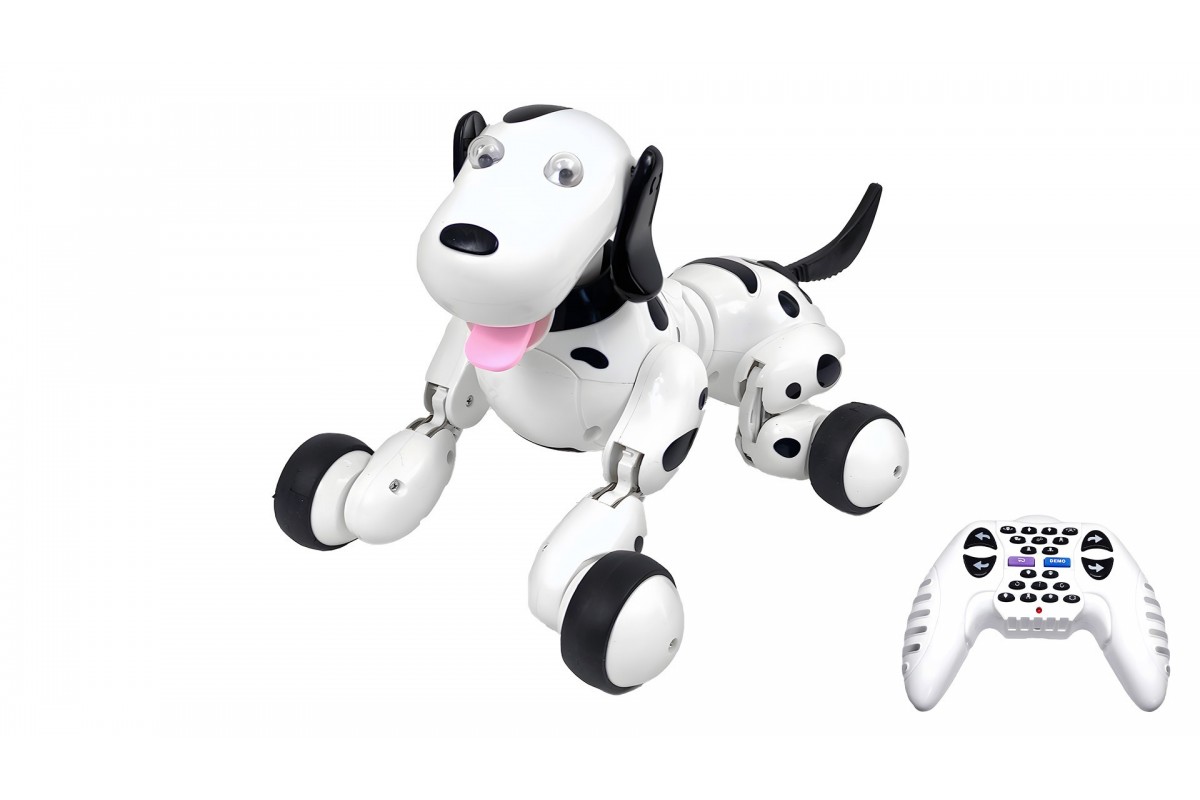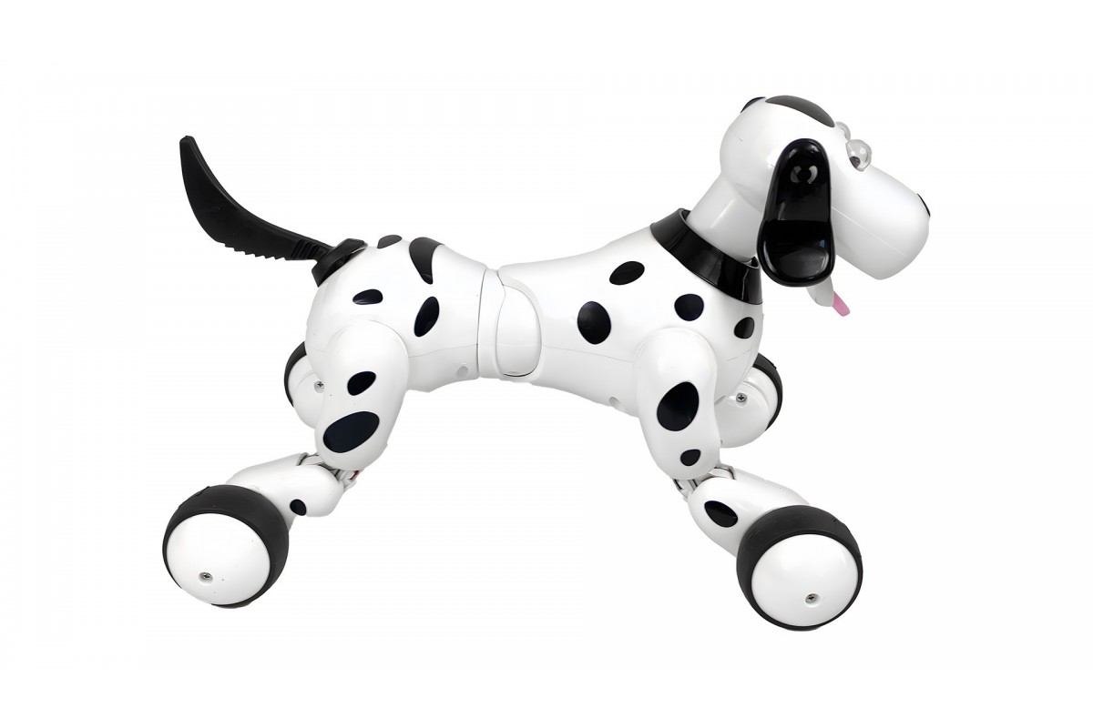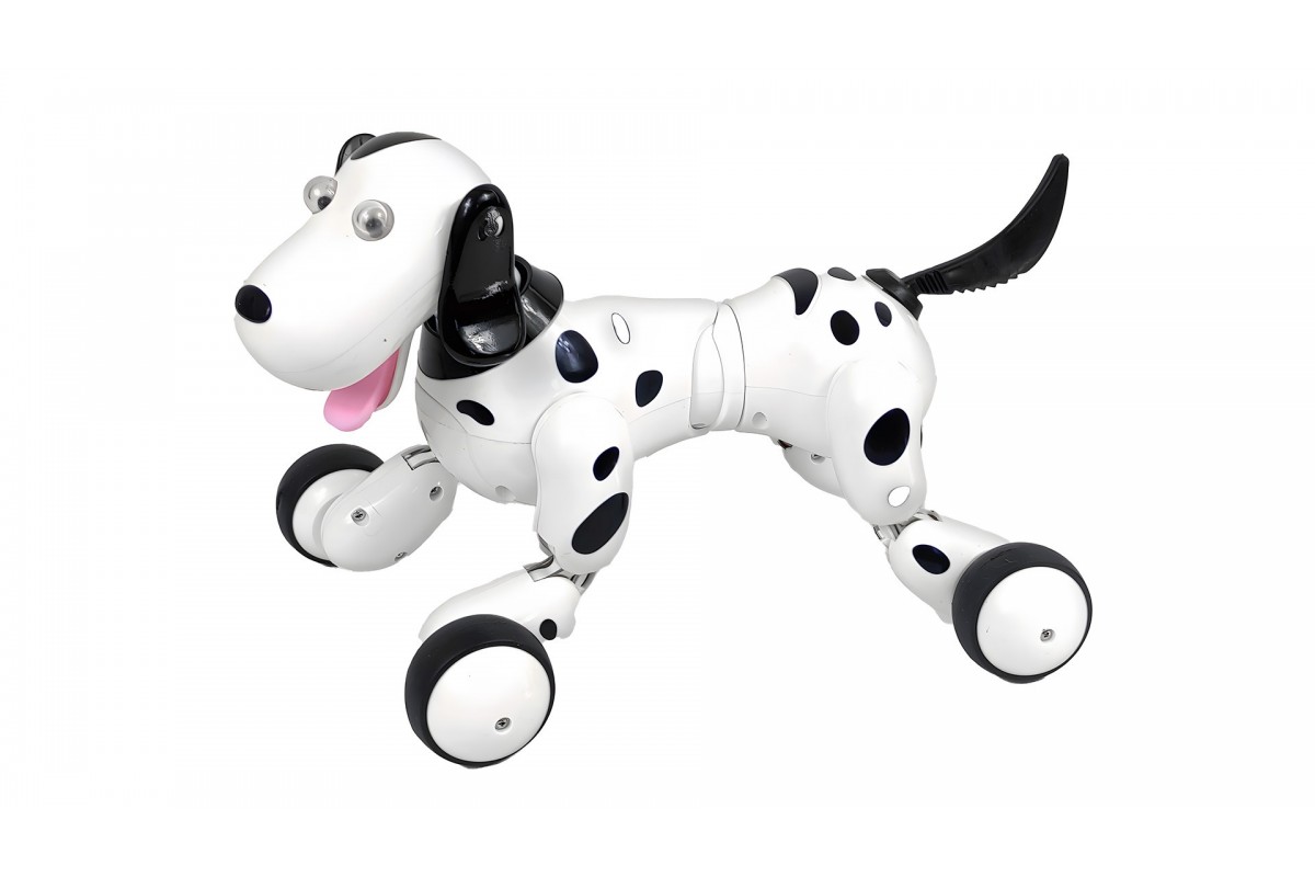 Радиоуправляемый HappyCow Smart Dog — это уникальная игрушка, которая имеет реалистичный облик, показывает различные эмоции и издает звуки. Собака двигает головой вперед-назад, влево-вправо, виляет хвостом, ложится, встает, садится и подает голос.