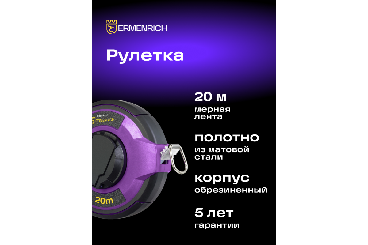 Такой измерительный прибор, как рулетка, необходим в каждом доме, и Ermenrich Reel SG20 – оптимальный выбор для тех, кто собирается приступить к ремонту или декорированию квартиры. Полотна длиною в 20 метров будет достаточно для проведения замеров мебели и оценки качества приобретаемых стройматериалов. При использовании рулетки на стройплощадке можно не волноваться за ее сохранность: мерная лента из матовой стали выдержит большинство механических воздействий.